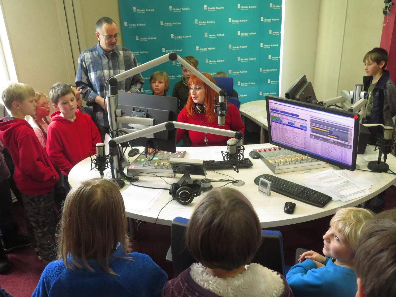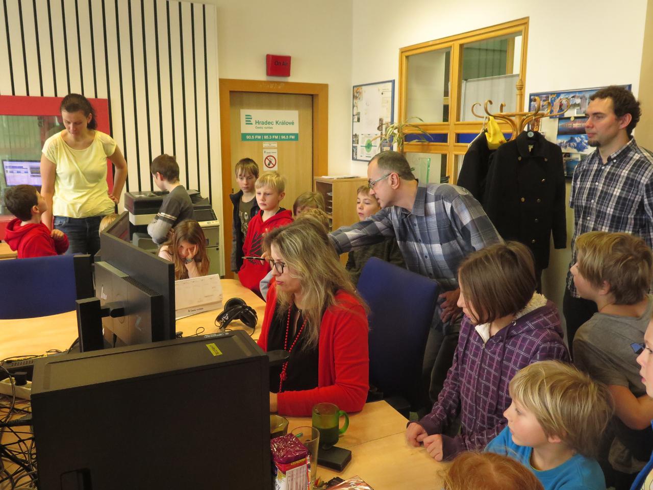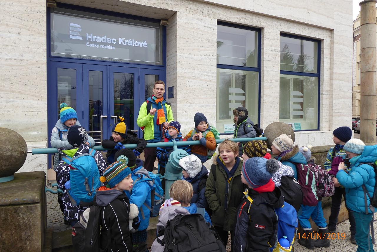 Po jarních prázdninách jsme tematicky navazovali na komunikaci a věnovali jsme se médiím. Zkoumali jsme, co to média jsou, jaká známe, co nám přináší a jestli to, co slyšíme, vidíme či čteme, je vždy pravda. Listovali jsme v časopisech i novinách. V rámci českého jazyka jsme naťukli možnost psát školní časopis (těšte se, co Vás i nás čeká v dalších týdnech). Se staršími dětmi jsme začali objevovat možnosti, jak odhalit tzv. “fakenews”. Kromě jiného jsme v pondělí otevřeli občasnou odpolední aktivitu pro rodiny a školáky “celé Mraveniště čte”. V angličtině pracovali s tématy “my body and clothes” a v rámci tělocviku jsme zažili společnou radost z běžkování, kdy si tento sport vyzkoušela celá starší třída, tři školáci dokonce poprvé v životě! Nakonci jsme si i mohli vzít do ruky skleněnou medaili nebo si obléci dres závodníka z Jizerské 50. Ve čtvrtek jsme v rámci venkovního dne vyrazili do Hradce Králové objevovat regionální stanici Českého rozhlasu. Zažili jsme 100 krásných minut, kdy nás pan redaktor Karel Sladký provedl od vrátnice přes pracovny redaktorů, fonotéku, nahrávací studia, střižnu až po studio živého vysílání. Viděli i slyšeli jsme, jak se připravuje reportáž o nově objevených freskách, jak pracuje moderátor živého vysílání nebo jak střihač zvuku upravuje přeřeky při předtáčených reportážích. Vrcholným prožitkem byly vteřiny, kdy celá škola stála ve studiu živého vysílání, nad námi svítilo červené světlo “on air”, paní moderátorka mluvila a my všichni museli být naprosto potichu. Velká důvěra a zároveň zkušenost. Poté jsme se sami přenesli do role hlasatele a vyzkoušeli jsme si, jak náročné je číst zprávy na mikrofon. Po velmi intenzivní a prožitkové exkurzi, která nám umožnila poznat, jak funguje rozhlas, se přibližně pět školáků přihlásilo, že je to práce, kterou by chtěli dělat ;-) Z ČRo HK jsme zamířili do hradeckého Aquacentra městské lázně, kde jsme využili dovednosti získané v rámci právě dokončeného plaveckého kurzu, odpočívali jsme ve vířivce, profrčeli jsme tobogánem, houpali se ve vlnobití nebo skákali šipky či salta do vody. V pátek jsme pak mimo jiné reflektovali to, co jsme se naučili na čtvrtečním venkovním dnu a poslouchali jsme rozhlasové vysílání. Prožili jsme všichni velmi obohacující týden, kdy silné momenty učení zažili jak školáci, tak i dospěláci - ve třídě, na hřišti na běžkách či v hradeckém rozhlasu.