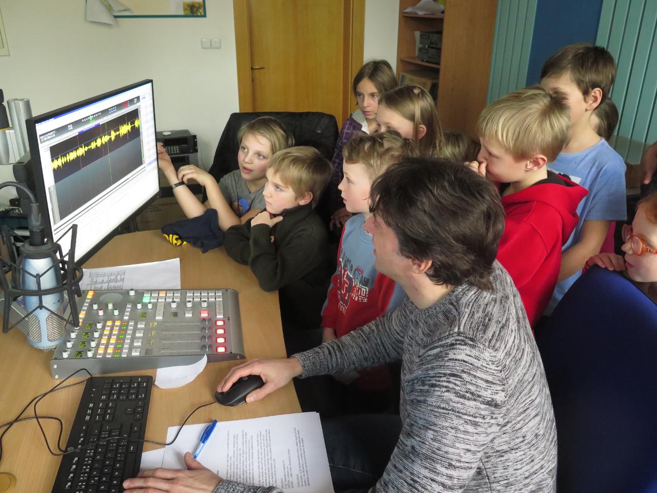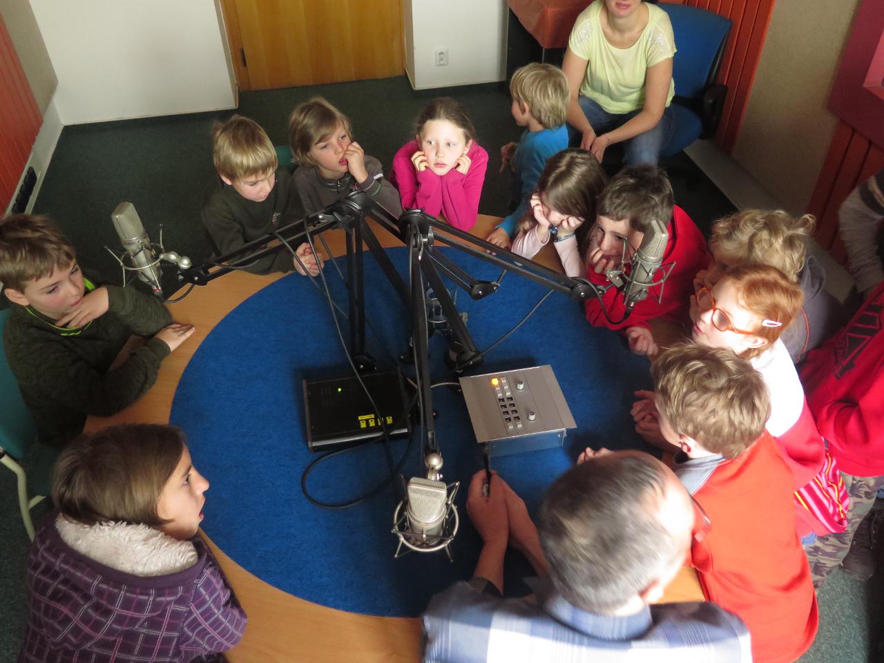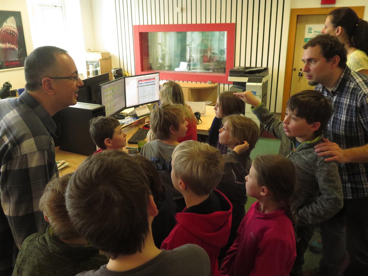 Po jarních prázdninách jsme tematicky navazovali na komunikaci a věnovali jsme se médiím. Zkoumali jsme, co to média jsou, jaká známe, co nám přináší a jestli to, co slyšíme, vidíme či čteme, je vždy pravda. Listovali jsme v časopisech i novinách. V rámci českého jazyka jsme naťukli možnost psát školní časopis (těšte se, co Vás i nás čeká v dalších týdnech). Se staršími dětmi jsme začali objevovat možnosti, jak odhalit tzv. “fakenews”. Kromě jiného jsme v pondělí otevřeli občasnou odpolední aktivitu pro rodiny a školáky “celé Mraveniště čte”. V angličtině pracovali s tématy “my body and clothes” a v rámci tělocviku jsme zažili společnou radost z běžkování, kdy si tento sport vyzkoušela celá starší třída, tři školáci dokonce poprvé v životě! Nakonci jsme si i mohli vzít do ruky skleněnou medaili nebo si obléci dres závodníka z Jizerské 50. Ve čtvrtek jsme v rámci venkovního dne vyrazili do Hradce Králové objevovat regionální stanici Českého rozhlasu. Zažili jsme 100 krásných minut, kdy nás pan redaktor Karel Sladký provedl od vrátnice přes pracovny redaktorů, fonotéku, nahrávací studia, střižnu až po studio živého vysílání. Viděli i slyšeli jsme, jak se připravuje reportáž o nově objevených freskách, jak pracuje moderátor živého vysílání nebo jak střihač zvuku upravuje přeřeky při předtáčených reportážích. Vrcholným prožitkem byly vteřiny, kdy celá škola stála ve studiu živého vysílání, nad námi svítilo červené světlo “on air”, paní moderátorka mluvila a my všichni museli být naprosto potichu. Velká důvěra a zároveň zkušenost. Poté jsme se sami přenesli do role hlasatele a vyzkoušeli jsme si, jak náročné je číst zprávy na mikrofon. Po velmi intenzivní a prožitkové exkurzi, která nám umožnila poznat, jak funguje rozhlas, se přibližně pět školáků přihlásilo, že je to práce, kterou by chtěli dělat ;-) Z ČRo HK jsme zamířili do hradeckého Aquacentra městské lázně, kde jsme využili dovednosti získané v rámci právě dokončeného plaveckého kurzu, odpočívali jsme ve vířivce, profrčeli jsme tobogánem, houpali se ve vlnobití nebo skákali šipky či salta do vody. V pátek jsme pak mimo jiné reflektovali to, co jsme se naučili na čtvrtečním venkovním dnu a poslouchali jsme rozhlasové vysílání. Prožili jsme všichni velmi obohacující týden, kdy silné momenty učení zažili jak školáci, tak i dospěláci - ve třídě, na hřišti na běžkách či v hradeckém rozhlasu.