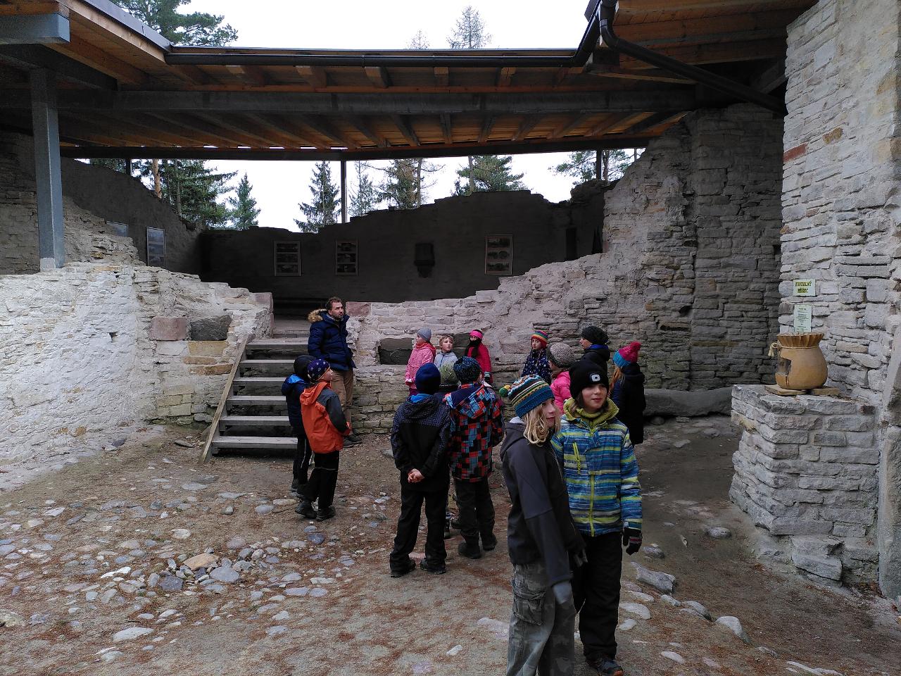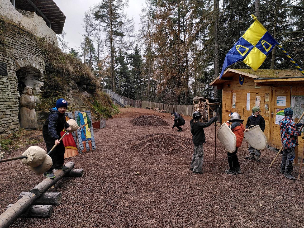 Konec listopadu přenesl školáky ve velmi širokém tématu ”místo, kde žiju” více do historie. Vypravili jsme se na hrad a začali jsme objevovat středověk v našem okolí a českých dějinách. Během prohlídky Vízmburku aneb Weißburgu školáci nejen poznali jednu z nejvýznamnějších středověkých památek tohoto období v okolí bydliště, ale dozvěděli se o významných osobnostech, jakými byl například první pražský arcibiskup Arnošt z Pardubic, vychovávaný právě na navštíveném hradě. A co taková mučírna a její nástrahy! Dále si mohli vyzkoušet jak rytířské souboje, lukostřelbu, středověkou kaligrafii či výrobku koženého náramku. V rámci umění a kultury si školáci s velkým nadšením vyrobili věnec a vyzdobili třídu… a již mohli čekat na zapálení první adventní svíce.