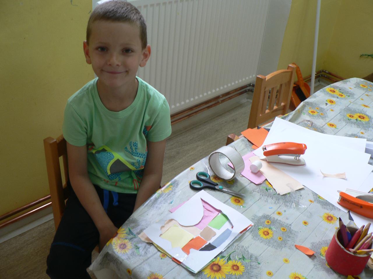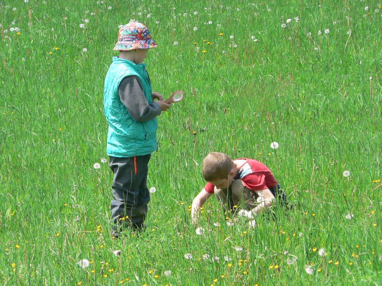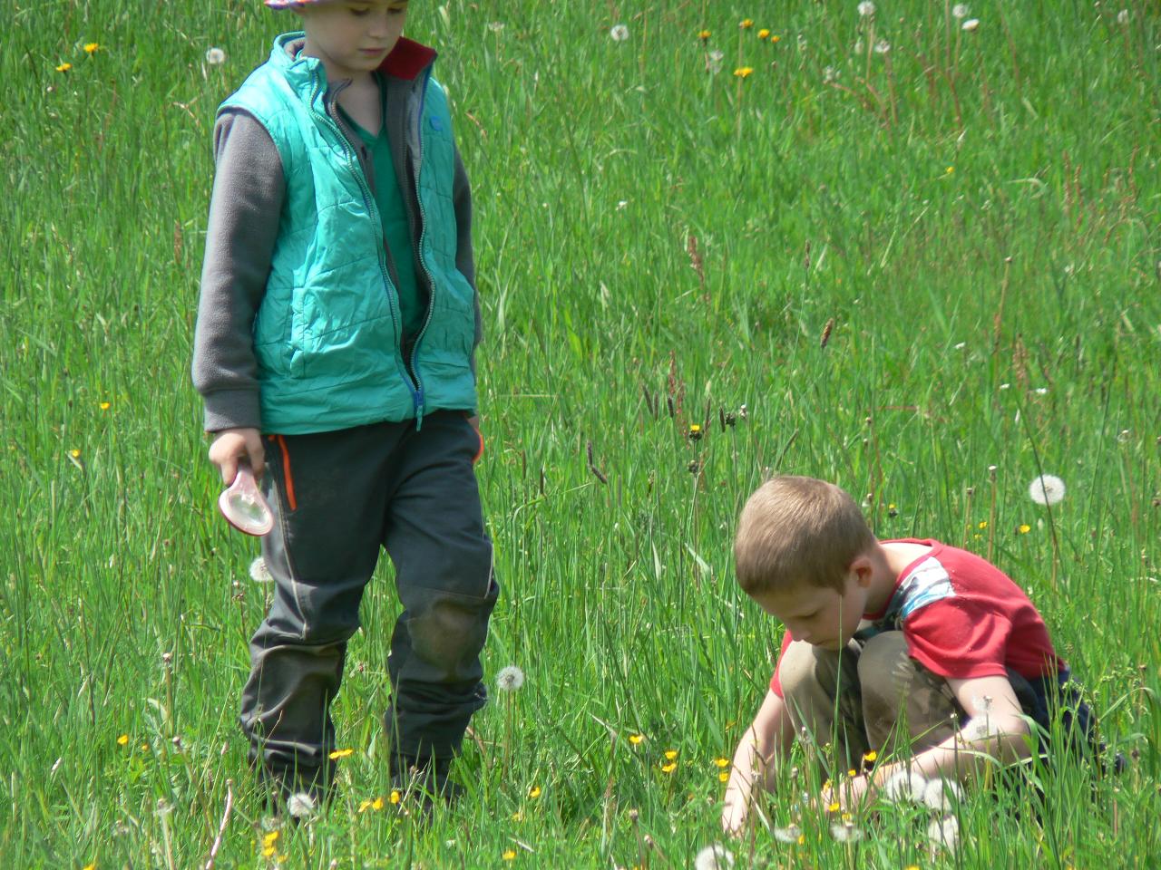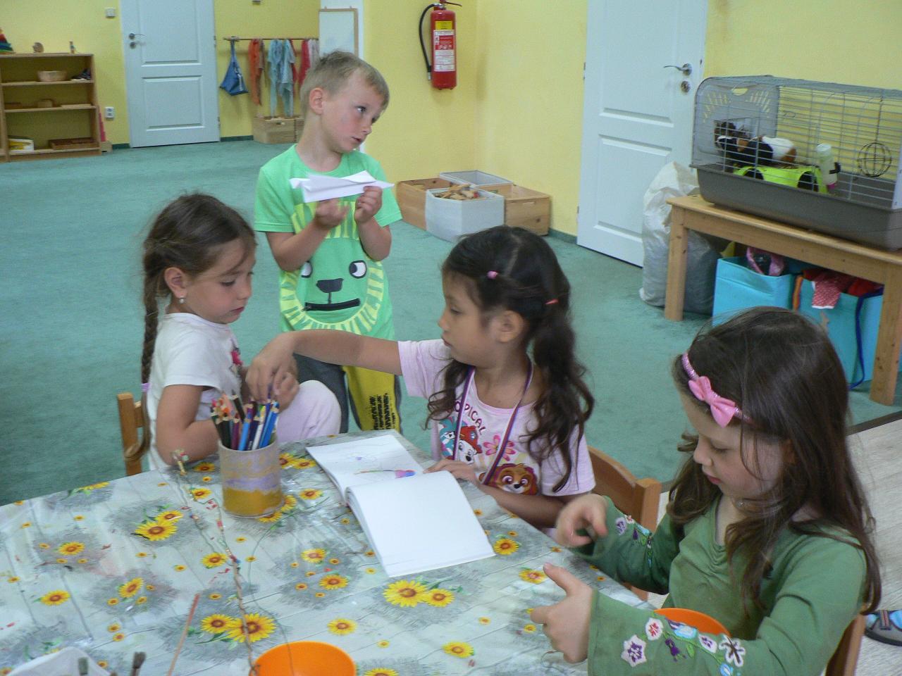 Tradiční pohádka o lakomém kohoutkovi a obětavé slepičce, pohádka, kterou děti dobře znají a která je výborná na procvičení paměti a schopnosti koncentrace. Koho musela slepička poprosit o pomoc, než dostala vodu pro svého kohoutka, co všechno musela udělat a jak to šlo popořadě. Posloupnost příběhu jsme zkoušeli také s pomocí obrázkových kartiček a dát dohromady správný průběh během čtvrtečního divadýlka pak už byla hračka. Při každodenním vyrábění jsme s dětmi lepili papírové slepičky, drátkovali zápichy do květináčů, malovali kohoutky tuší nebo plstili rozkvetlou louku. Naučili jsme se nové říkanky, hráli pohybové hry, cvičili jógu. Venku jsme se hodně věnovali pohybovým aktivitám a hrám, hodně jsme běhali, šplhali po stromech, lezli po kládách i po kamenech, honili jsme se i schovávali. Na louce jsme pak lovili brouky či pavouky a jiný hmyz.