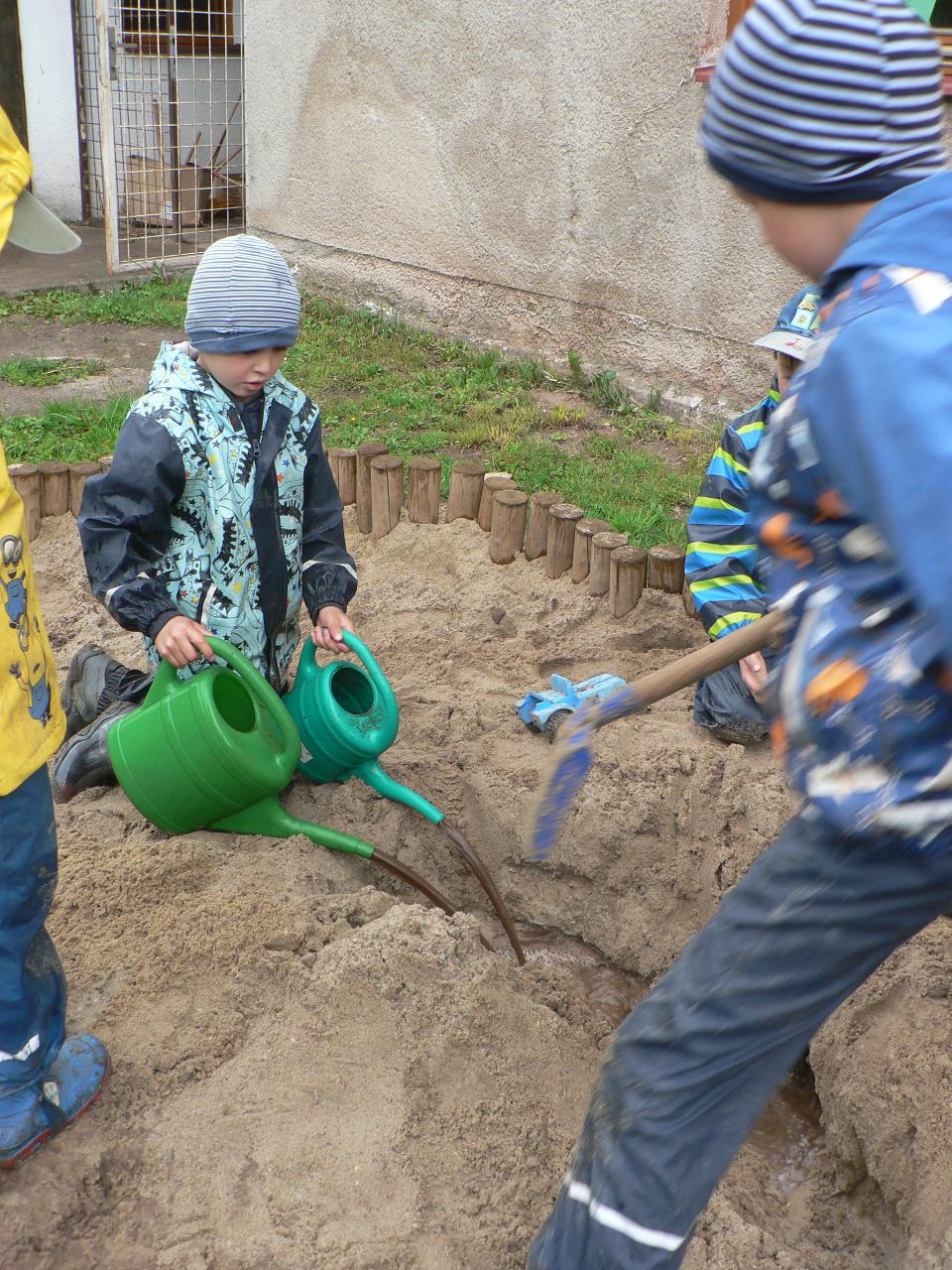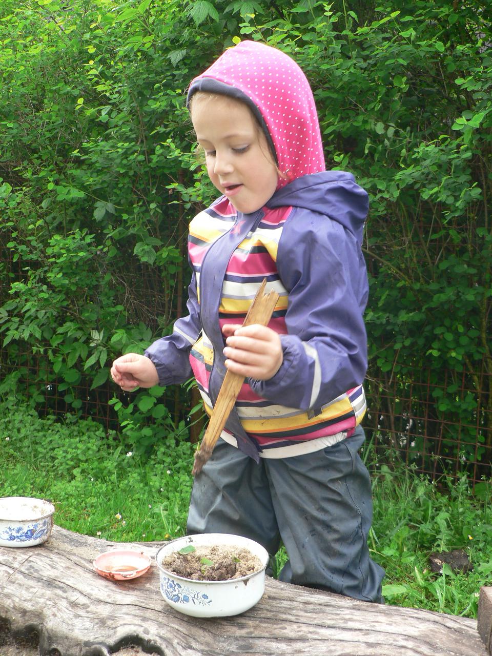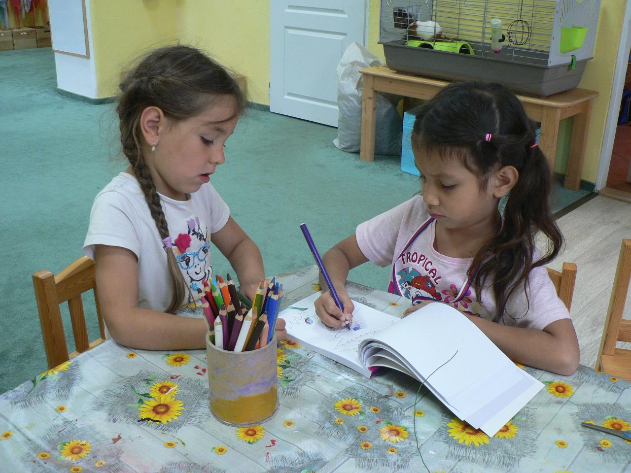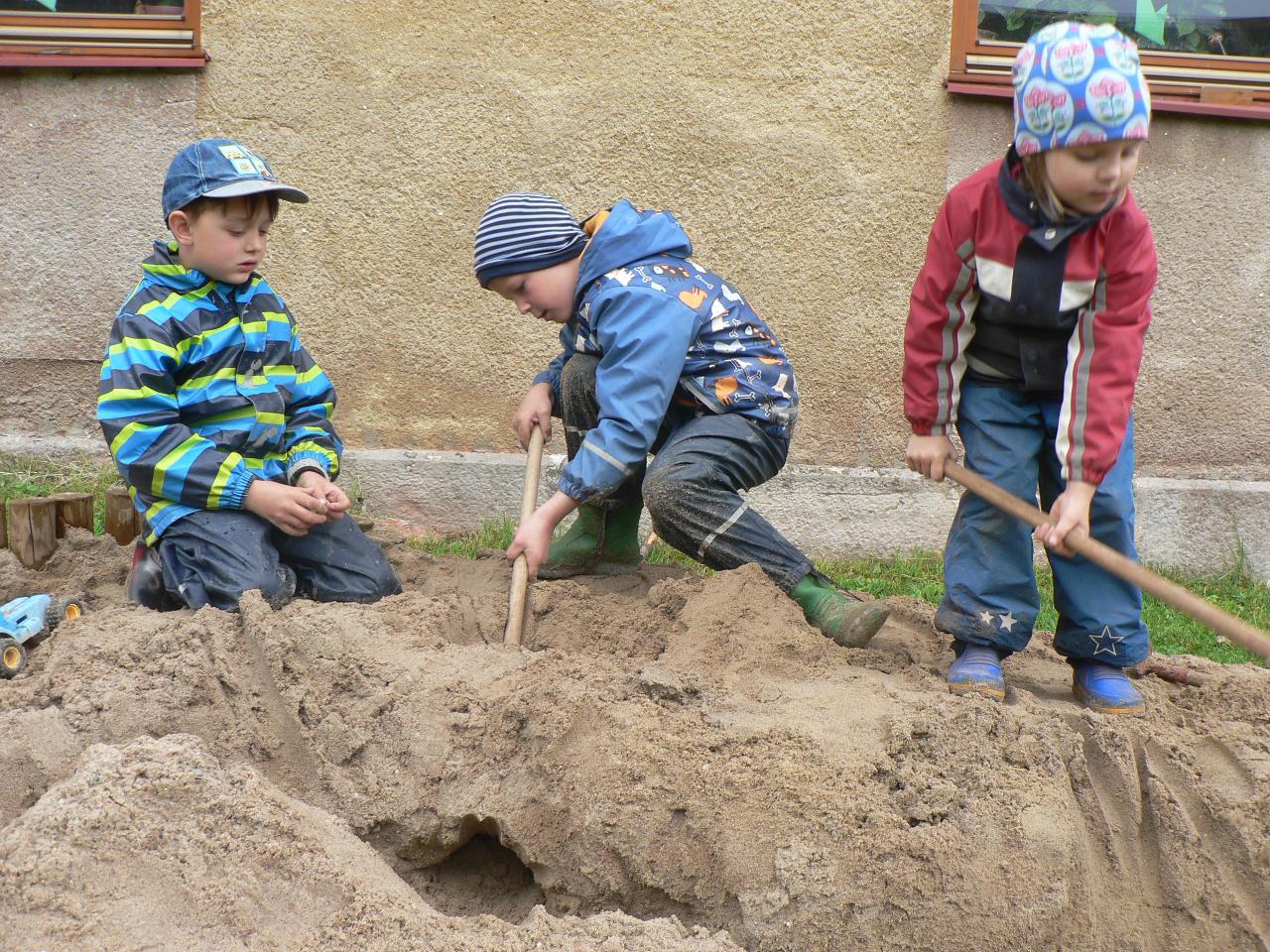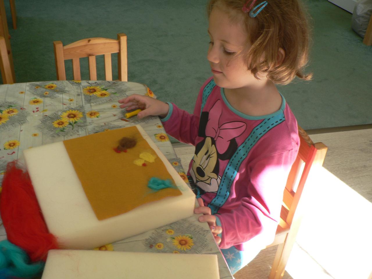 Tradiční pohádka o lakomém kohoutkovi a obětavé slepičce, pohádka, kterou děti dobře znají a která je výborná na procvičení paměti a schopnosti koncentrace. Koho musela slepička poprosit o pomoc, než dostala vodu pro svého kohoutka, co všechno musela udělat a jak to šlo popořadě. Posloupnost příběhu jsme zkoušeli také s pomocí obrázkových kartiček a dát dohromady správný průběh během čtvrtečního divadýlka pak už byla hračka. Při každodenním vyrábění jsme s dětmi lepili papírové slepičky, drátkovali zápichy do květináčů, malovali kohoutky tuší nebo plstili rozkvetlou louku. Naučili jsme se nové říkanky, hráli pohybové hry, cvičili jógu. Venku jsme se hodně věnovali pohybovým aktivitám a hrám, hodně jsme běhali, šplhali po stromech, lezli po kládách i po kamenech, honili jsme se i schovávali. Na louce jsme pak lovili brouky či pavouky a jiný hmyz.