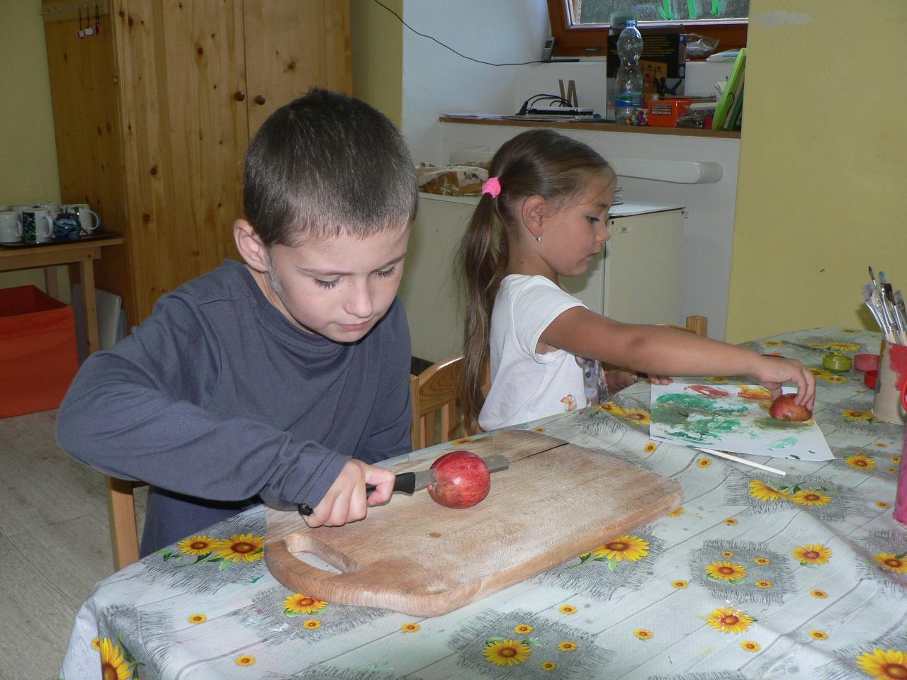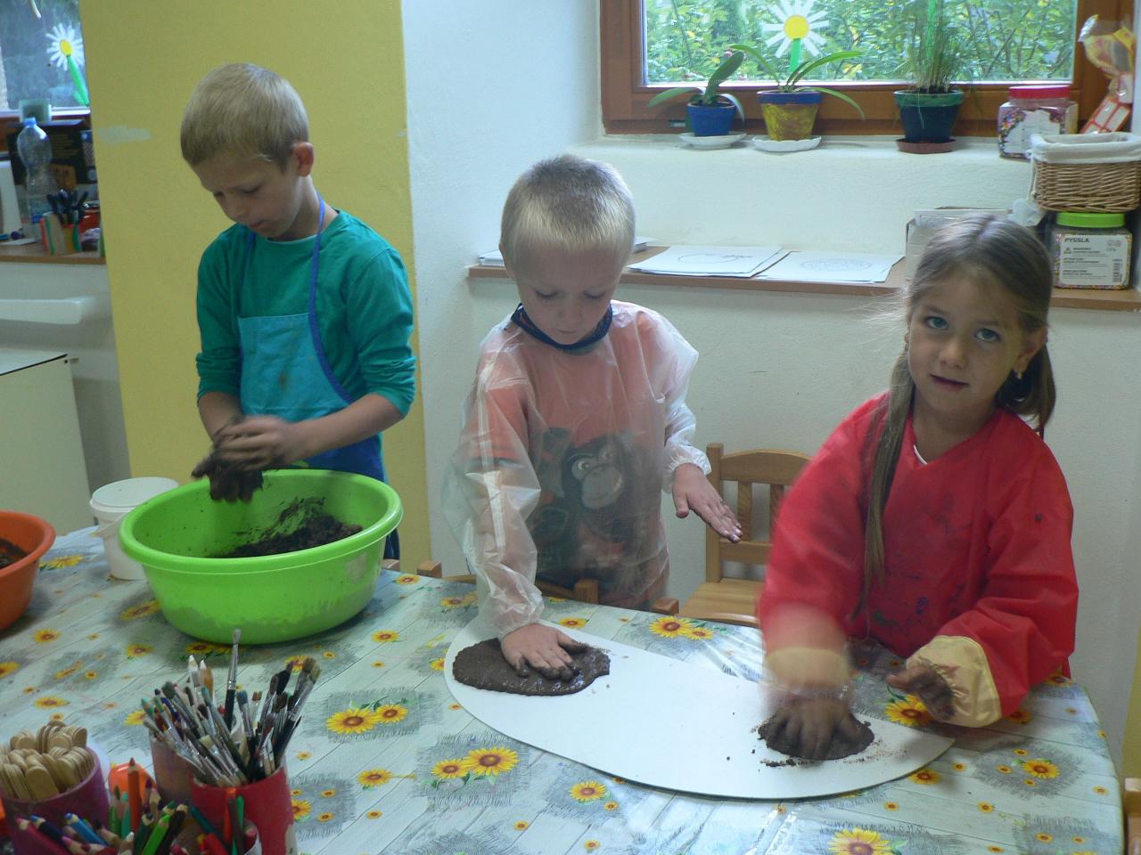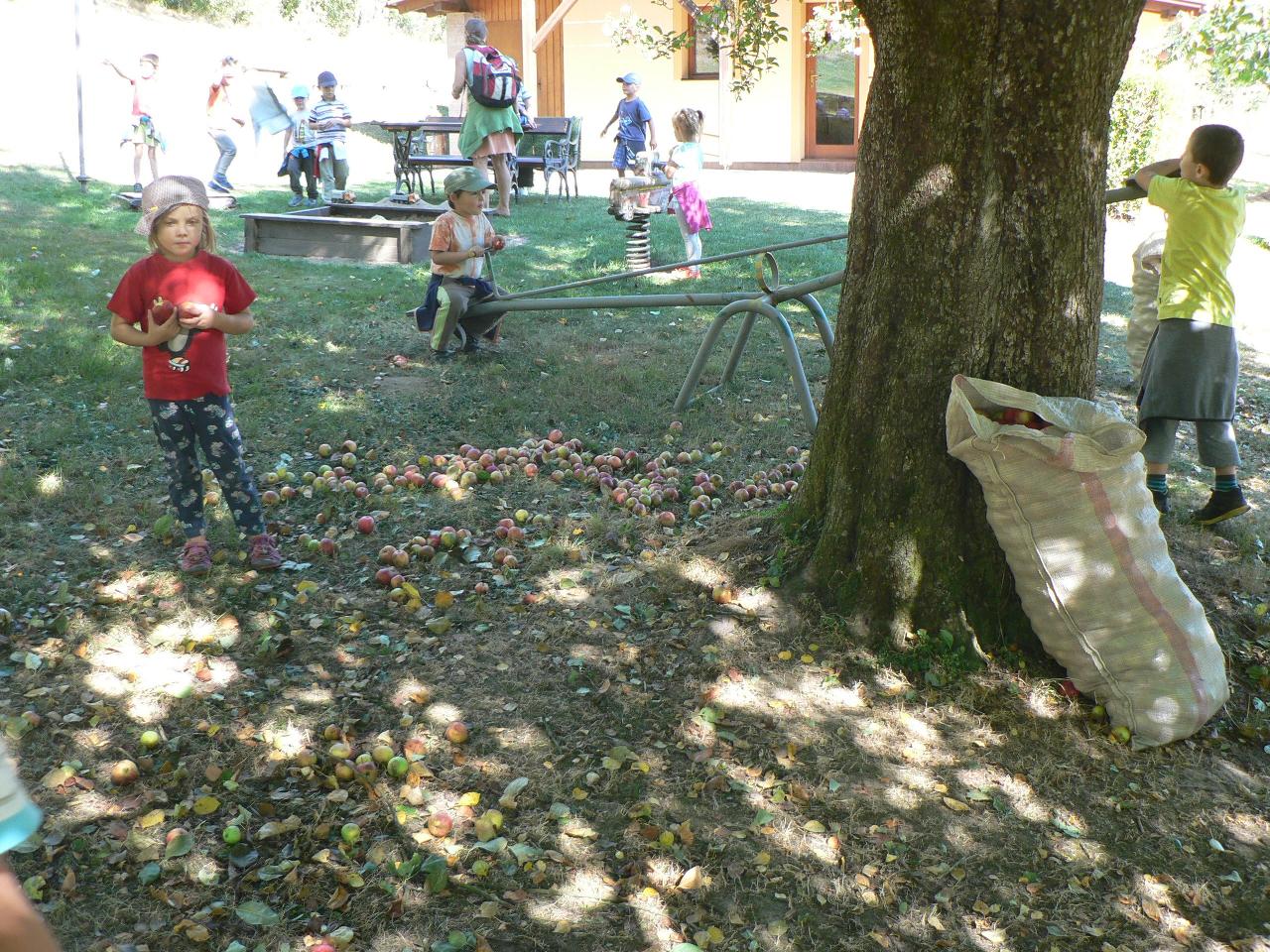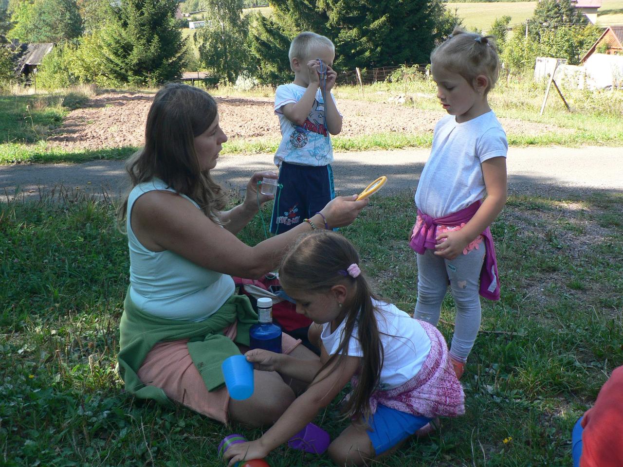 Tento týden jsme si vyprávěli pohádku o pejskovi, kočičce a pracovité Andulce, kterou nevlastní matka vyhnala z domu. Andulka se ale ve světě se neztratila, cestou pomohla studánce plné bláta, jabloni, kterou sužovaly housenky, zanedbanému koníčku s hřívou plnou bodláků i staré peci, kterou už dlouho nikdo neočistil od popela. Dívenka byla v pohádce za své dobré skutky náležitě odměněna a my jsme společně s dětmi vše naplno prožívali. Sbírali jsme jablíčka, malovali uhlíky na dřevo, díky dešti jsme si užili i velké bláto a skákání v kalužích a na jedné z procházek jsme se nevyhnuli ani bodlákům. Počasí nám přálo a celým týdnem nás také provázely nové říkačky a písničky.