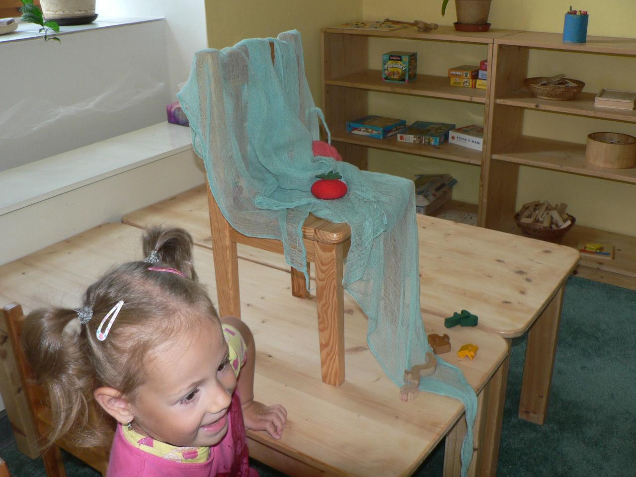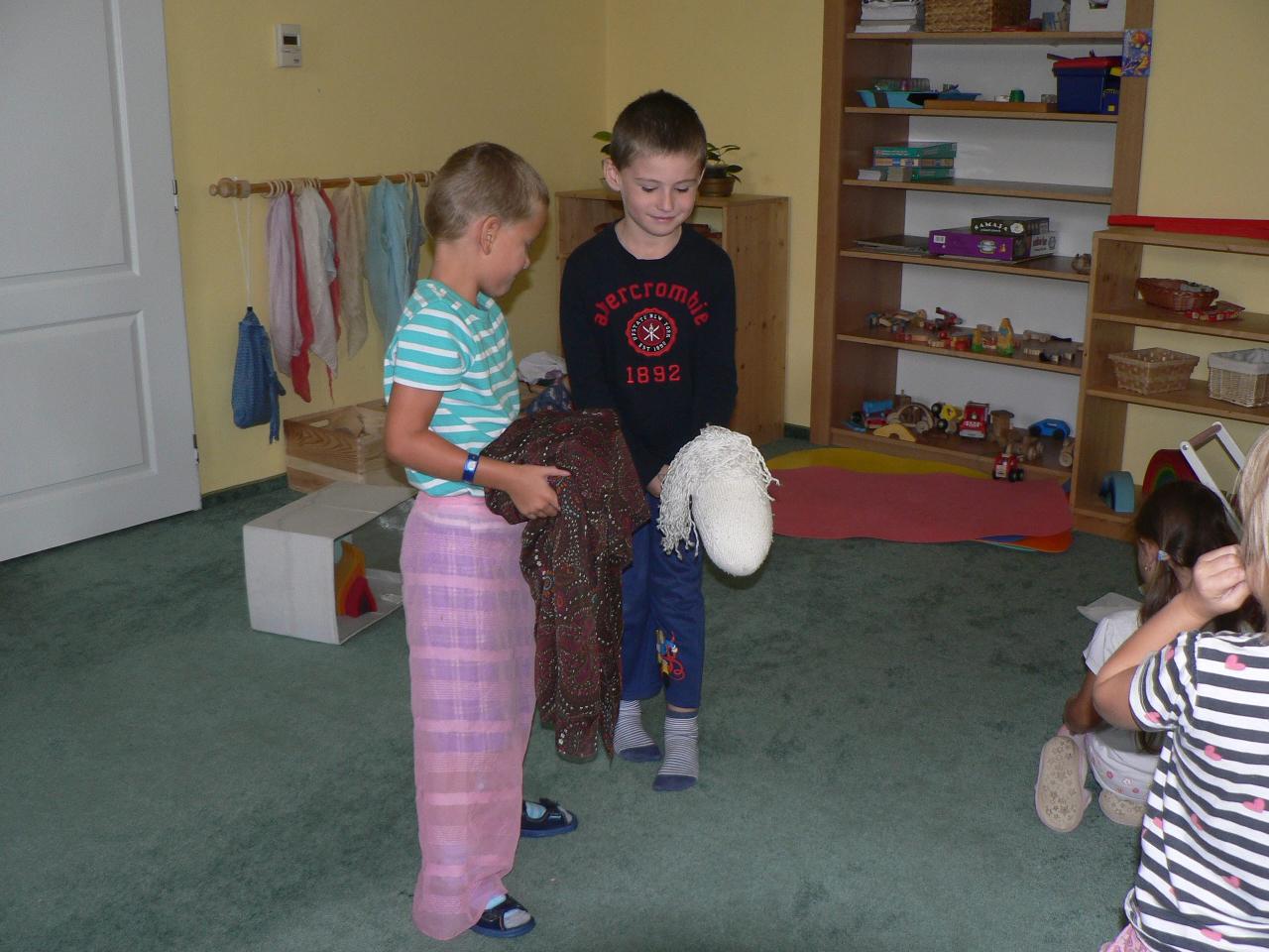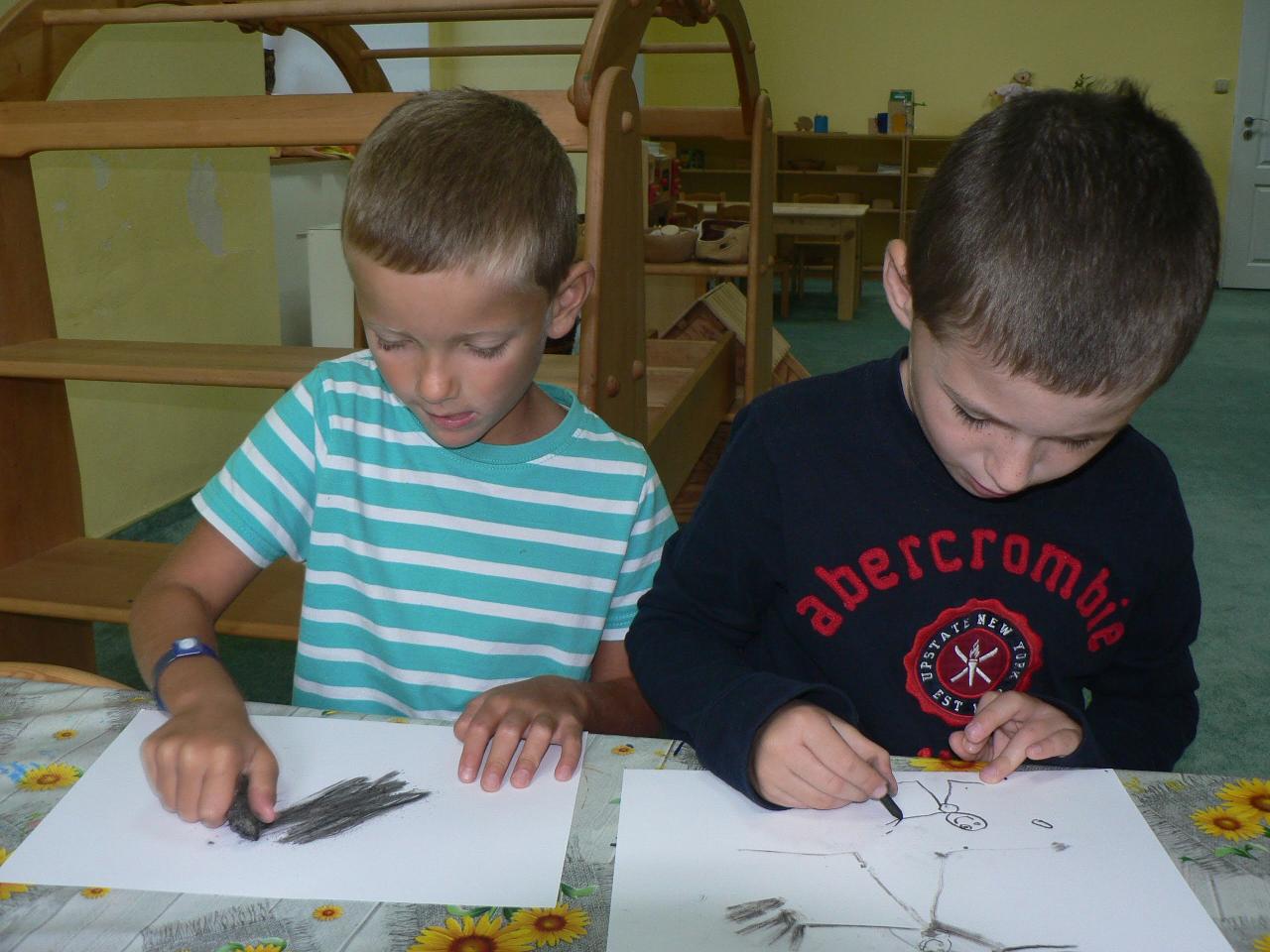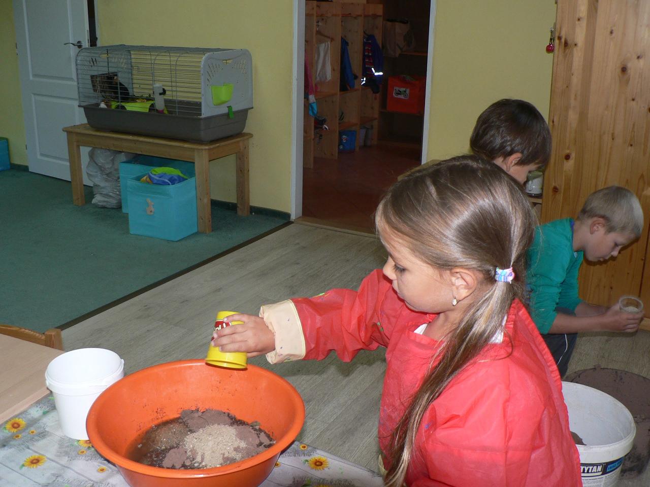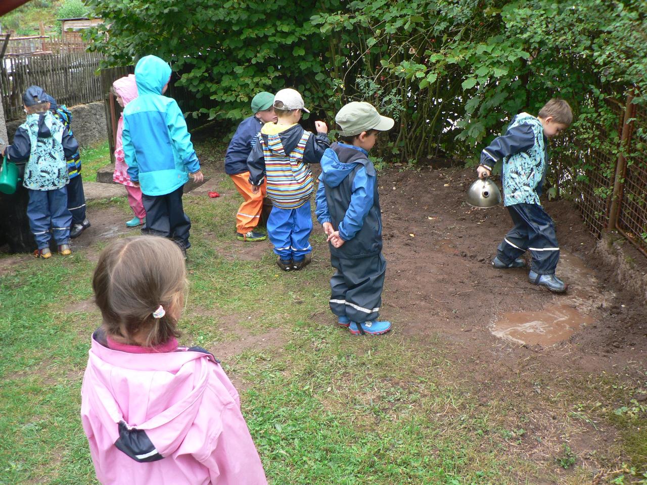 Tento týden jsme si vyprávěli pohádku o pejskovi, kočičce a pracovité Andulce, kterou nevlastní matka vyhnala z domu. Andulka se ale ve světě se neztratila, cestou pomohla studánce plné bláta, jabloni, kterou sužovaly housenky, zanedbanému koníčku s hřívou plnou bodláků i staré peci, kterou už dlouho nikdo neočistil od popela. Dívenka byla v pohádce za své dobré skutky náležitě odměněna a my jsme společně s dětmi vše naplno prožívali. Sbírali jsme jablíčka, malovali uhlíky na dřevo, díky dešti jsme si užili i velké bláto a skákání v kalužích a na jedné z procházek jsme se nevyhnuli ani bodlákům. Počasí nám přálo a celým týdnem nás také provázely nové říkačky a písničky.