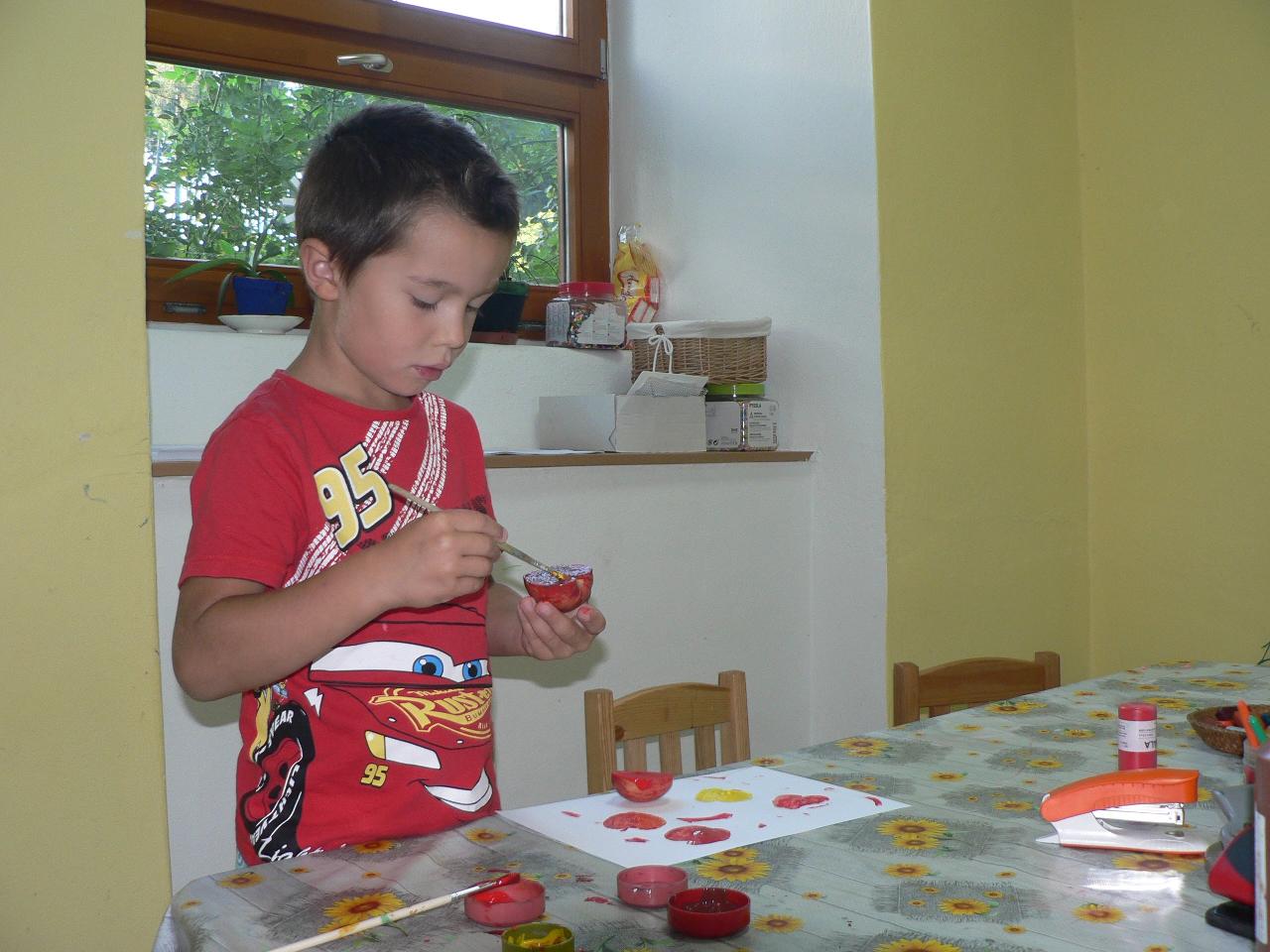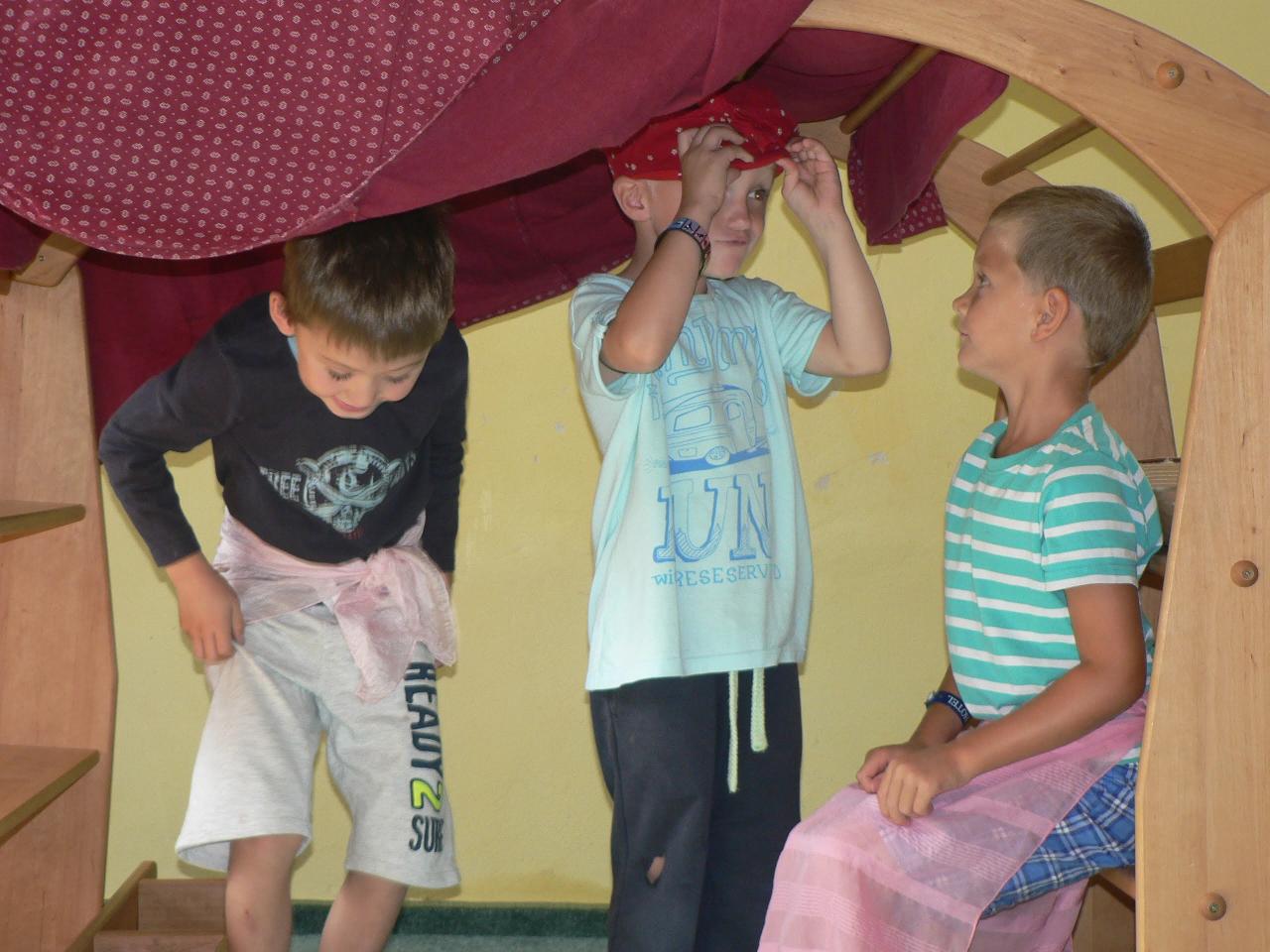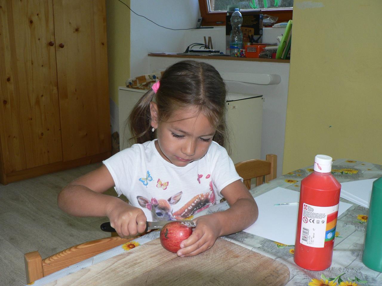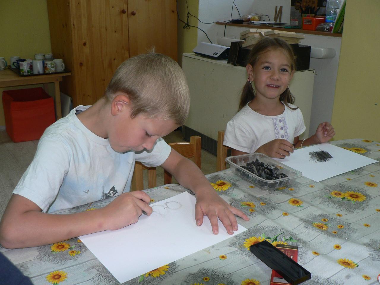 Tento týden jsme si vyprávěli pohádku o pejskovi, kočičce a pracovité Andulce, kterou nevlastní matka vyhnala z domu. Andulka se ale ve světě se neztratila, cestou pomohla studánce plné bláta, jabloni, kterou sužovaly housenky, zanedbanému koníčku s hřívou plnou bodláků i staré peci, kterou už dlouho nikdo neočistil od popela. Dívenka byla v pohádce za své dobré skutky náležitě odměněna a my jsme společně s dětmi vše naplno prožívali. Sbírali jsme jablíčka, malovali uhlíky na dřevo, díky dešti jsme si užili i velké bláto a skákání v kalužích a na jedné z procházek jsme se nevyhnuli ani bodlákům. Počasí nám přálo a celým týdnem nás také provázely nové říkačky a písničky.