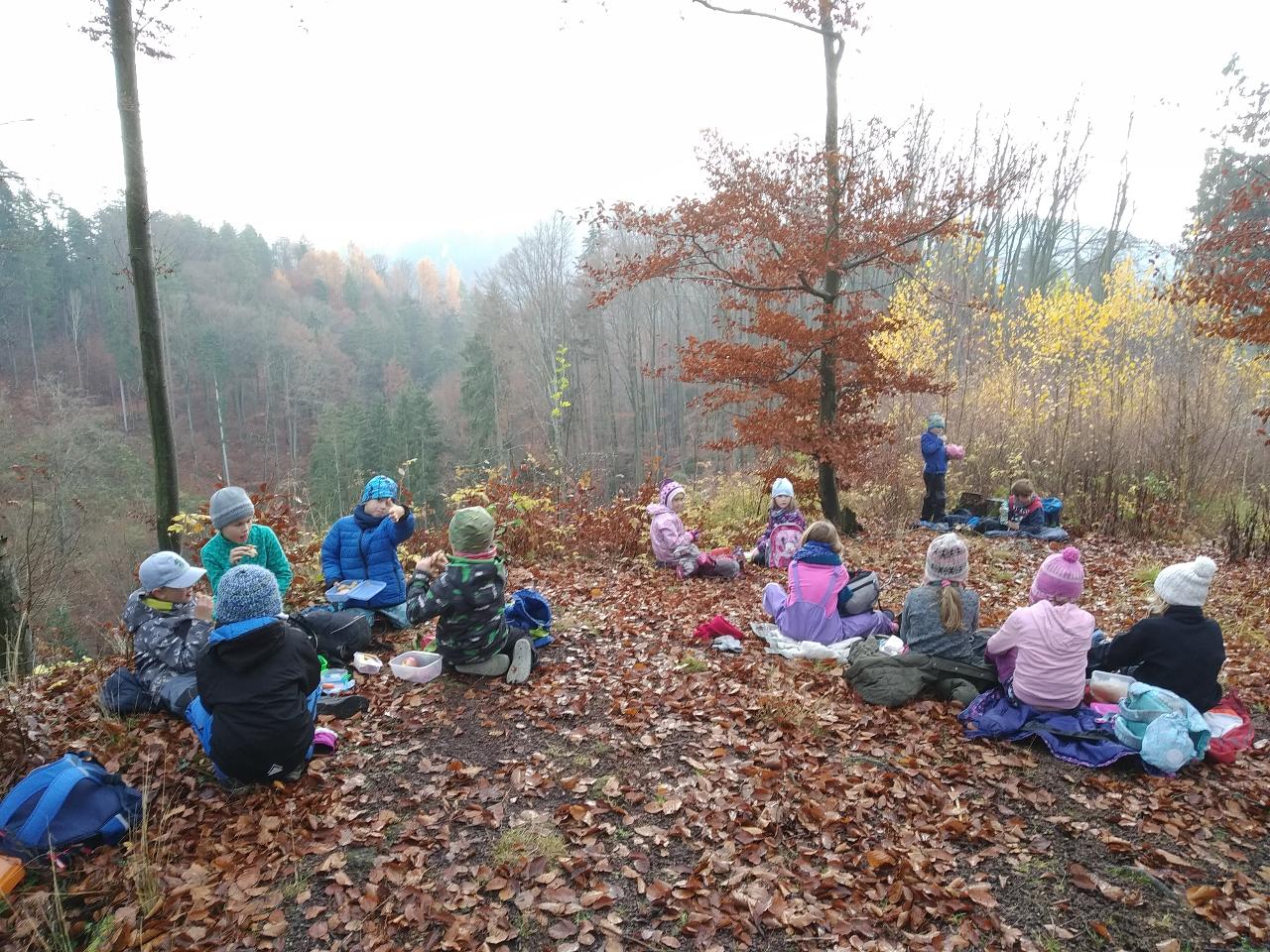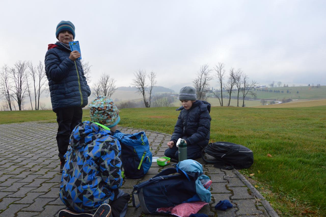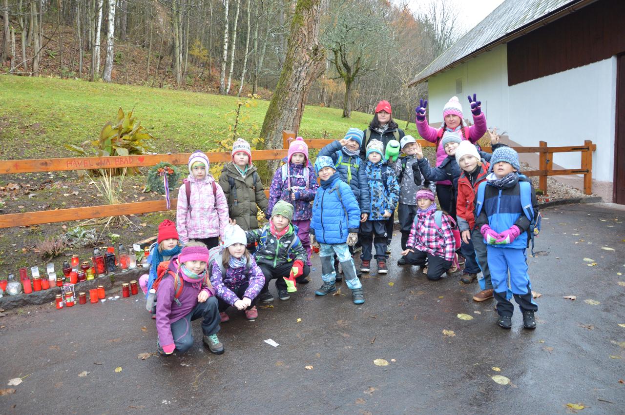 SVOBODA… Čím je pro nás svoboda? Jak svobodu vnímáme? Má svoboda nějaká pravidla? To je jen pár otázek, kterými jsme se celý týden zabývali. Je zajímavé pozorovat, jak svobodu vnímají naši nejmenší školáci. Venkovní den jsme prožili na místě, které je symbolicky spojené se svobodou. Vydali jsme se na Hrádeček k chalupě pana prezidenta Václava Havlava. Svítilo tam spoustu svíček, protože den před naším příjezdem bylo 32. výročí Sametové revoluce. V kruhu jsme si povídali o svobodě a naše povídání jsme ukončili českou hymnou. Nedaleko tohoto místa je zřícenina hradu Břecštejna, kterou jsme náležitě prozkoumali ze všech možných stran. Zdenda nás pak vedl cestou necestou a to doslova. V okolí byl polom stromů, takže o dobrodružství bylo postaráno. Byla docela zima, tak nám přišlo vhod slézat a vylézat vysoké stráně. Na závěr jsme se brodili potokem. To byl panečku zážitek. Máme úžasnou partu dětí, které se ničeho nezaleknou a také Miri s Lenkou to daly nakonec levou zadní :-) Buďme vděční, že můžeme svobodně vyrážet do přírody a užívat si společné chvíle.