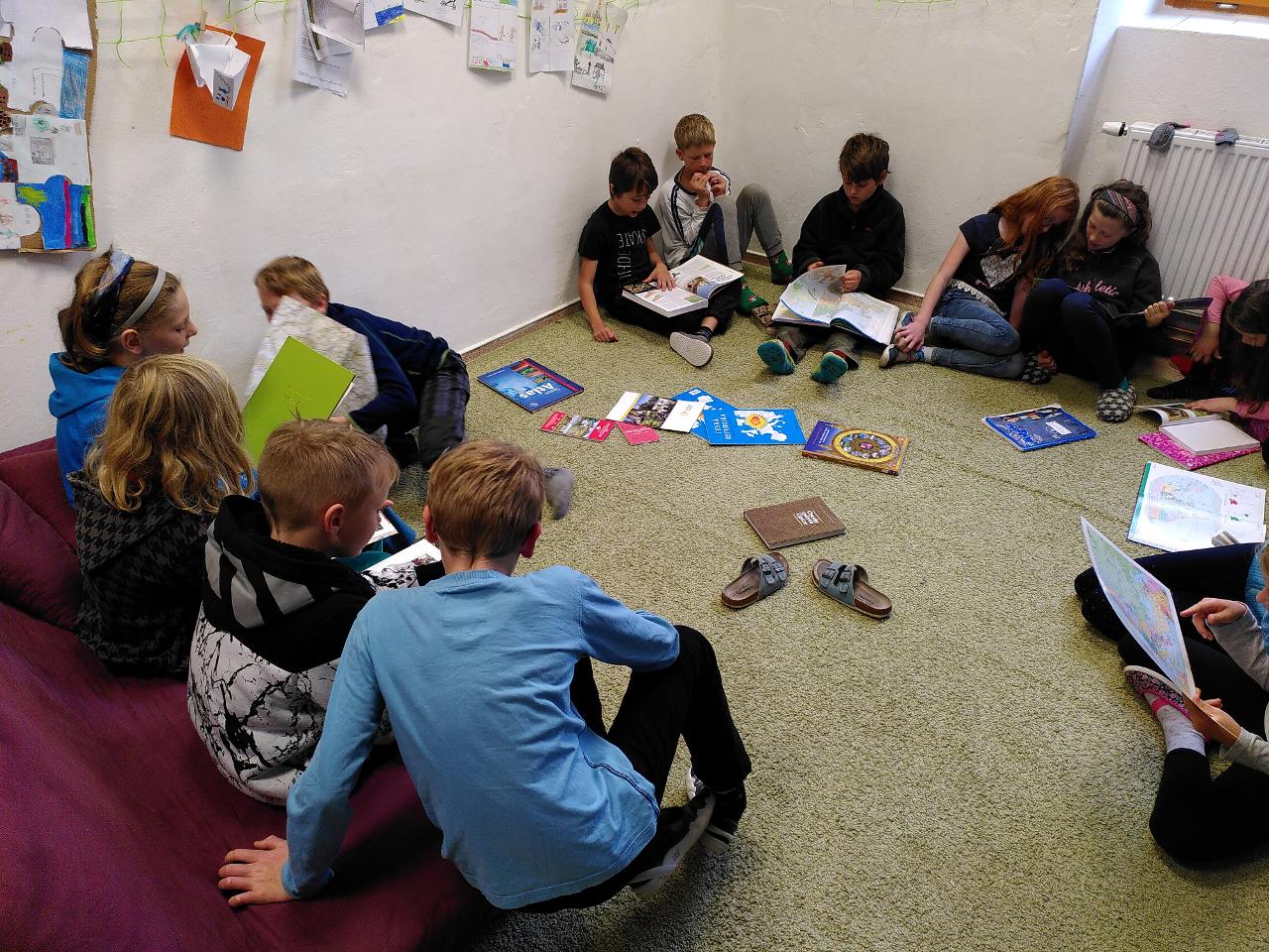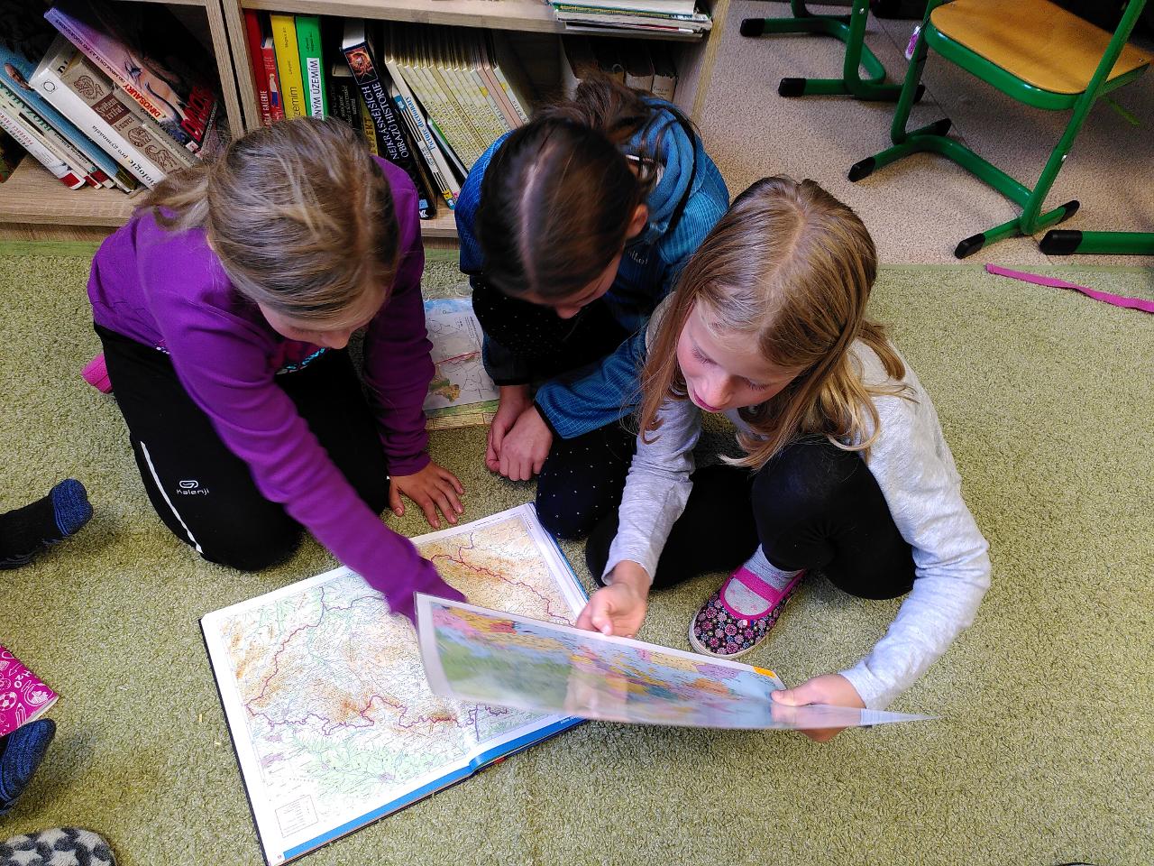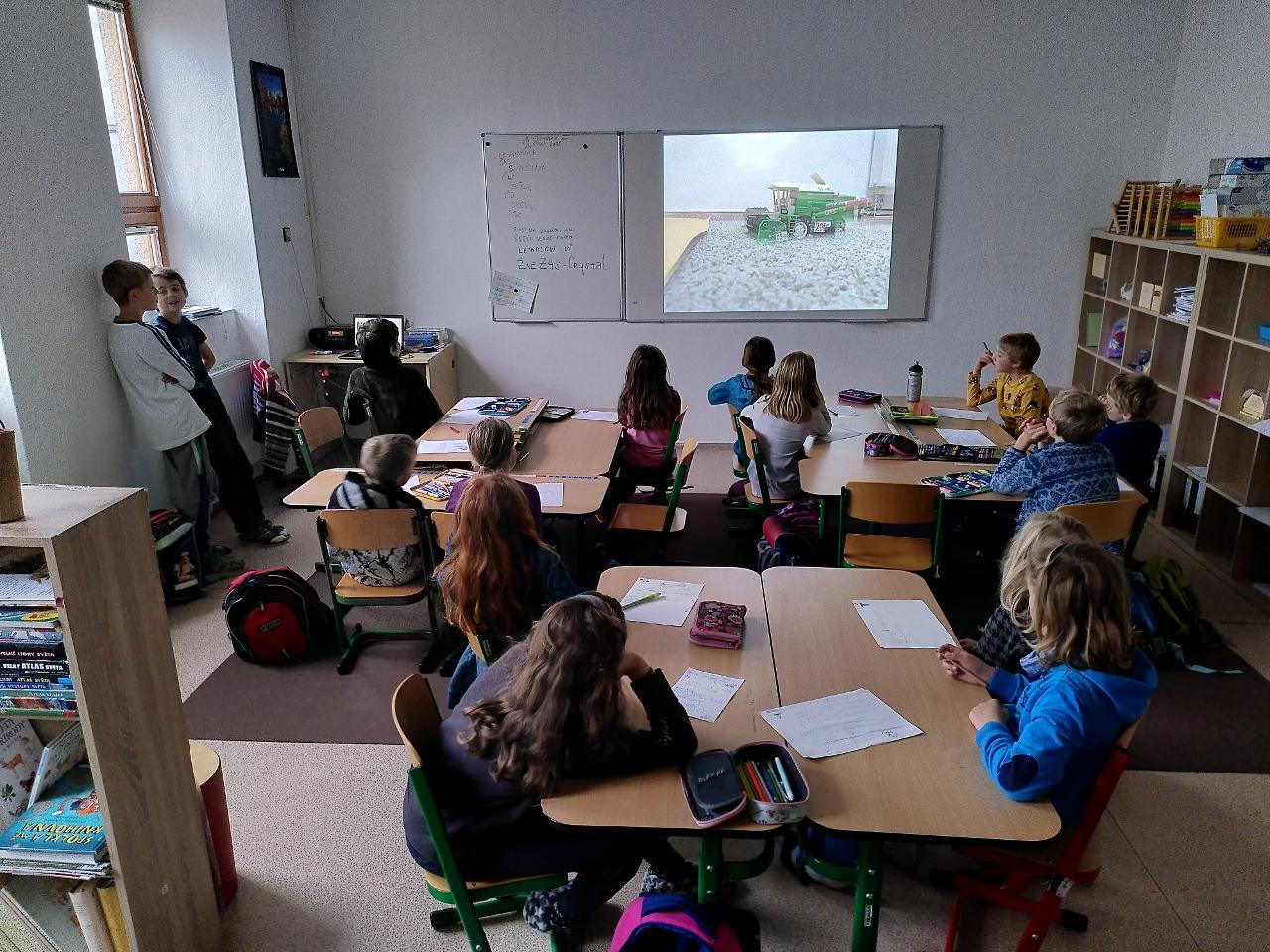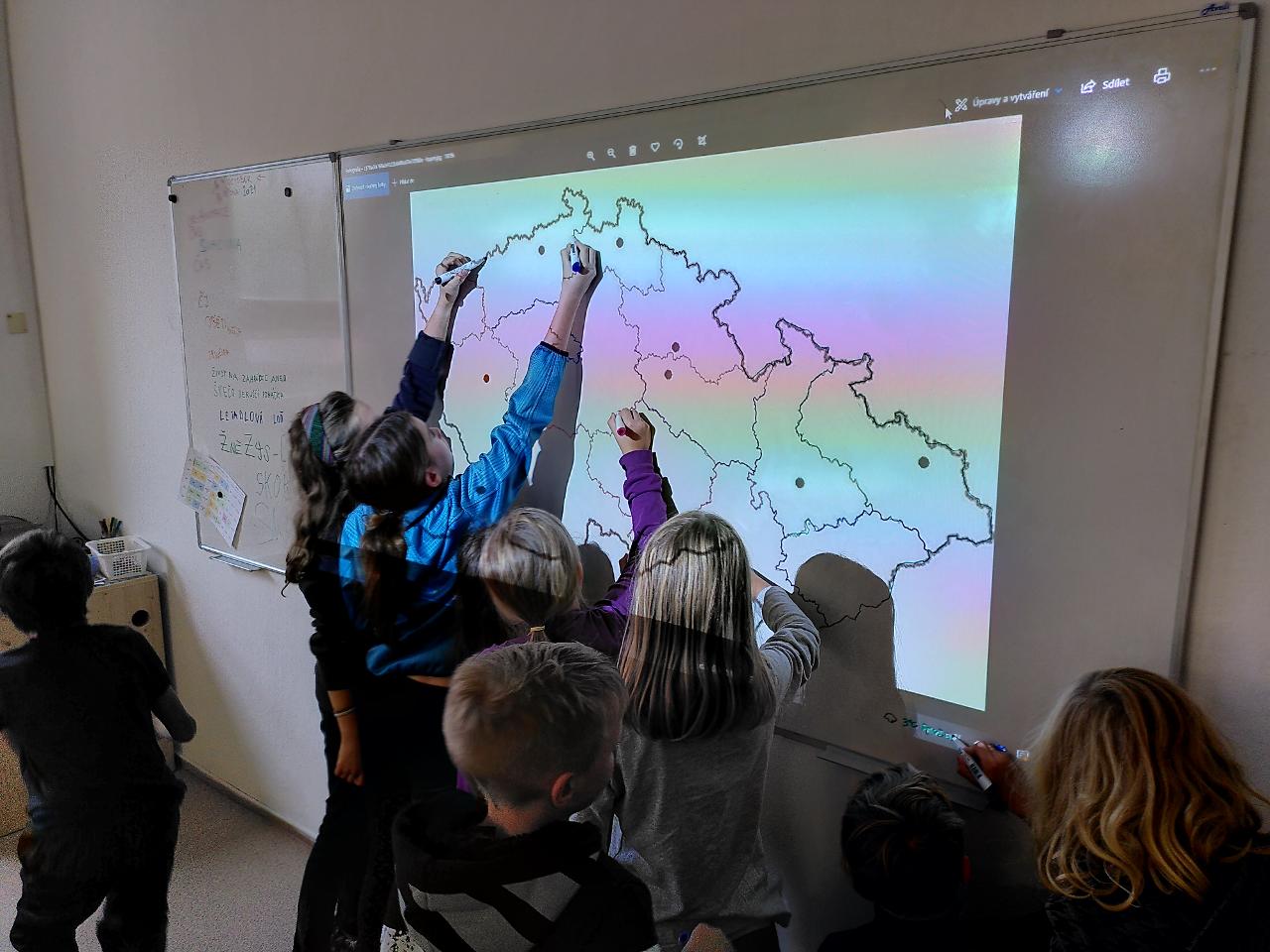 V polovině října se školáci prostřední třídy dostali od místa, kde poznání vyšších územních celků, kraje, státu, uskupení států, kontinentu. Pracovali jsme ve třídě s obrázkovými, mapovými i textovými publikacemi. V terénu jsme tvořili mapu našeho státu jako třída pomocí lana a dále jsme modelovali území Česka z různých přírodnin. Ve středu a ve čtvrtek jsme také žili dokončením animací, shlédnutím prací i reflexí celé aktivity. I v dalších předmětech školáci zažili zajímavé aktivity, například v českém jazyce skrz “telefonát” nebo v angličtině díky nové učebnici “Explore Together”.