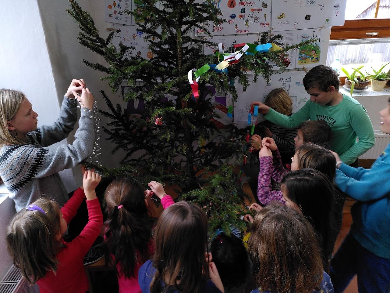 Tak, a je to tu. Máme tu poslední školní týden v roce 2021. Nebyl to sice celý týden, ale stál za to. Zapálili jsme čtvrtou adventní svíčku, pekli jsme perníčky, zpívali jsme koledy, muzicírovalo se, zkrátka nastaly přípravy na Mravenčí Vánoce, na které se každý rok těšíme. V pondělí jsme měli Vánoce s jednotlivými předměty. Procházeli jsme mezi třídami, kde jsme plnily různé úkoly z matematiky, českého a anglického jazyka. Také jsme si bezvadně vyzdobili třídy. Nechyběly vánoční tradice a řádění venku na sněhu…a ani zdobení stromečku. Každý rok je kouzelně jinak krásný. Ve středu jsme zašli do markoušovického kostelíku, kde se nesly zásluhou školáků libé tóny koled nejen na nové školní piano. Když jsme se vrátili, bylo už pod stromečkem naděleno. Vánoční nadílka byla opravdu pestrá, dárečky byly letos na písmenko T a měly mít červenou barvu: kdosi vyrobil úžasný červený tank, nechyběly červené tužky, nebo tácky, ale také červené tričko nebo tiskátko. Děkujeme za spousty her do družinky, ale také pomůcky na různé pokusy. Odpoledne jsme se postupně rozešli ke svým rodinám s přáním klidného vánočního času a hlavně zdravíčka pro všechny naše blízké. Těšíme se na další rok. Co nám asi přinese?