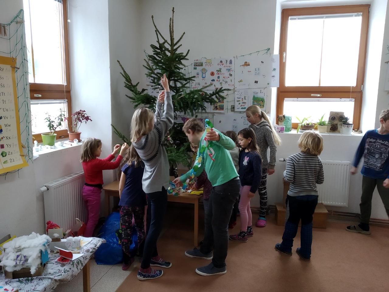 V pátek jsme si zdobili stromek a pak jsme si rozdávali dárky, které musely