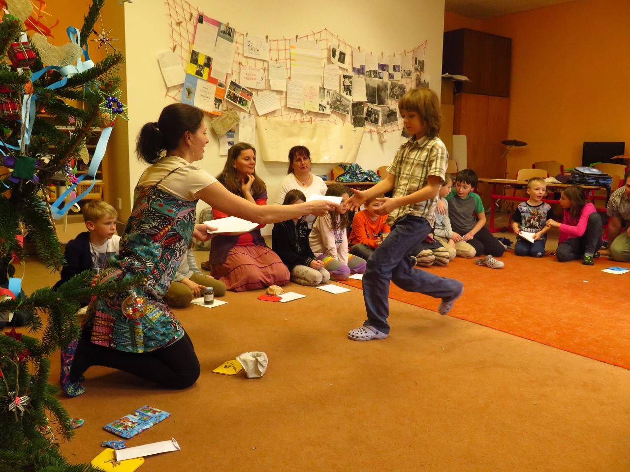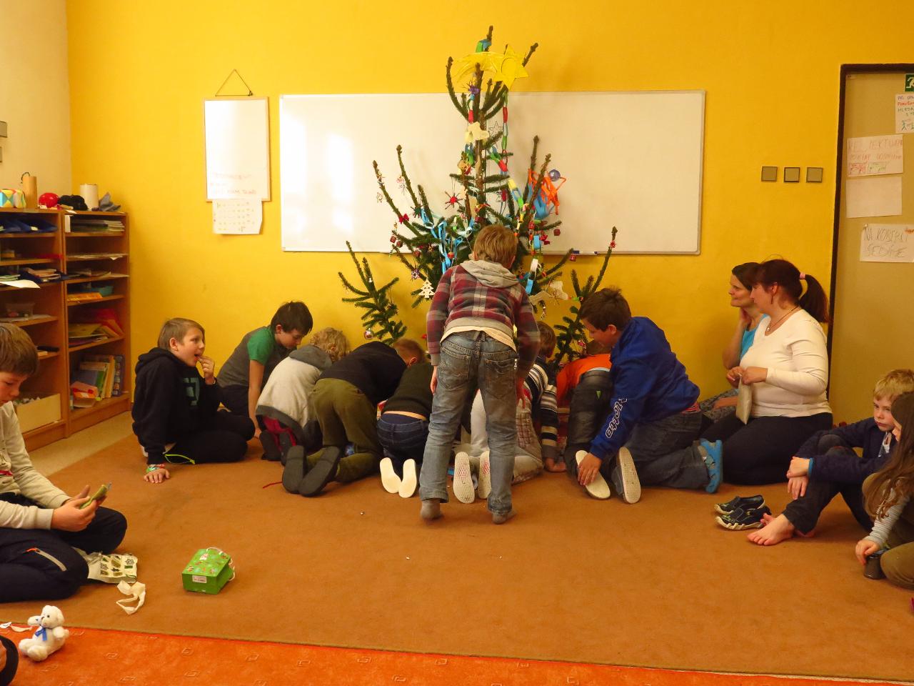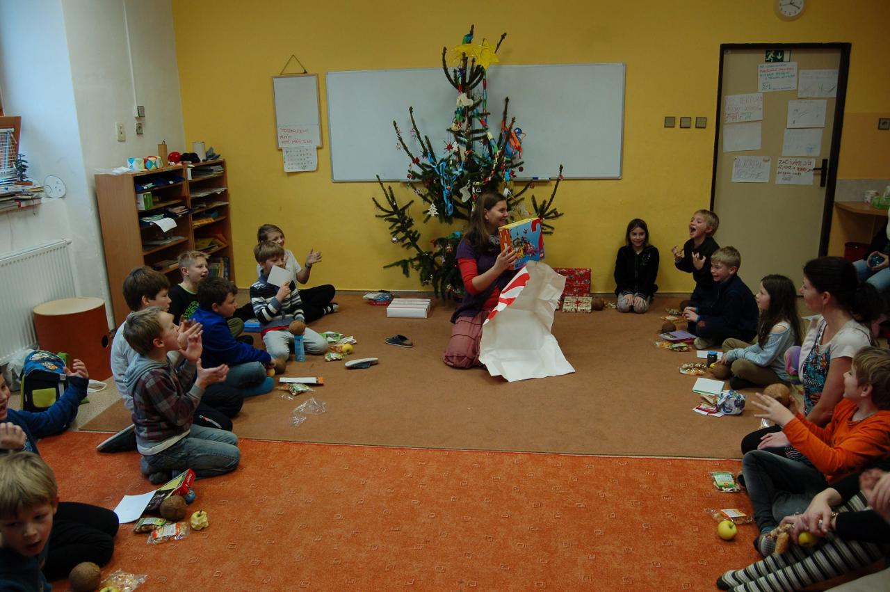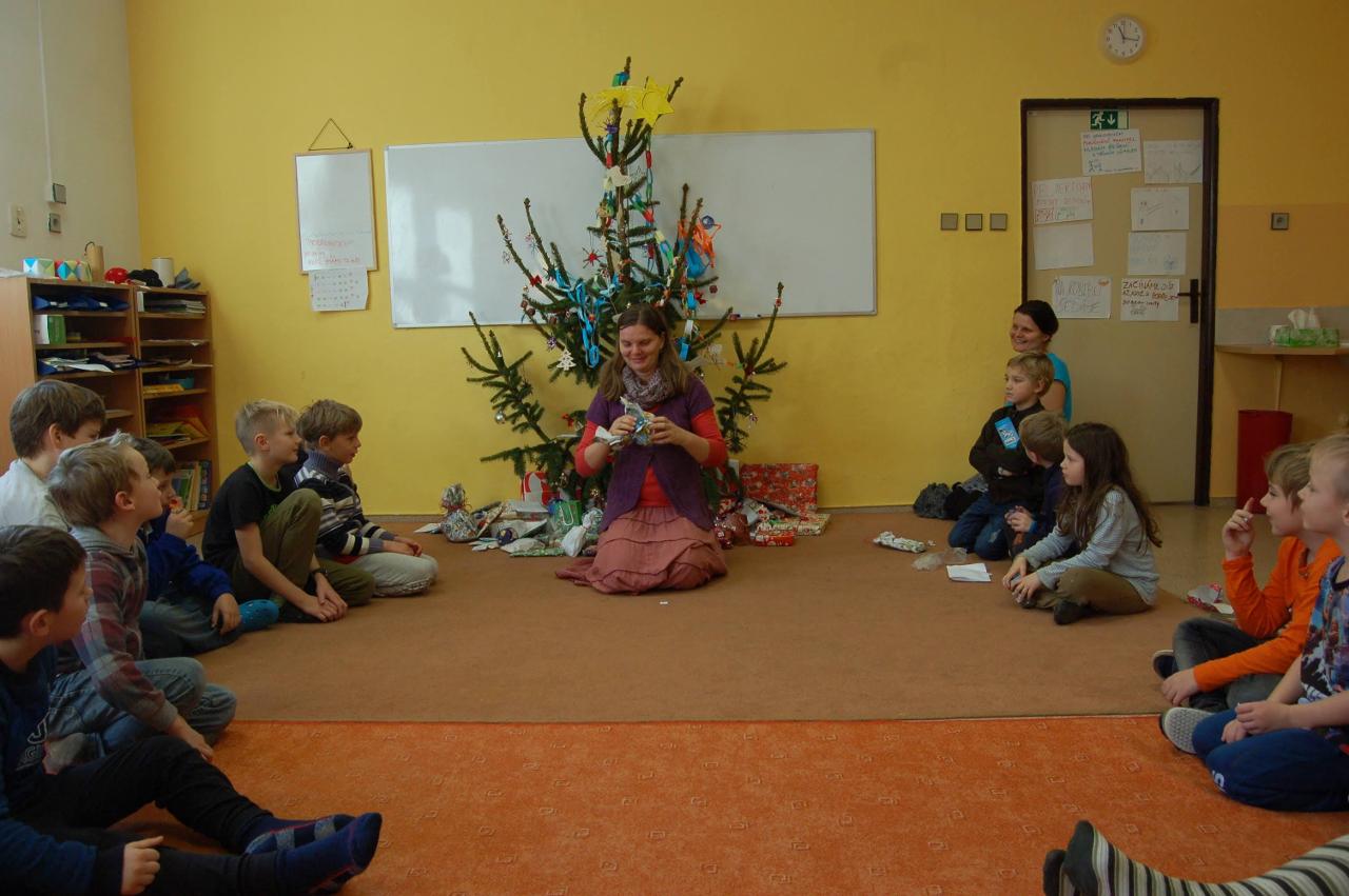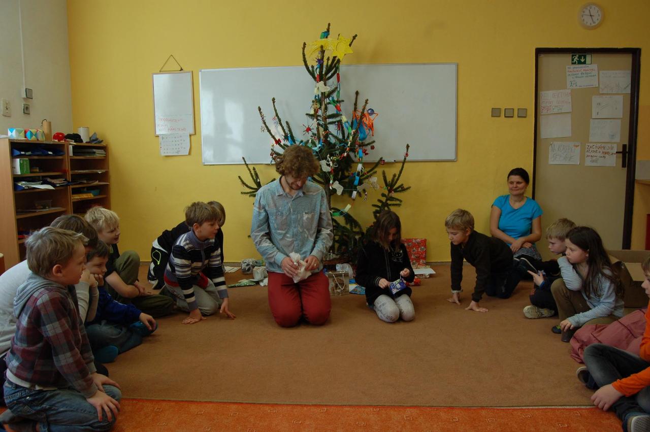Poslední školní týden “starého” roku jsme věnovali pilování divadelního představení Mariin Oslík, na kterém spolupracovalo celé Mraveniště. Po každodenním zkoušení se středeční představení v Markoušovickém kostele vydařilo a potěšilo nejen diváky, ale i účinkující. V pondělí si také rodina Portychova připravila česko-anglické povídání o Londýně, který navštívili na podzim. Díky Sebastiánovi jsme následující den objevovali i prostředí Jamajky, kde strávil pár týdnů s rodiči. Spočítali jsme také tržbu z jarmarku, představovali si čtenářské deníky nebo zpívali při angličtině Merry Xmas/War is Over. Ve čtvrtek jsme zažili krásné společné obdarování. Každý přinesl modrý dárek začínající na písmenko “M” a při rozbalování losovaných dárků byla často velká legrace, častým dárkem byly modré míčky, ale objevilo se tam např. i modré mraveniště :-) Dále jsme rozbalili i velké množství her pro školáky i dospěláky a spoustu dalších dárečků...