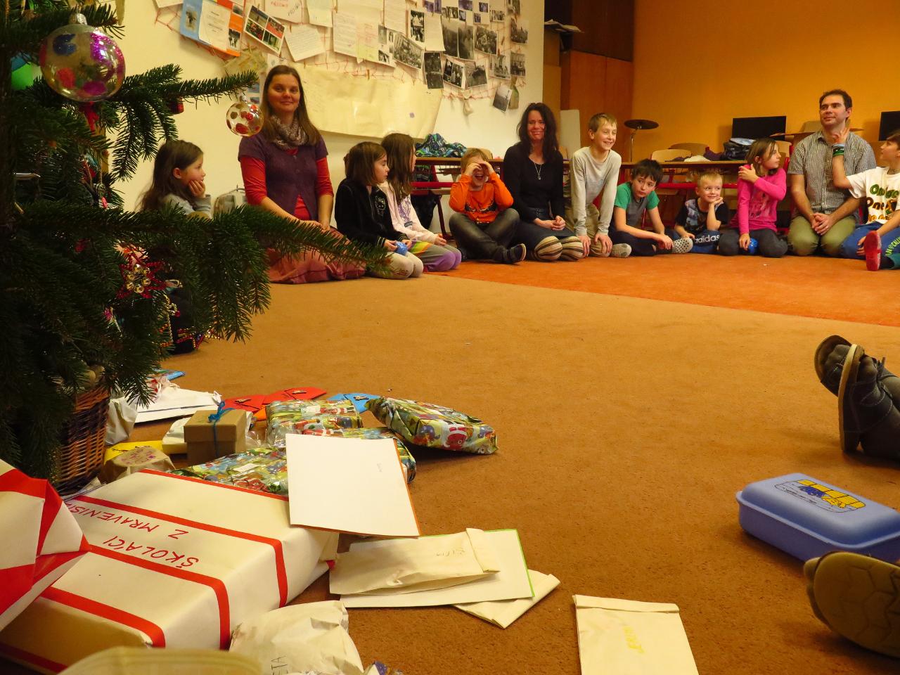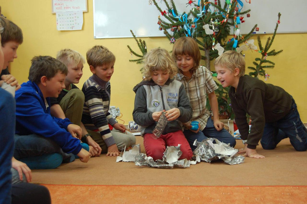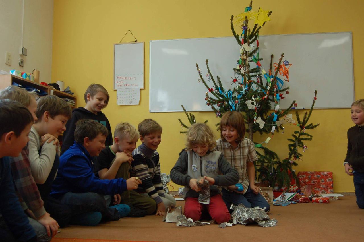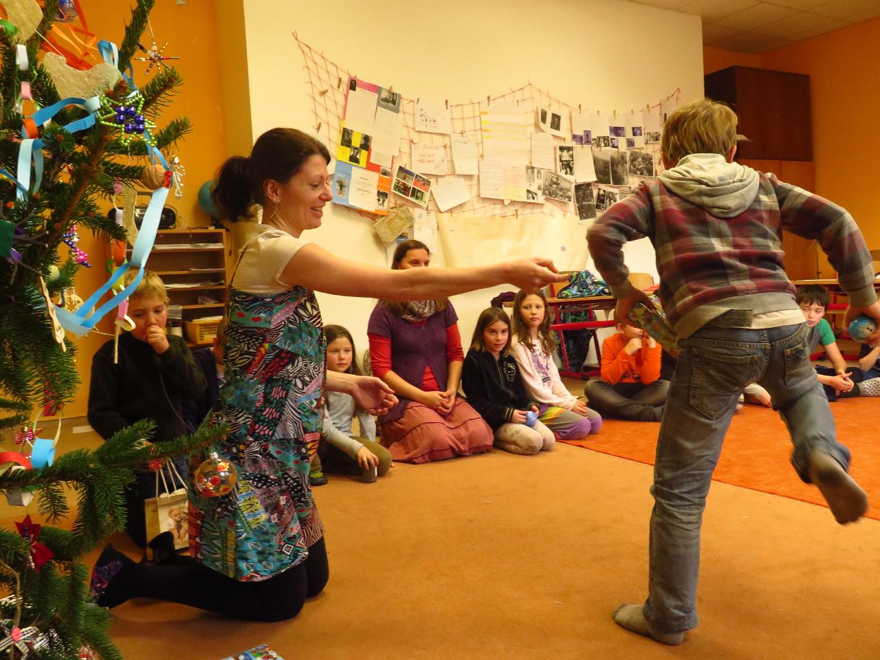 Poslední školní týden “starého” roku jsme věnovali pilování divadelního představení Mariin Oslík, na kterém spolupracovalo celé Mraveniště. Po každodenním zkoušení se středeční představení v Markoušovickém kostele vydařilo a potěšilo nejen diváky, ale i účinkující. V pondělí si také rodina Portychova připravila česko-anglické povídání o Londýně, který navštívili na podzim. Díky Sebastiánovi jsme následující den objevovali i prostředí Jamajky, kde strávil pár týdnů s rodiči. Spočítali jsme také tržbu z jarmarku, představovali si čtenářské deníky nebo zpívali při angličtině Merry Xmas/War is Over. Ve čtvrtek jsme zažili krásné společné obdarování. Každý přinesl modrý dárek začínající na písmenko “M” a při rozbalování losovaných dárků byla často velká legrace, častým dárkem byly modré míčky, ale objevilo se tam např. i modré mraveniště :-) Dále jsme rozbalili i velké množství her pro školáky i dospěláky a spoustu dalších dárečků...