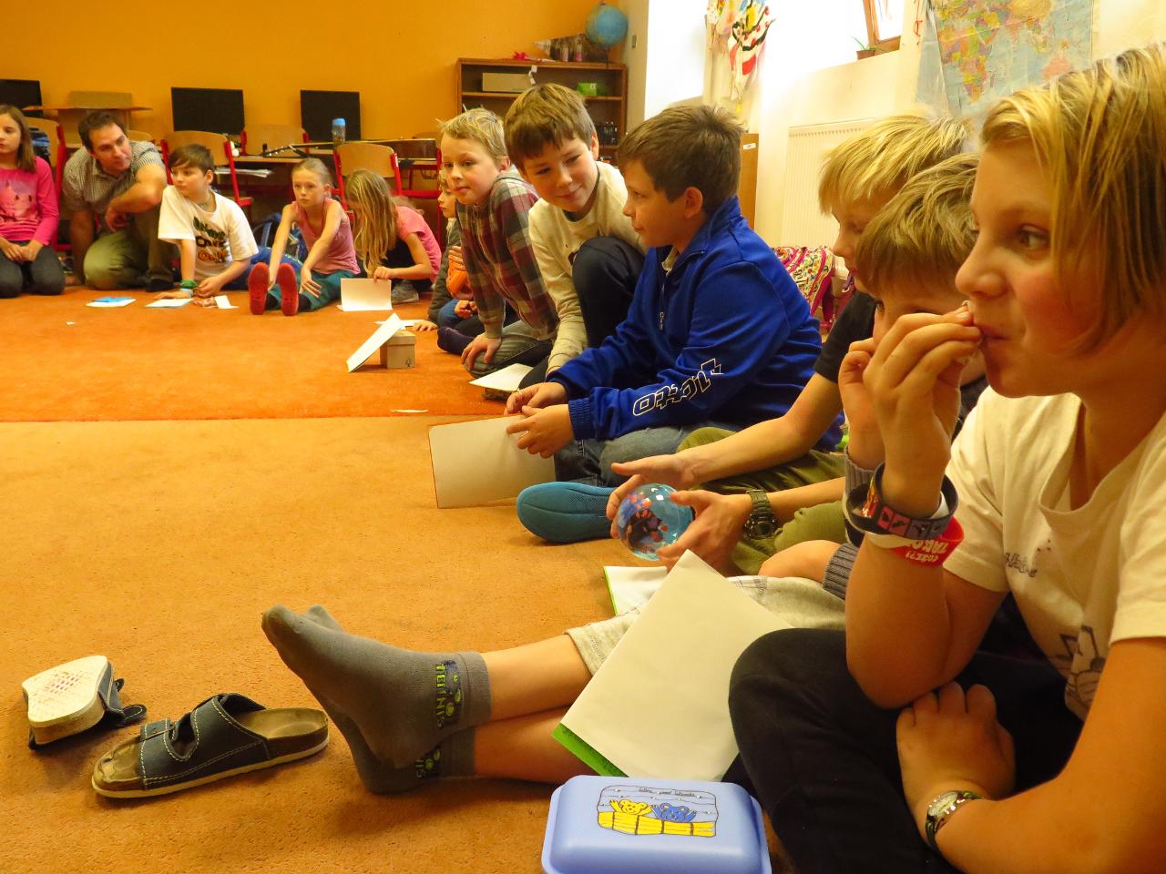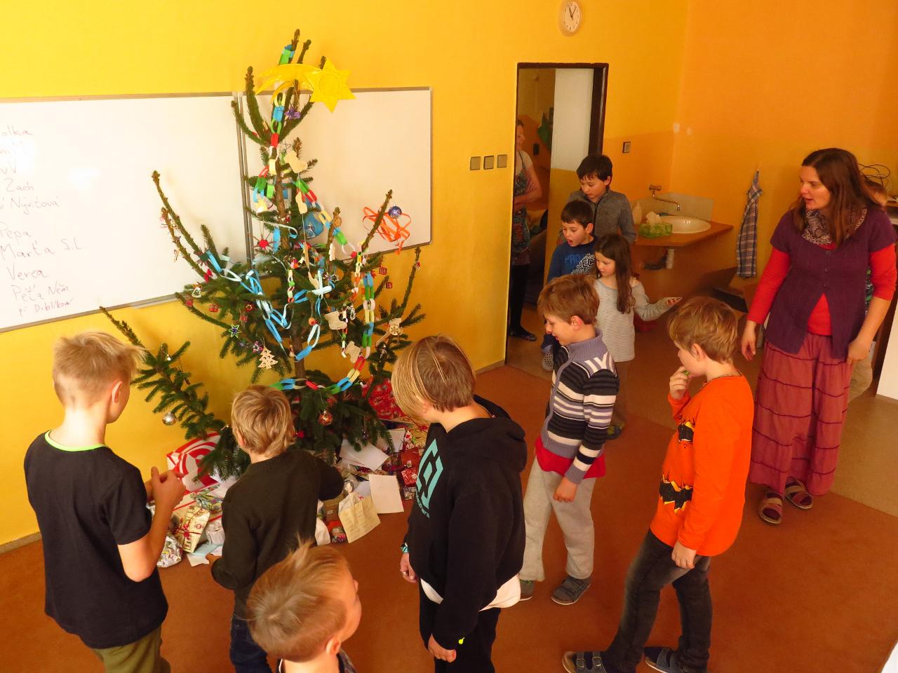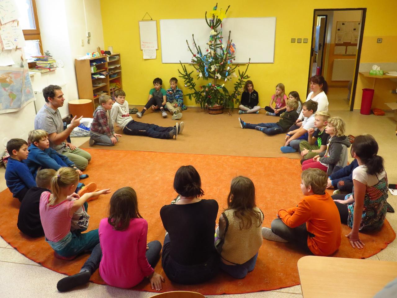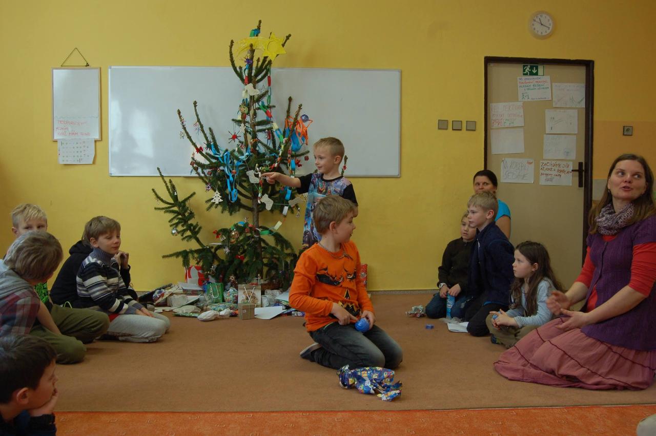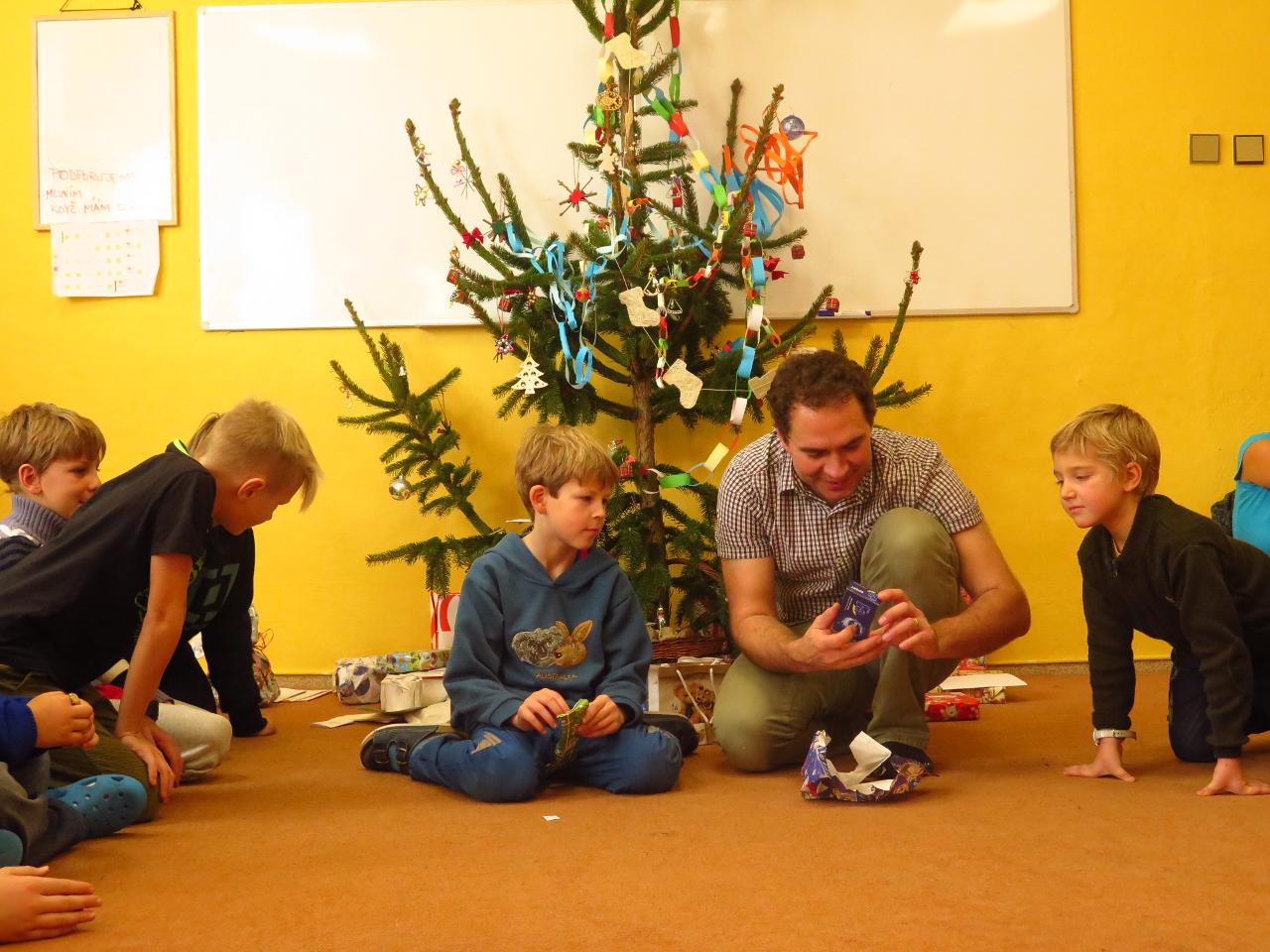 Poslední školní týden “starého” roku jsme věnovali pilování divadelního představení Mariin Oslík, na kterém spolupracovalo celé Mraveniště. Po každodenním zkoušení se středeční představení v Markoušovickém kostele vydařilo a potěšilo nejen diváky, ale i účinkující. V pondělí si také rodina Portychova připravila česko-anglické povídání o Londýně, který navštívili na podzim. Díky Sebastiánovi jsme následující den objevovali i prostředí Jamajky, kde strávil pár týdnů s rodiči. Spočítali jsme také tržbu z jarmarku, představovali si čtenářské deníky nebo zpívali při angličtině Merry Xmas/War is Over. Ve čtvrtek jsme zažili krásné společné obdarování. Každý přinesl modrý dárek začínající na písmenko “M” a při rozbalování losovaných dárků byla často velká legrace, častým dárkem byly modré míčky, ale objevilo se tam např. i modré mraveniště :-) Dále jsme rozbalili i velké množství her pro školáky i dospěláky a spoustu dalších dárečků...