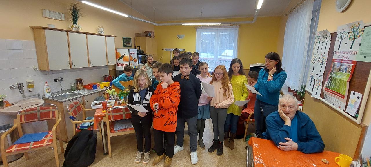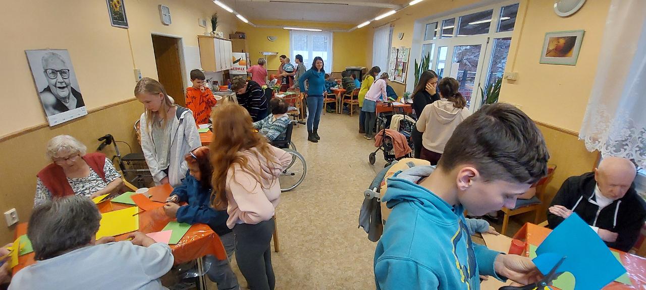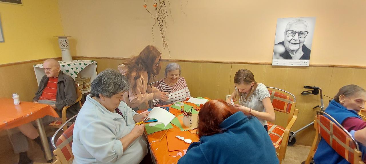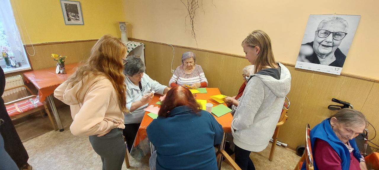 V tomto týdnu jsme navštívili Domov důchodců v Lamperticích, kde jsme pomáhali seniorům tvořit vánoční přáníčka a společně si zazpívali vánoční koledy.