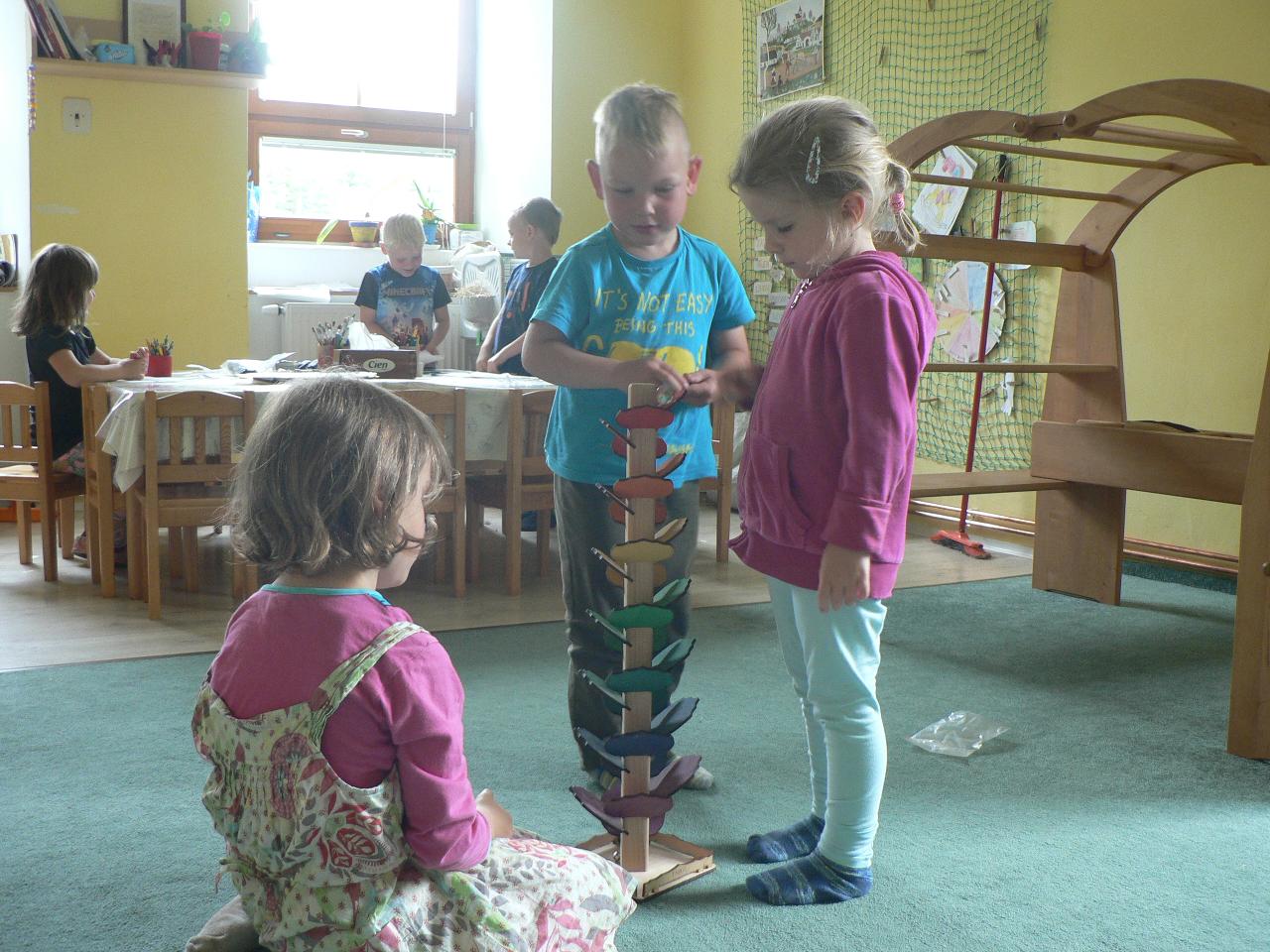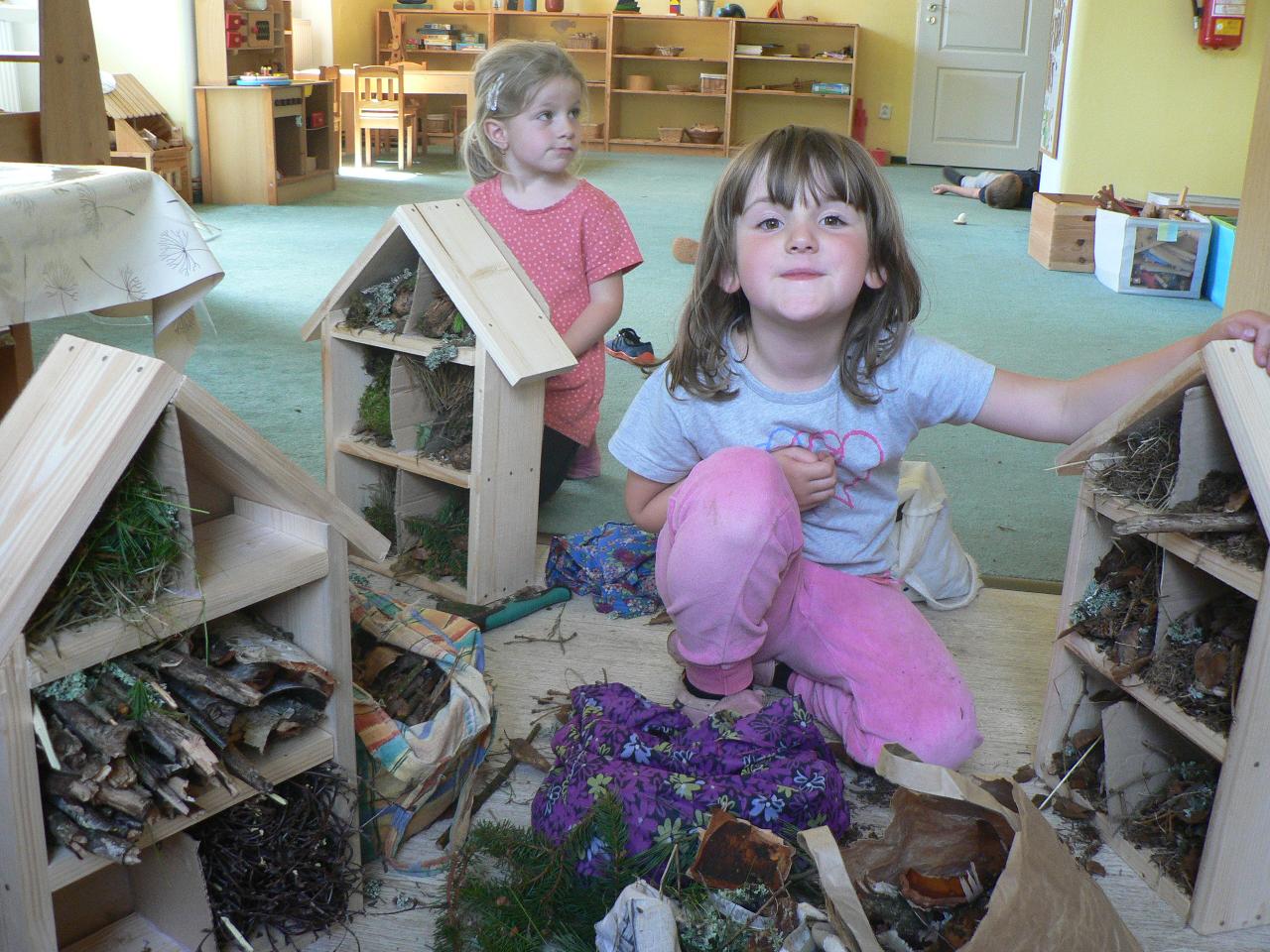 Celý týden jsme si vyprávěli pohádku O včelce Julince a díky jejímu vyprávění jsme poznávali, jak to v takovém úlu chodí. Co všechno mají včelky na starosti. Z čeho vlastně vyrábí med a k čemu slouží vosk a plásty. Ukazovali jsme si a povídali, jak přichází na svět nové včelky, co všechno mají na starosti včelky dělnice a kdo ještě s nimi v úlu bydlí. Připomněli jsme si také, jaké druhy hmyzu jsou včelkám podobné a jaké jsou mezi nimi rozdíly. Vyráběli jsme si včeličky z papírových roliček, stloukali a plnili hmyzí domečky, sbírali bez a vařili z něho bezový sirup. Včelky, čmeláci a motýlci za námi přiletěli i při jógovém cvičení.