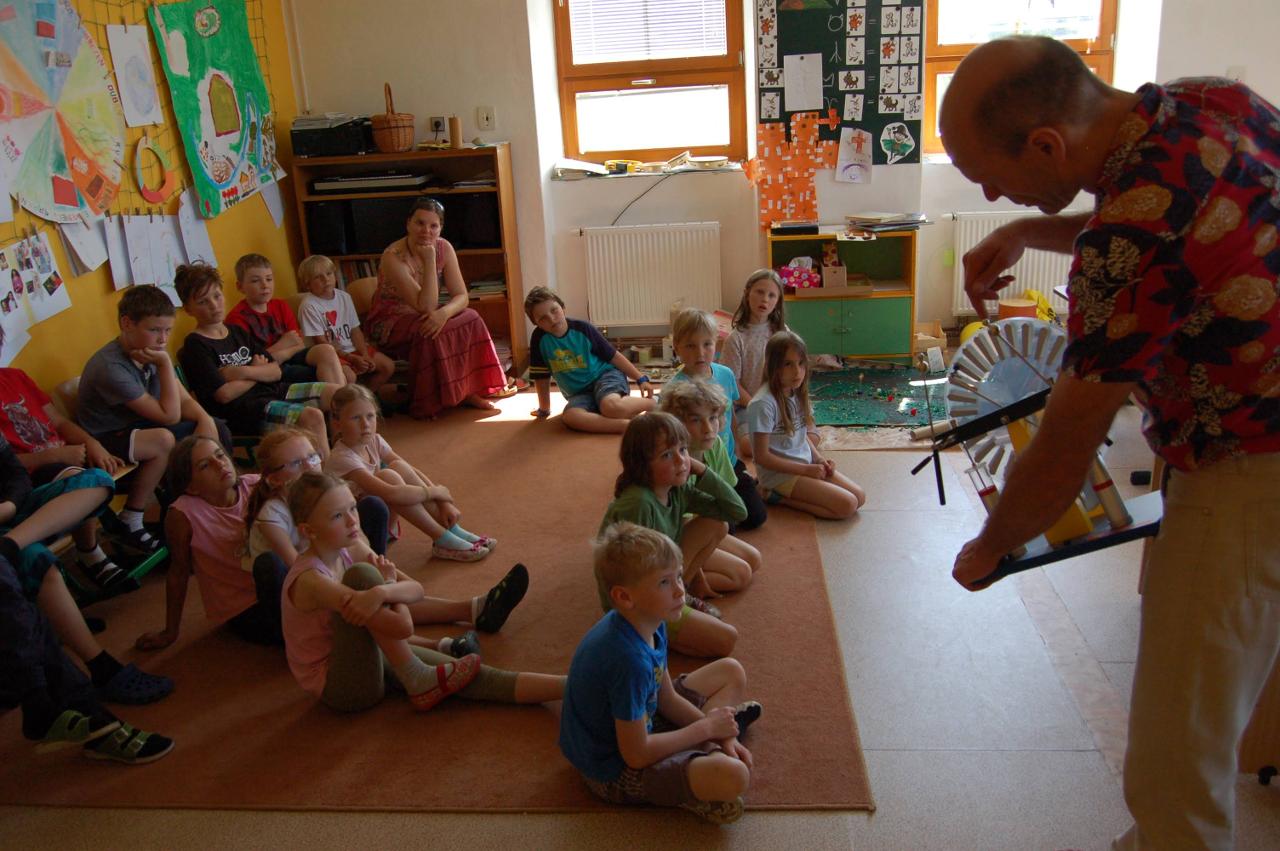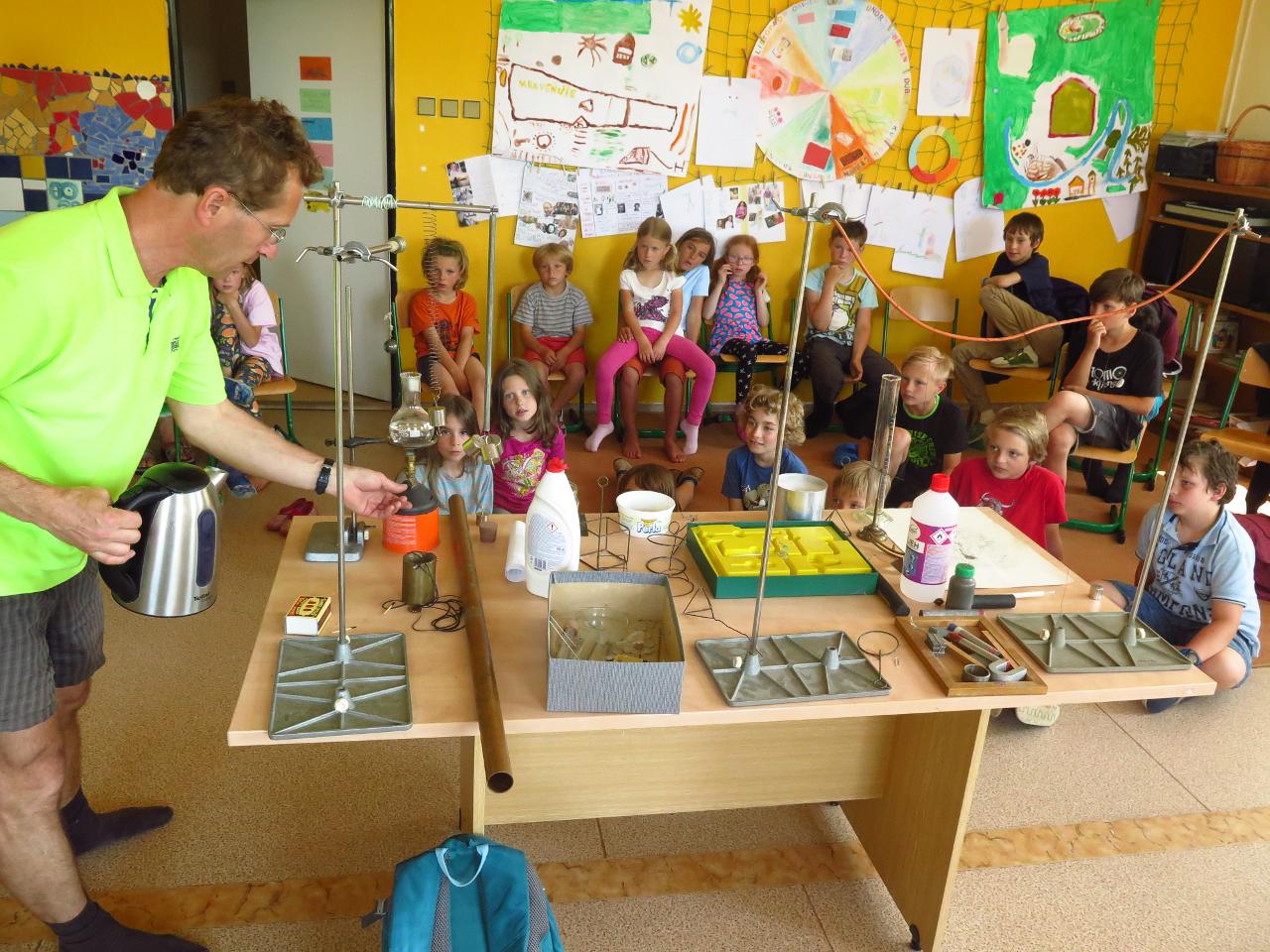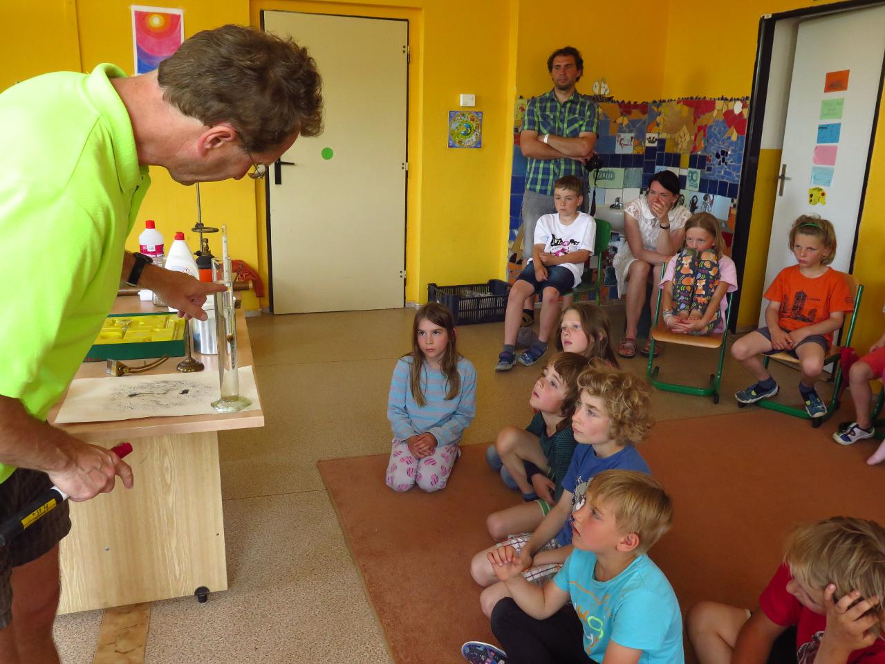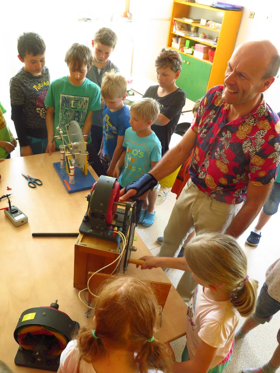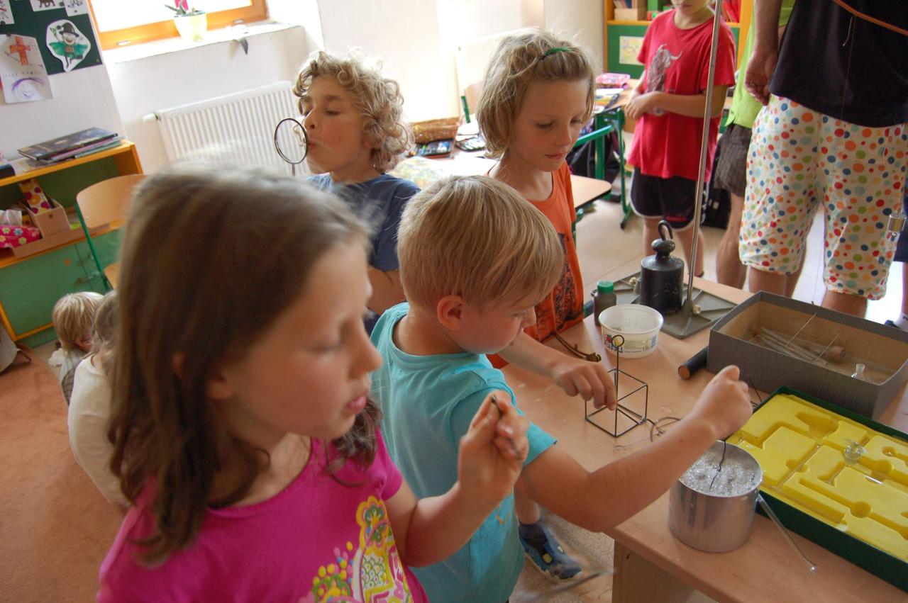 Na dopravní týdny jsme navázali tak potřebnou vědou, která nám díky svým objevům umožňuje rozmanité pokroky. Začátek týdne patřil svátku Mezinárodního dne dětí - školáci se dle své volby věnovali jednotlivým předmětům. V pondělí a v úterý jsme zažili v rámci projektu Lidé kolem nás aneb dospělí dětem fyzikální pokusy s Ondrou Lvem a Liborem Turkem, dvěma tatínky školních dětí vyučujících fyziku na trutnovském gymnáziu. Ukázali nám, jak lze vyrobit elektřinu, co to elektřina je, co nám umožňuje nebo jaké divy se dají dělat s magnetem či závažím. Vše jsme nejen viděli, ale mohli jsme si i vyzkoušet. Ve čtvrtek jsme vyrazili do Prahy - Letňan na Veletrh vědy. Cestou jsme poznávali známé i neznámé české vědce a jejich objevy, na místě jsme na mnoha stanovištích poznali rozmanitosti vědy a mnohé jsme si také vyzkoušeli, například jak se pilotuje letadlo (na simulátoru), jak může jezdit vlak na solární pohon, jak a kde postavit protipovodňovou hráz, aby to lidem pomohlo nebo jak zjistit, z čeho se skládá rostlina a mnoho dalšího z různých oborů. Zažili jsme i pokus, který nám ukázal, jak rozsvítit žárovku citronem nebo jsme zažili rozhovor s akrobatickým letcem Martinem Šonkou. Kromě vědy jsme také začali připravovat zahradní slavnost, programovali jsme, pracovali jsme s vyjmenovanými slovy. V pátek nás Káťa Šímová provedla drátkováním, a tak si každý něco pěkného vytvořil - například srdíčko ozdobené korálky.