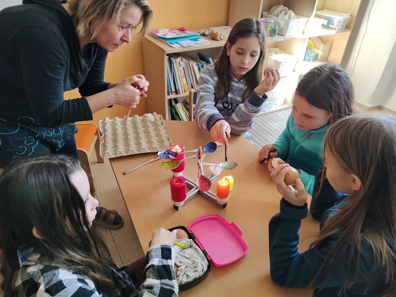 V tento kratší velikonoční týden jsme začali preventivním programem s lektorkou organizace Etické dílny zaměřený na spolupráci a důležitost pravidel, posílení komunikačních dovedností a prevence šikany. Dozvěděli jsme se také co je Květná neděle, co jsou pašije, proč se vlastně zdobí vajíčka. Čtvrtek a pátek nás čekali prázdniny.