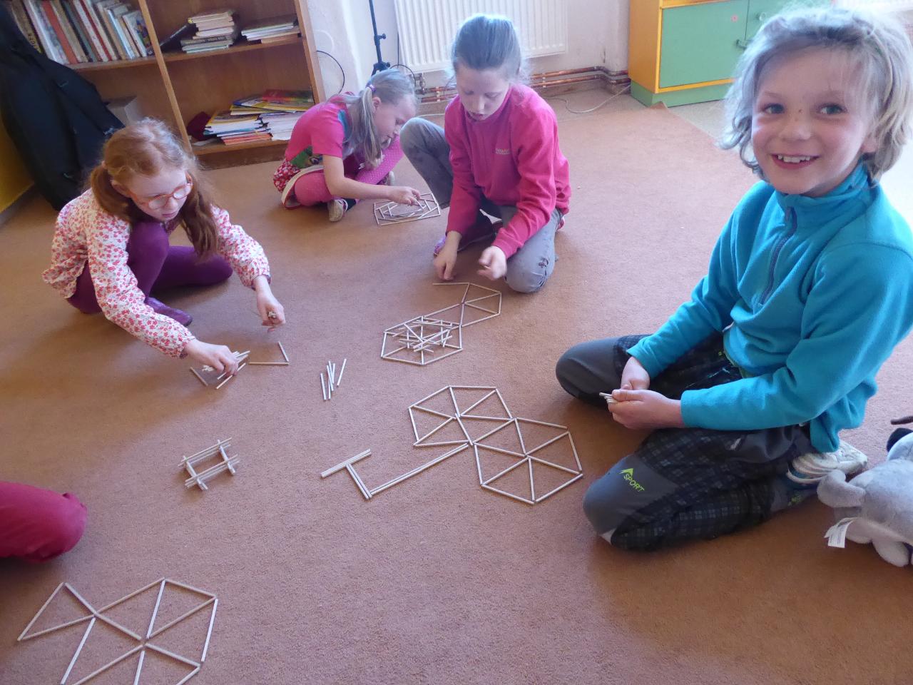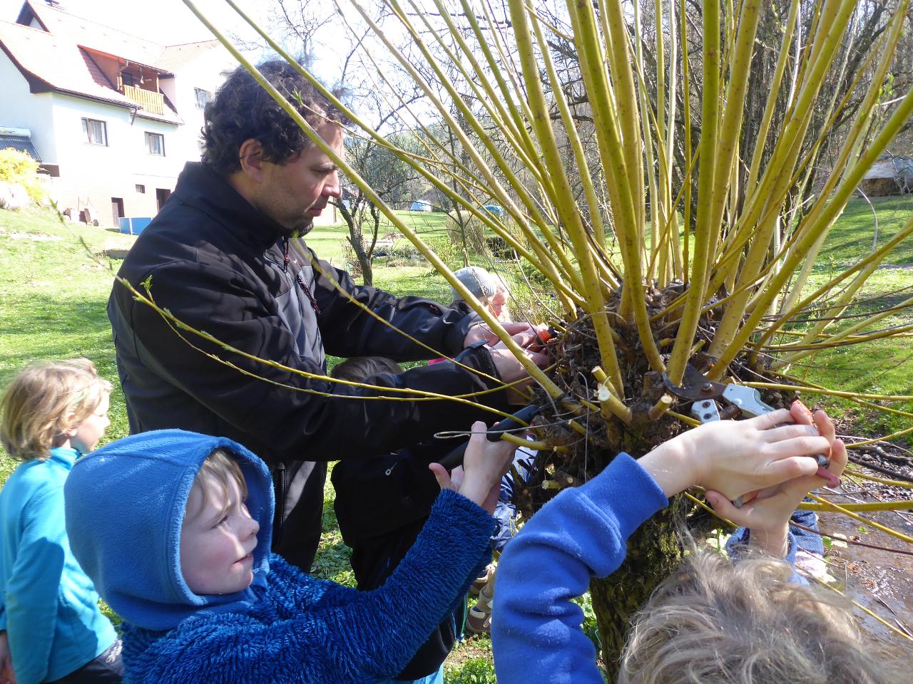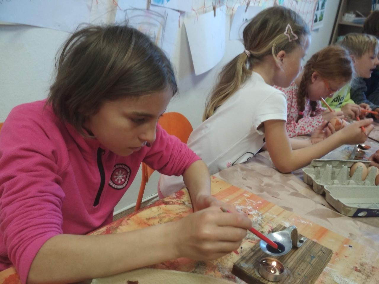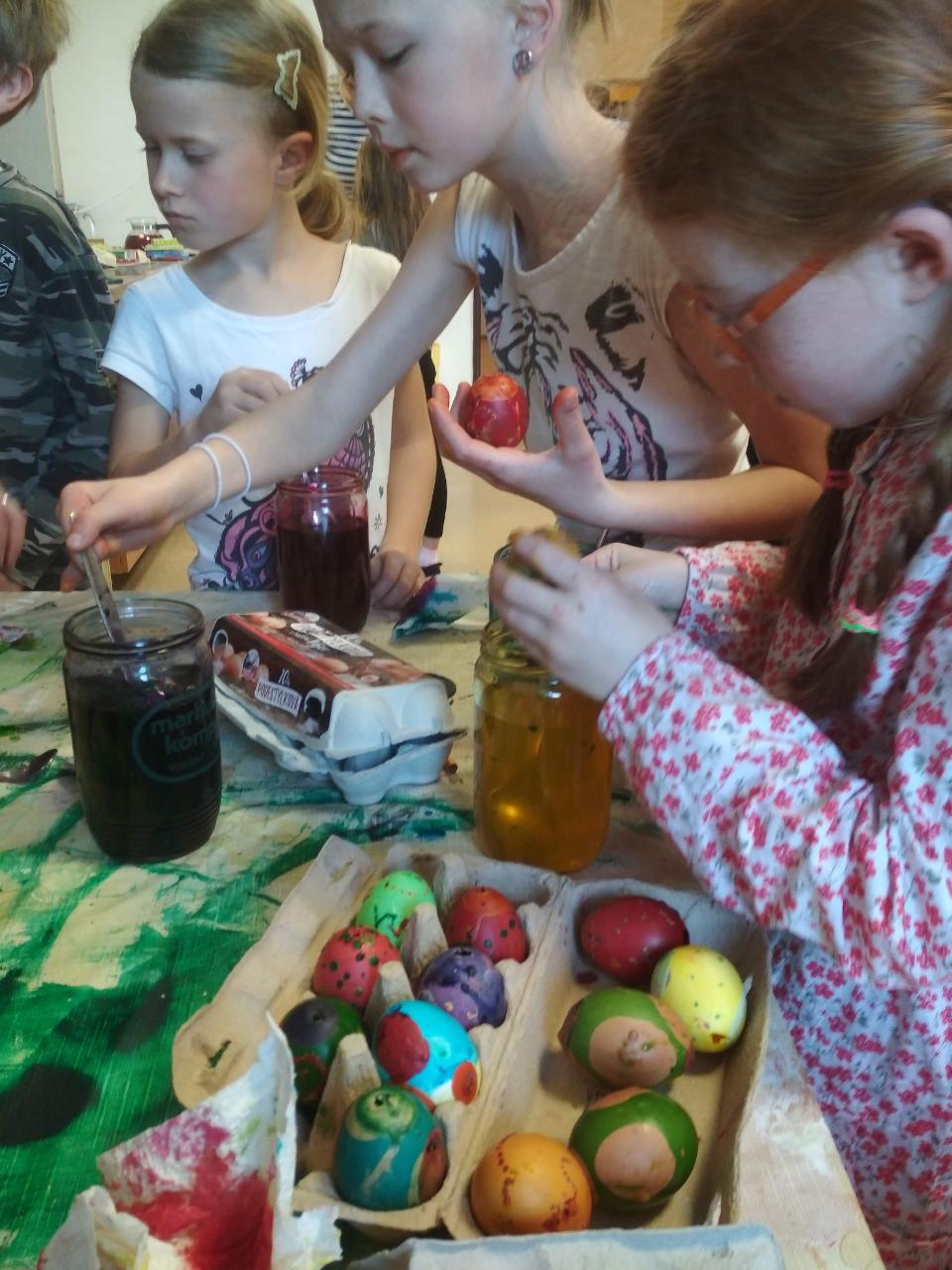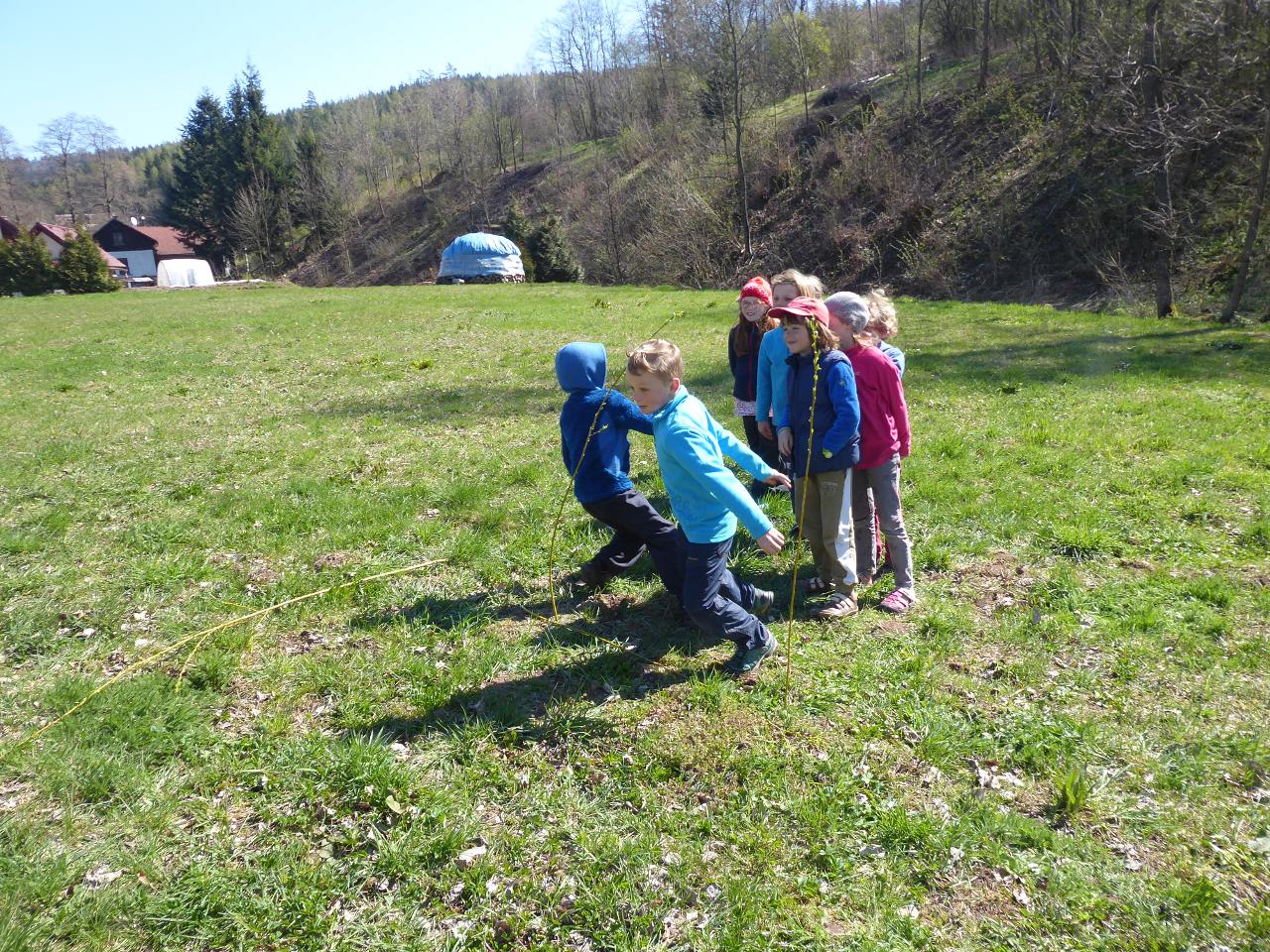 Na téma týdne jsme navázali hnedle v pondělí zrána projektem “Lidé kolem nás aneb dospělí dětem”.Tentokrát si Cyrilova mamka pro nás přichystala tvoření velikonočních kraslic. Vejdunků jsme společně přinesli dostatek, a tak si každý školák mohl vytvořit několik vlastních parádně vyzdobených vajíček. Krátký týden jsme propojili zpíváním i malováním velikonočních koled.Starší zapojili také tanec, který měl minulý týden velký úspěch. A protože se starším školákům líbilo, že ti mladší mohli učit dospěláky, tak si s chutí také přichystali vlastní hodiny angličtiny. Tělocvik nám zpestřila překážková dráha z vrbového proutí, které si předtím školáci nastříhali, a po tělocviku připravili pro středeční velikonoční tvoření. Jak jsme týden začali, také jsme ho i skončili :-) Ve středu odpoledne jsme pokračovali velikonočními tradicemi a vytvářeli z vrbových poutků pomlázky, vrbové domečky, zápichy, ozdobné věnečky z břízek, průsvity do oken nebo voskem malovaná vajíčka.