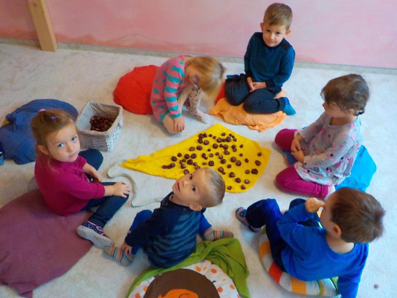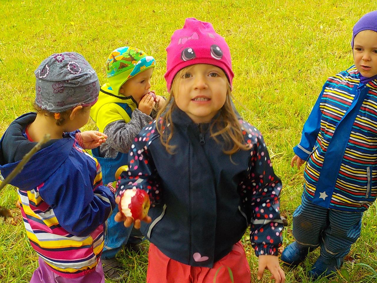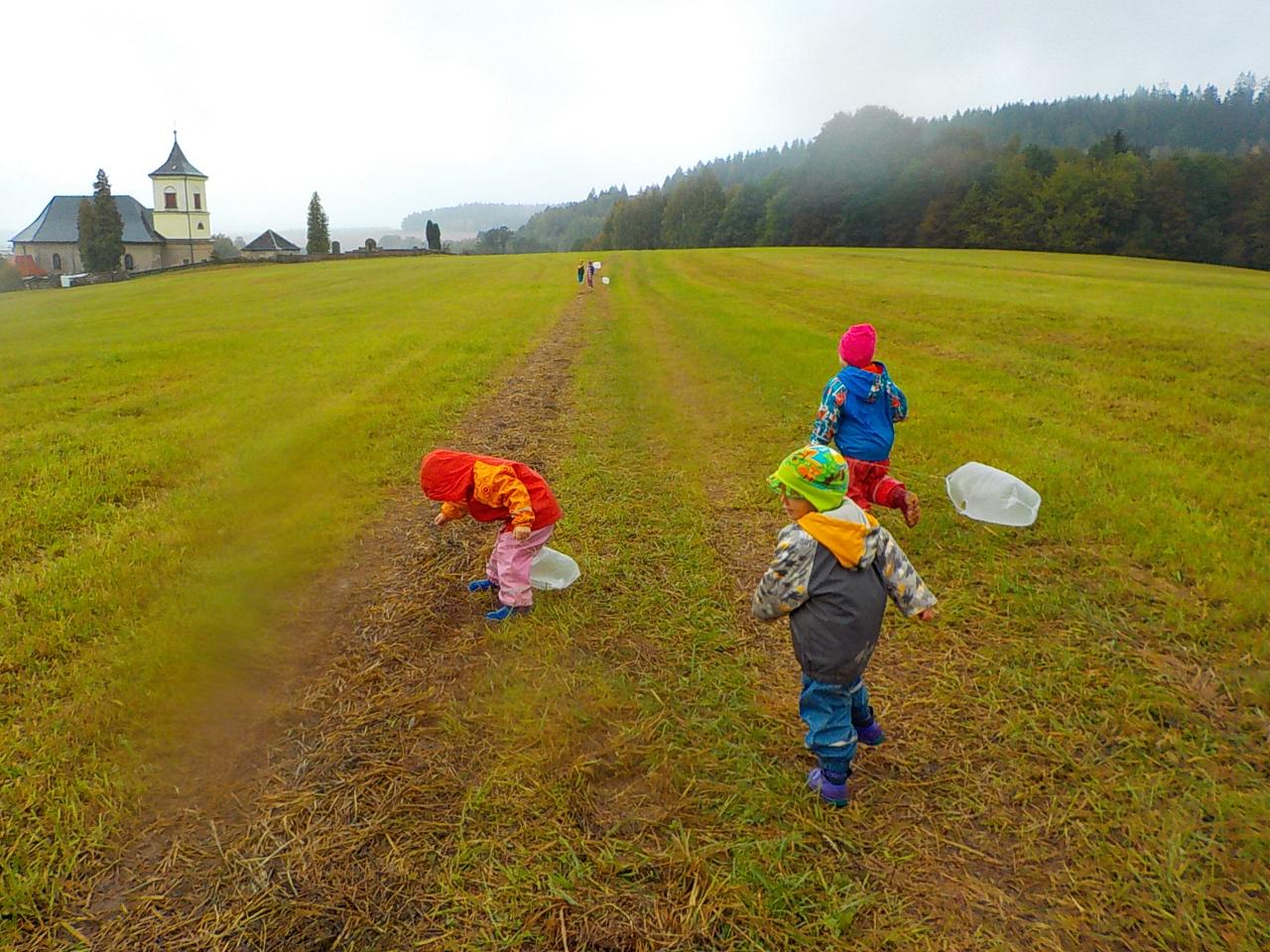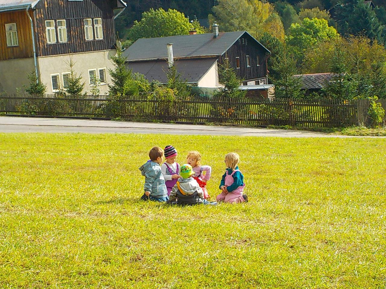 Tento týden byl ve znamení létacích draků a větru. Vyprávíme si pohádku o drakovi nad strání a draka také pouštíme. V Mravenečkovi věšíme nové šátky a závěsy a zkoušíme, jak vlají. Vlají dokonce i igelitové pytlíky na provázku. Draky modelujeme a vystřihujeme a jednoho draka jsme si také ve středu upekli jako pizzu. Také jsme popřáli Beníkovi k narozeninám. A v pátek jsme si vyrobili létací komety, které k létání nepotřebují vítr, jen naši sílu. Jejich dlouhé ohony z krepáku se nám sice ve vlhké trávě dost rozmočily, ale zato se krásně podzimně obarvily (a naše ruce taky :-).
