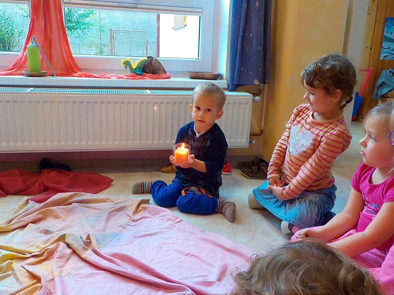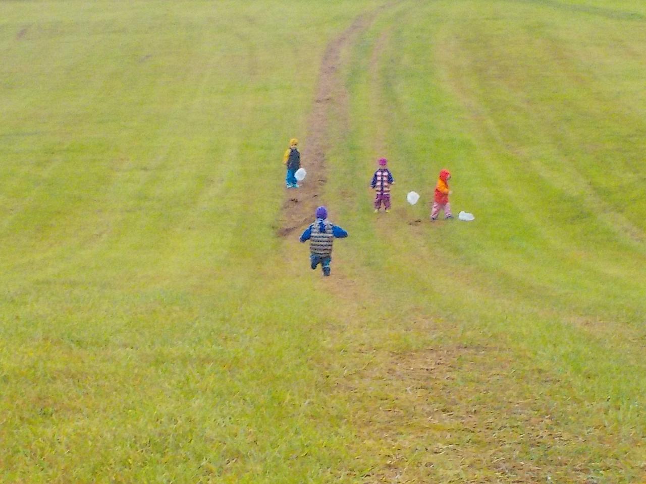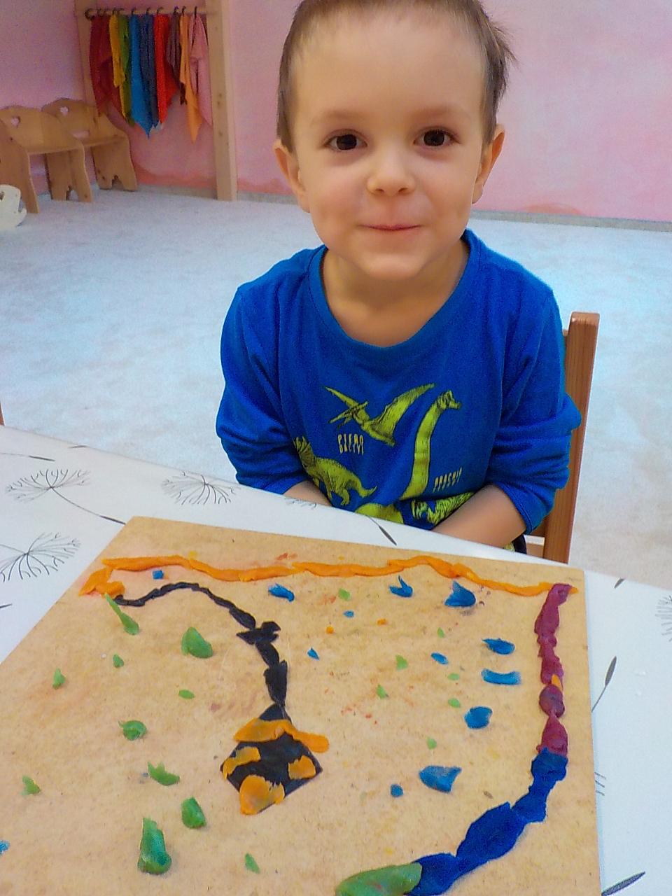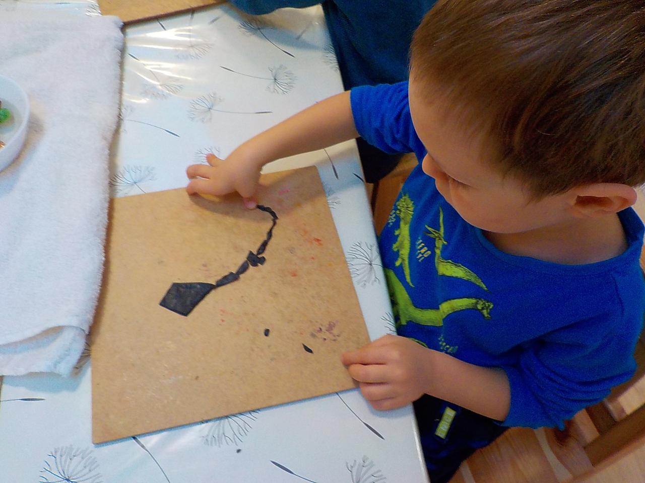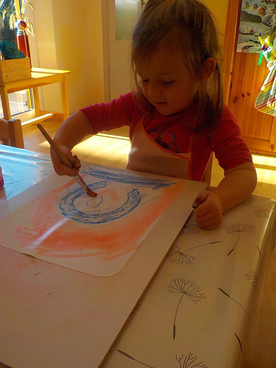 Tento týden byl ve znamení létacích draků a větru. Vyprávíme si pohádku o drakovi nad strání a draka také pouštíme. V Mravenečkovi věšíme nové šátky a závěsy a zkoušíme, jak vlají. Vlají dokonce i igelitové pytlíky na provázku. Draky modelujeme a vystřihujeme a jednoho draka jsme si také ve středu upekli jako pizzu. Také jsme popřáli Beníkovi k narozeninám. A v pátek jsme si vyrobili létací komety, které k létání nepotřebují vítr, jen naši sílu. Jejich dlouhé ohony z krepáku se nám sice ve vlhké trávě dost rozmočily, ale zato se krásně podzimně obarvily (a naše ruce taky :-).