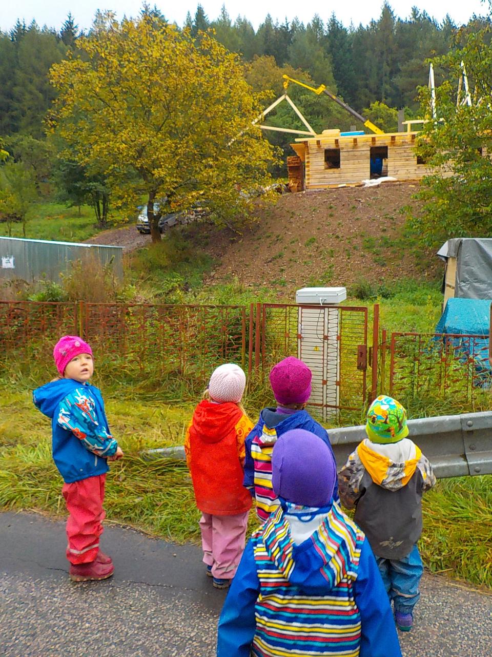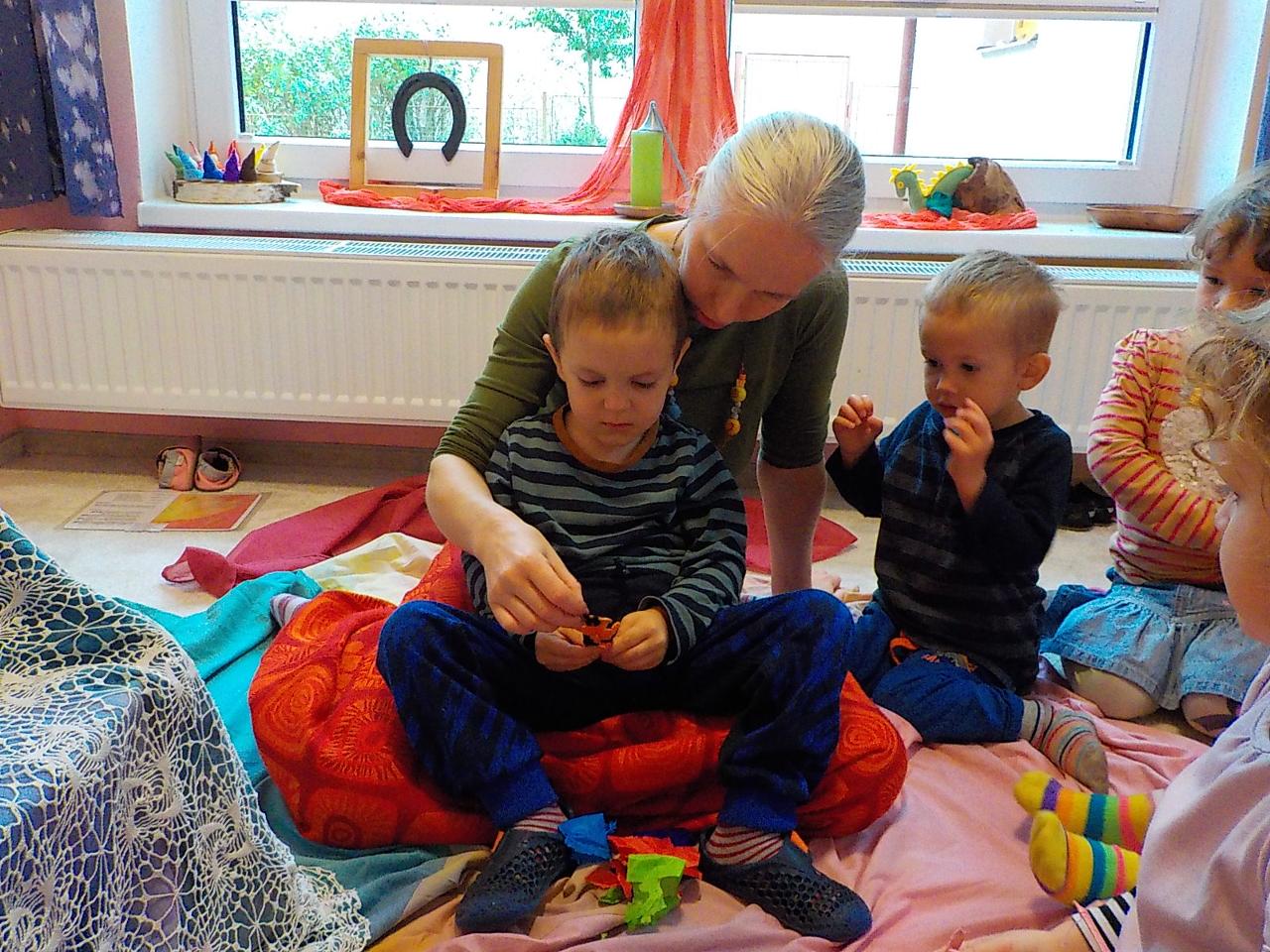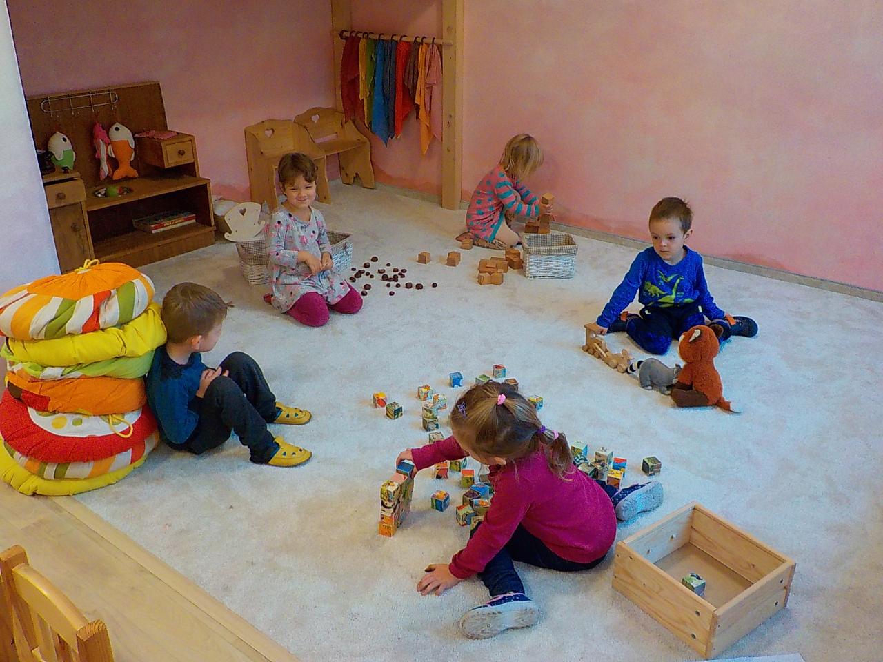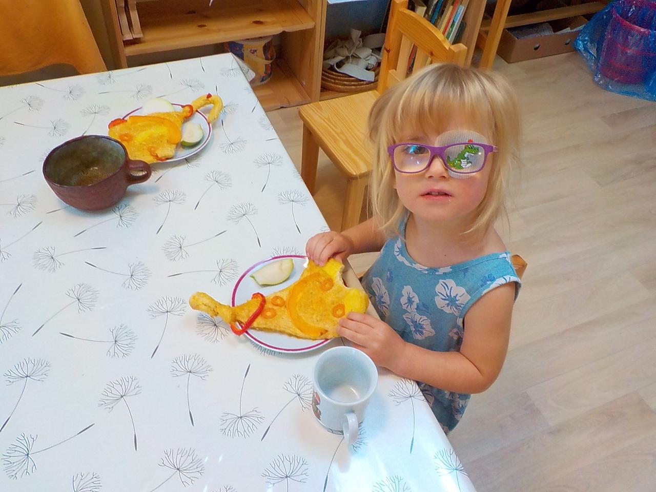 Tento týden byl ve znamení létacích draků a větru. Vyprávíme si pohádku o drakovi nad strání a draka také pouštíme. V Mravenečkovi věšíme nové šátky a závěsy a zkoušíme, jak vlají. Vlají dokonce i igelitové pytlíky na provázku. Draky modelujeme a vystřihujeme a jednoho draka jsme si také ve středu upekli jako pizzu. Také jsme popřáli Beníkovi k narozeninám. A v pátek jsme si vyrobili létací komety, které k létání nepotřebují vítr, jen naši sílu. Jejich dlouhé ohony z krepáku se nám sice ve vlhké trávě dost rozmočily, ale zato se krásně podzimně obarvily (a naše ruce taky :-).