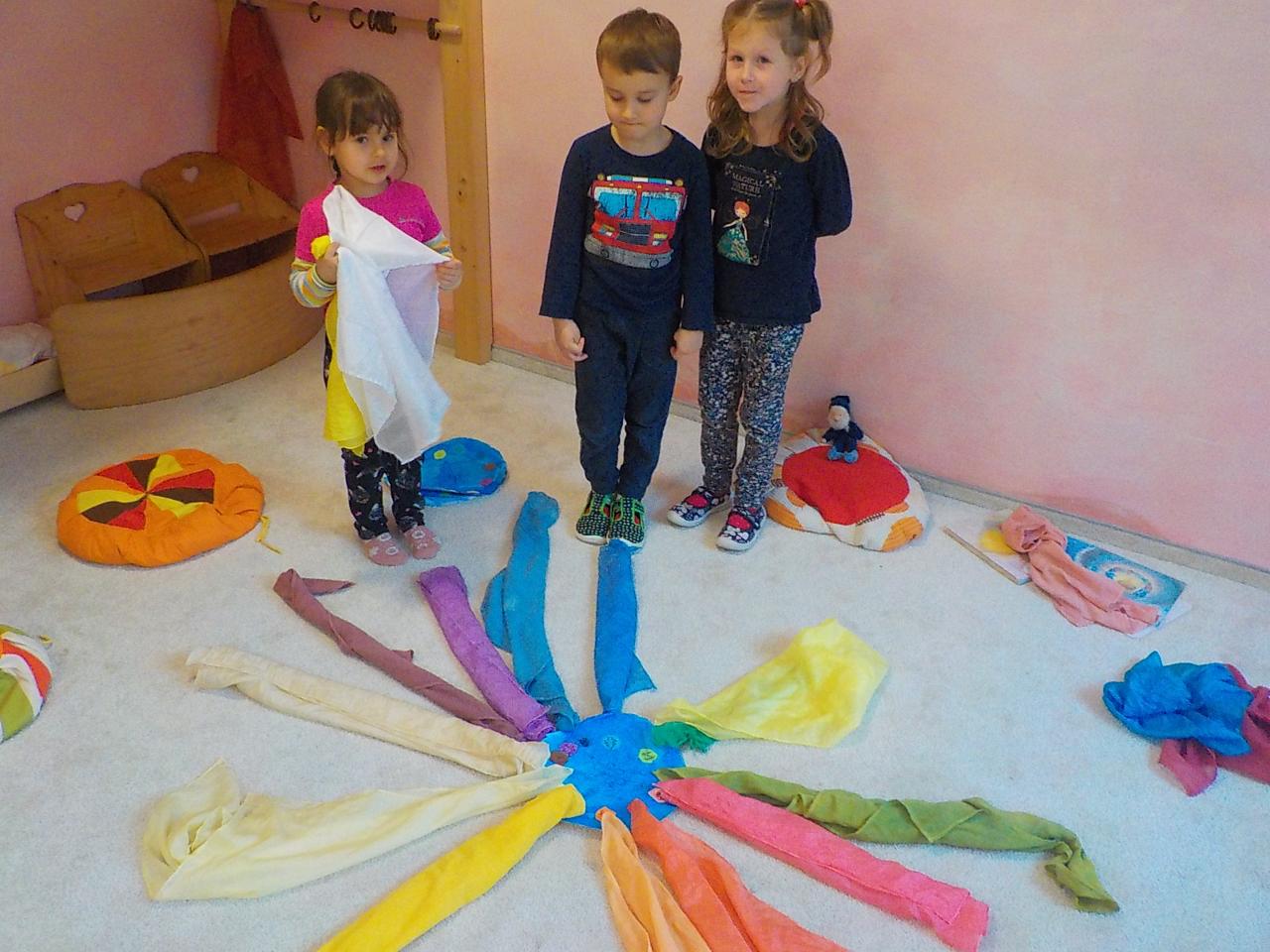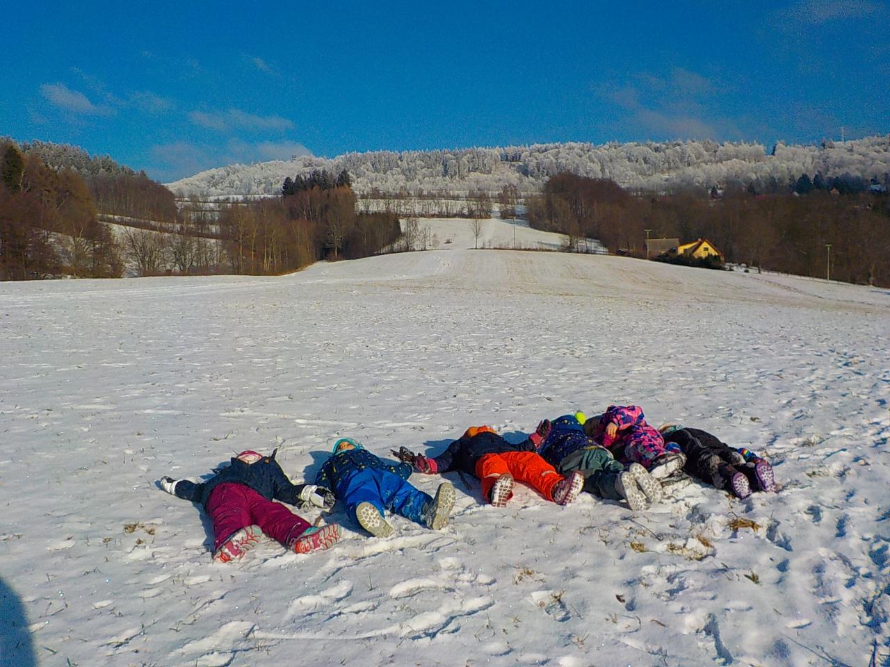 "12 je měsíců a každý z nich jinou čepici nosí..." znělo Mravenečkem v tomto týdnu. Kouzelné kolo roku se znovu roztáčí, pohádka o 12 měsíčkách nás provází setkáváme se s odvážnou a milou Maruškou a zlostnou Holenou. Malujeme fialky ve sněhu, vyrábíme kolo roku a fanfrnoch - hrajeme na něj a zpíváme, modelujeme vatru a 12 kamenů okolo. Měsíc leden se projevuje v celé své kráse - mrzne až praští, led na rybníčku nabízí skvělé klouzání, sníh vede k výzvám - třeba dostat velkou kouli po schodech nahoru, pozorujeme krystalky ledu, vyhříváme se na sluníčku, píšeme anděly do sněhové přikrývky, kloužeme se, rozbíjíme led, a užíváme ten svěží vzduch.