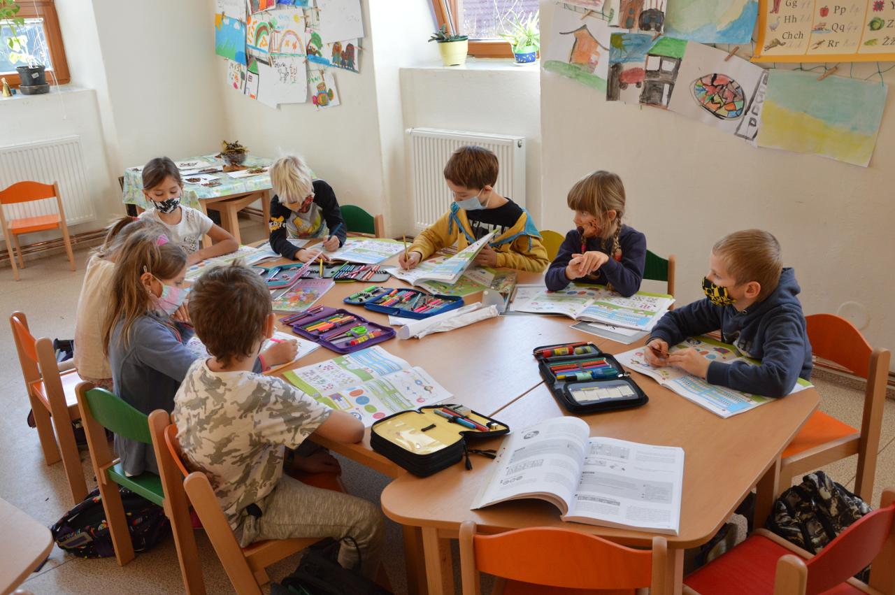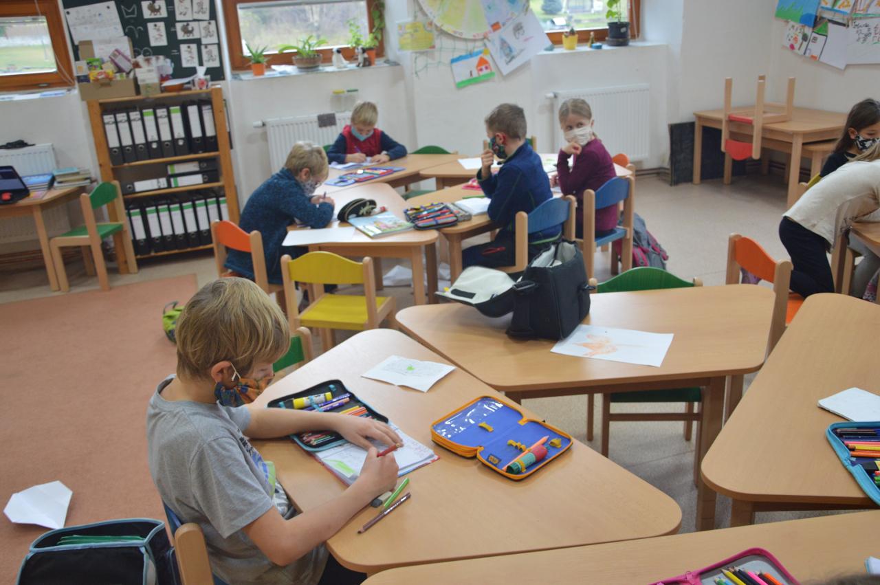 Mezitím starší třída čtvrťáků, páťáků a šesťáků pokračovala ve výuce na dálku v online hodinách a samostatné práci. Většině se naštěstí daří dobře spolupracovat a jsme rádi, že se vidíme několikrát týdně alespoň tímto způsobem. Nejvíce se ale těšíme, až se budeme moci potkávat opět ve škole.