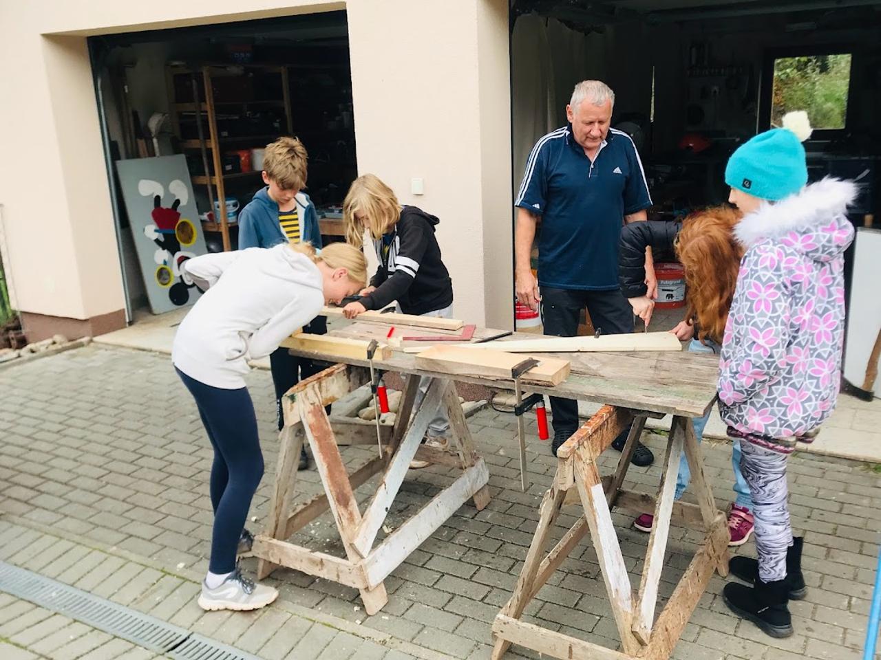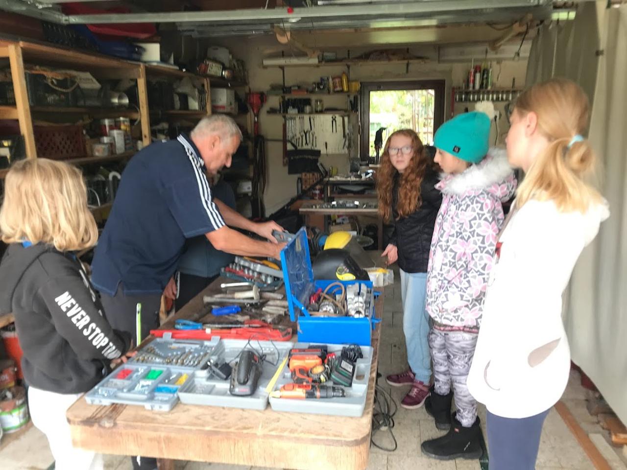 V rámci družiny jsme navštívili Pepu Dvořáka a jeho garáž plnou zajímavých, truhlářských pomůcek.