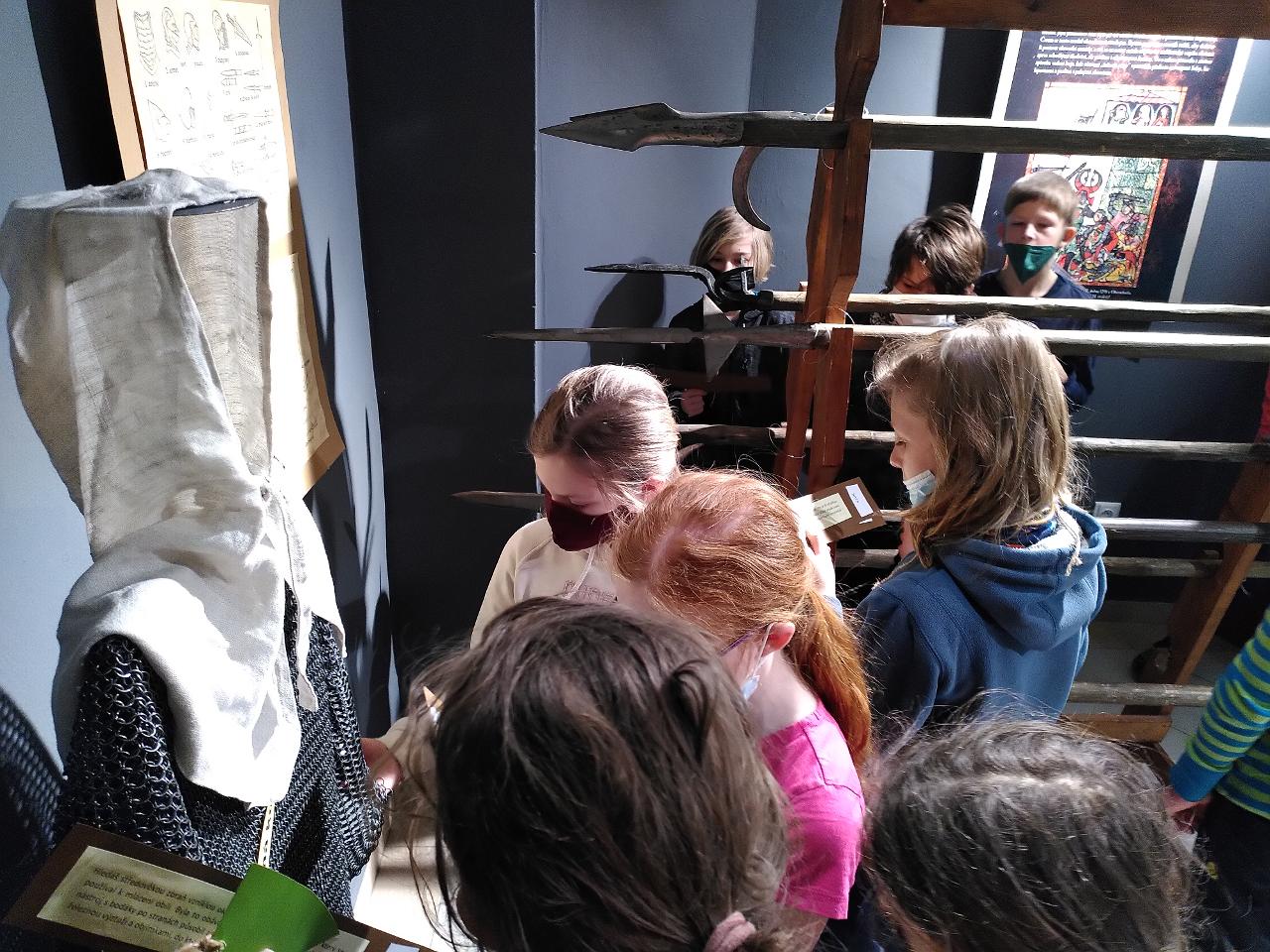 Středověk nás provázel i tento týden. Vydali jsme se na delší cestu do České Třebové. Přestupní stanicí byly nejen Pardubice, kde jsme se setkali poprvé se jménem Jan Perner, který nás provázel nenápadně celým dnem. A kdo že to byl? Projektant a stavitel železnic. Díky němu se vlakem do České Třebové jezdí více než 170 let. Z vlaku jsme viděli i místo, které se mu stalo osudným a to již dnes neexistující nejstarší železniční tunel v Chocni. V České Třebové jsme navštívili nejprve Městské muzeum s interaktivní výstavou středověku. Vyzkoušeli jsme si, jak se mohli naši předci cítit na bitevním poli, nejen brnění, ale i zbraně. V další části jsme se poučili o historii a příbuznosti vládců. Zjistili jsme, čím se tak mohl živit kokotář, pregéř nebo bába dračka apod. Čas byl neúprosný a tak jsme rychle vyběhli na jedinou dochovanou východočeskou románskou rotundu svaté Kateřiny. Rotunda byla několikrát přestavěna, někdy až necitelně, přesto na nás dýchla pravým středověkem. Zde jsme se rozloučili s naší průvodkyní a vydali se na cestu zpět, opět s několika přestupy, které jsme využili nejen na pozorování přírody, ale i čtením o Přemyslovcích.