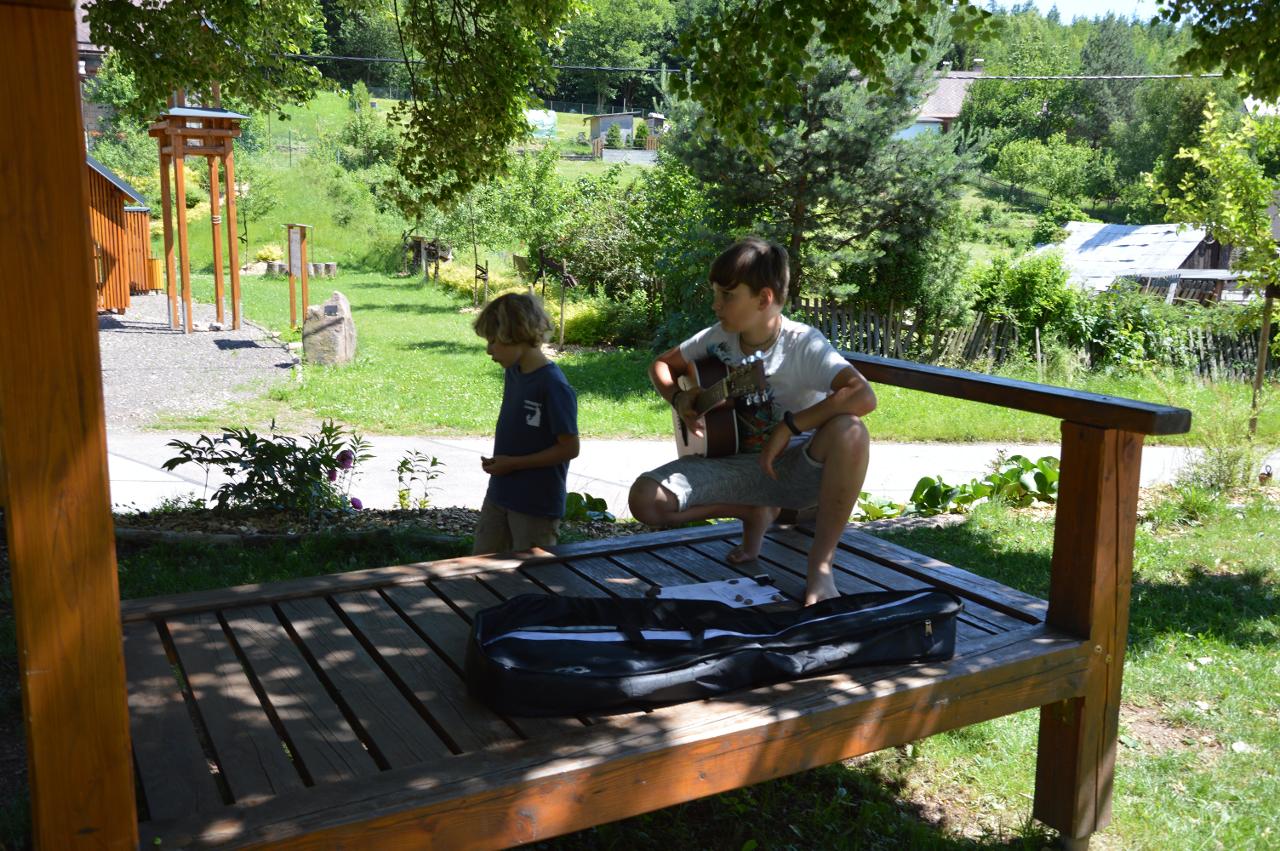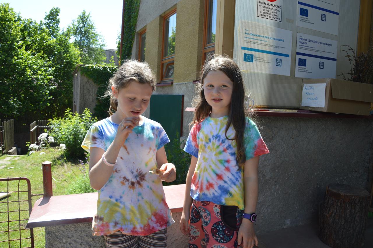 Závěrečný týden jsme žili především přípravou představení na zahradní slavnost, kde školáci zazpívali a pomocí scének ukázali, co během roku zažili - od týdne svobody v Praze na Národní třídě přes ponoření se do vesmíru až po výuku na dálku během koronavirového období. Také jsme neopomněli připomenout prožitky z putování po stopách 2.světové války. Poslední dny školního roku jsme věnovali úklidu školy, dokončovali jsme batikování triček a poslední den jsme si užili sdílením radostí při předání vysvědčení a při společných svačinkových hodech.