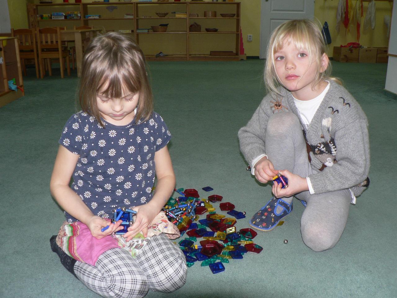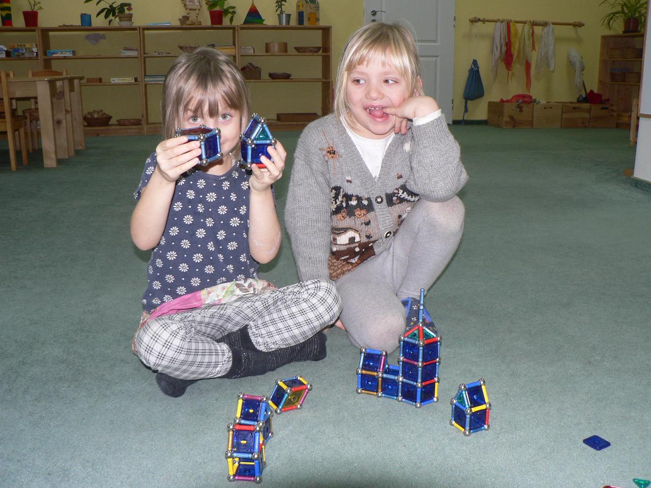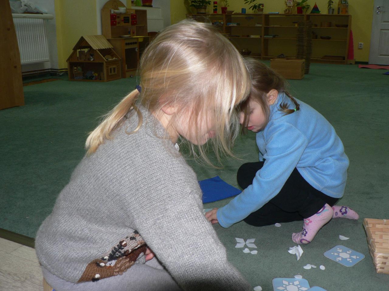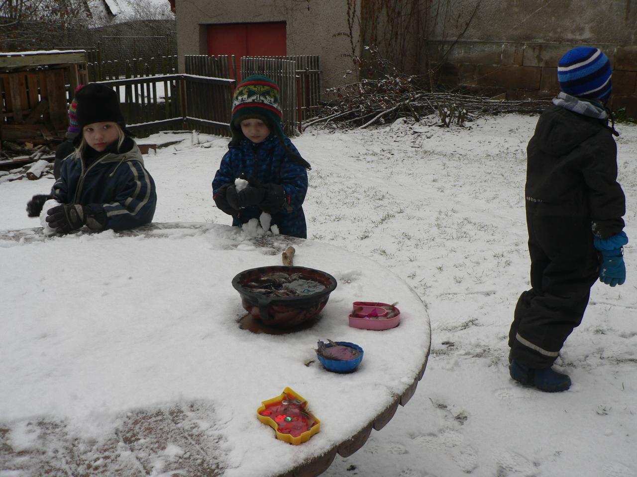 Týden s pohádkou "Dva mrazíci" nás zavedl do království ledu a mrazu. Pozorovali jsme čarování zimy a mrazu na stromech, které byli v pondělí plné jinovatky a na procházce lesem jsme si připadali jako v kouzelném zimním království. S vodou jsme si také hráli a zkoušeli, co se stane, když v zimě zůstane v miskách venku, co všechno může ve vodě zamrznout a jak to dopadne, když zvenku přineseme misky se zmrzlou vodou zpět do tepla. Skládali jsme sněhové vločky z různých tvarů a pracovali jsme také se stavebnicí Geomag. Venku jsme si užívali napadaného sněhu, klouzali se, koulovali, někteří zkoušeli postavit malé sněhuláčky anebo dělat ve sněhu andělíčky. Zjistili jsme také, že na mráz platí pohyb a že se pohybem venku můžeme zahřát tak, že si na nás jen tak nějaký mráz nepřijde.