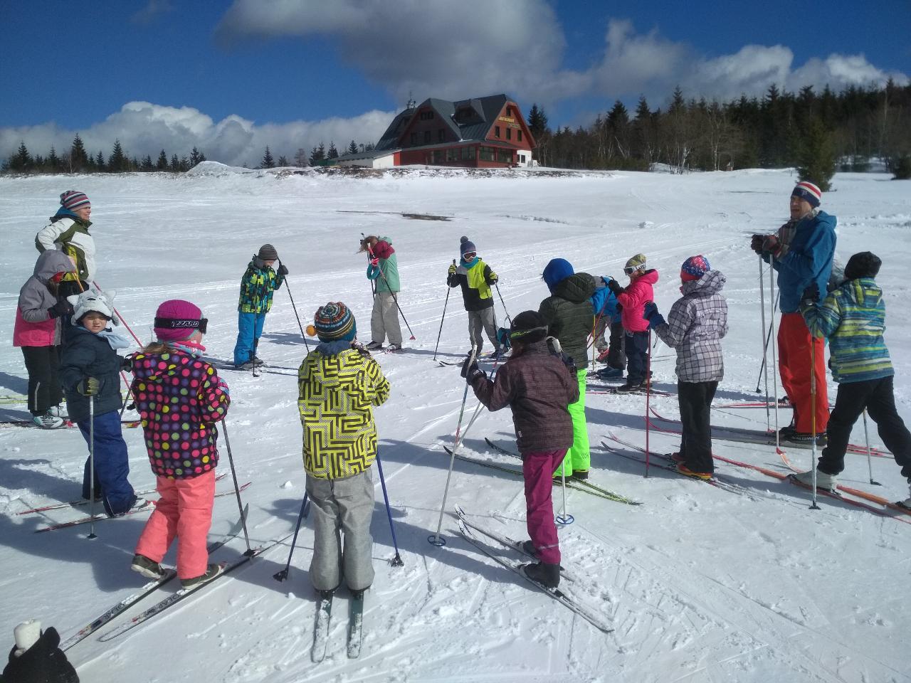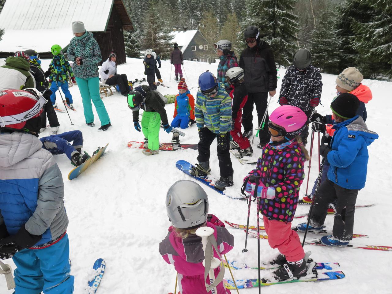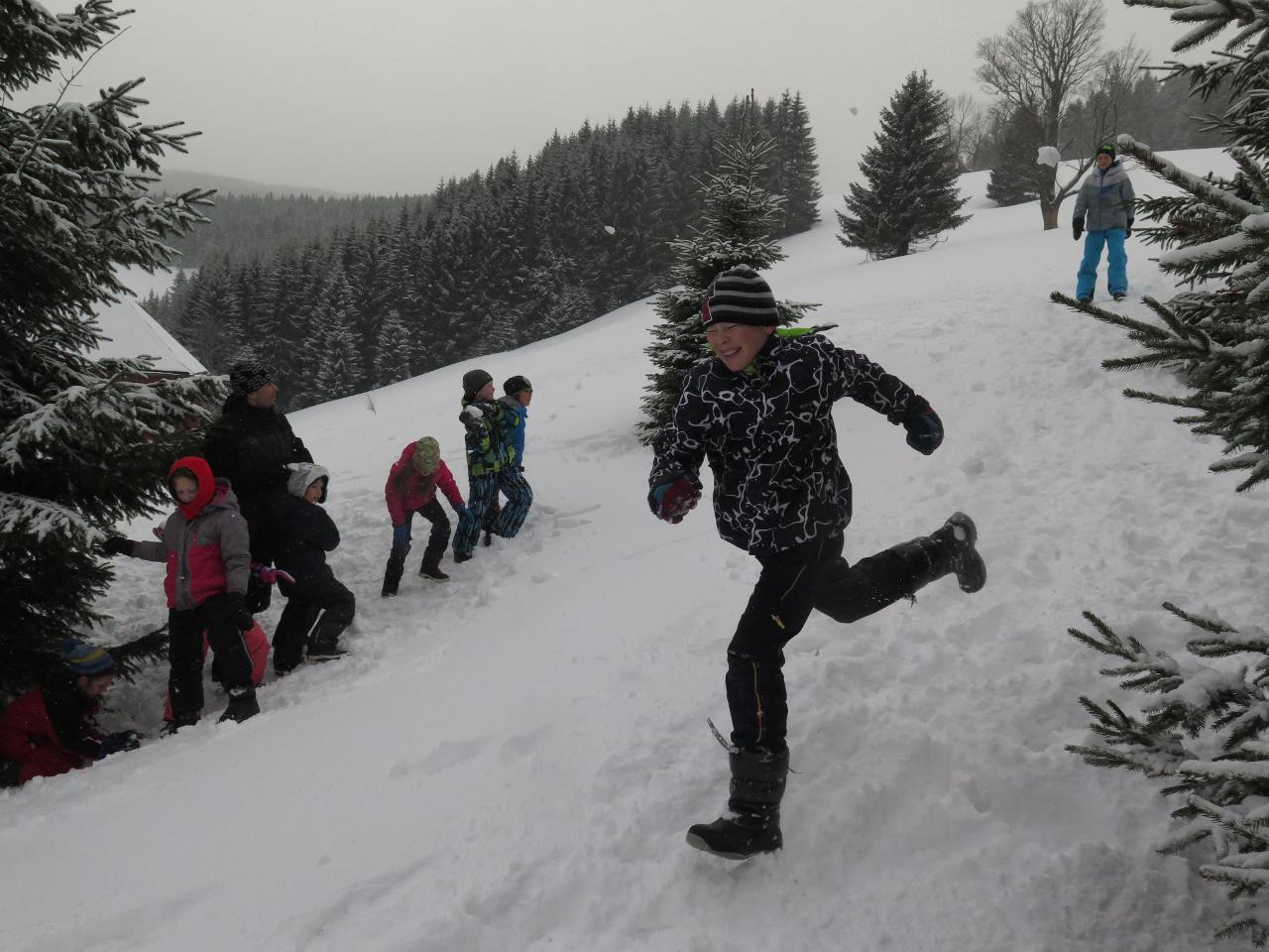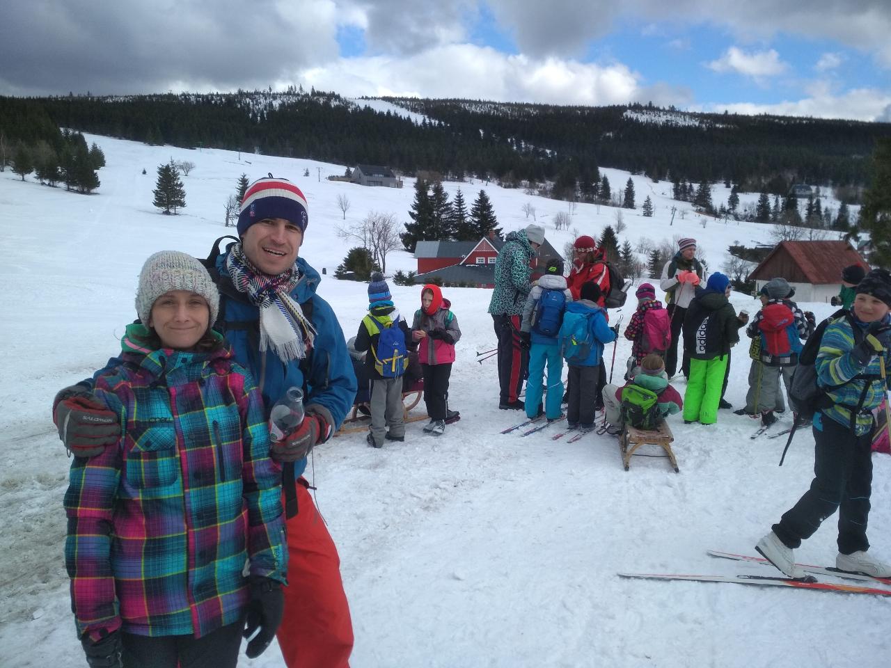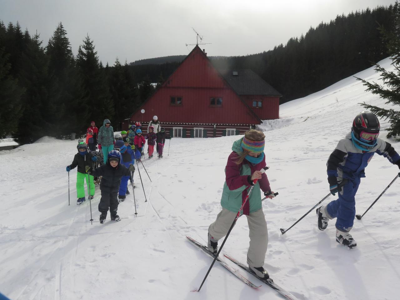 Polovina března mravenčí škole přinesla týden v zimních Krkonoších. Vypravili jsme se na chatu FTVS v Horní Malé Úpě. Zažili jsme spoustu radostí na sněhu u chaty, v jejím blízkém i vzdáleném okolí. Společně jsme si vařili i jsme hráli hry v jídelně vytopené krbem. Během pěti dnů si školáci mohli vyzkoušet různorodé zimní sporty - běžky, sjezdovky, snowboard, sáňky nebo jízdu tobogánem. Využívali jsme nejbližší okolí chaty k rannímu proběhnutí a pozdravení sněhu a slunce. Dále k prvním obloukům na snowboardu, rychlým tobogáno jízdám nebo ke skluzu na běžkách. Přes les jsme pak stoupali k malé pomičce, kterou jsme využívali na sjezdové lyžování. Rozmanitý terén nabízel možnosti i těm, kteří si tento sport zkusili poprvé, i již zdatným sjezdařům.
