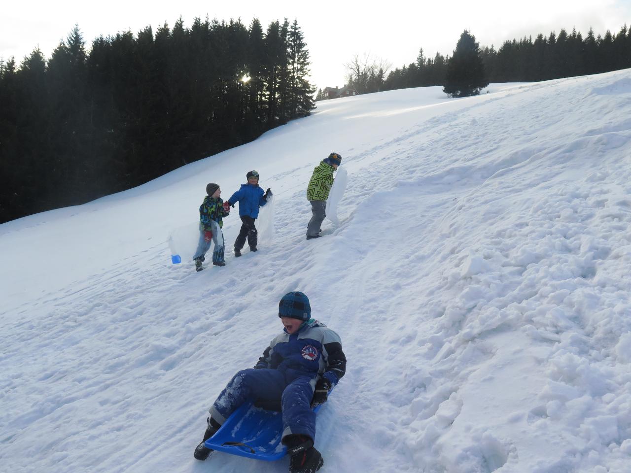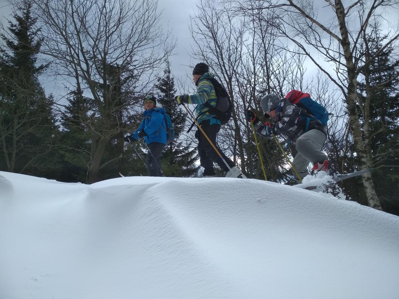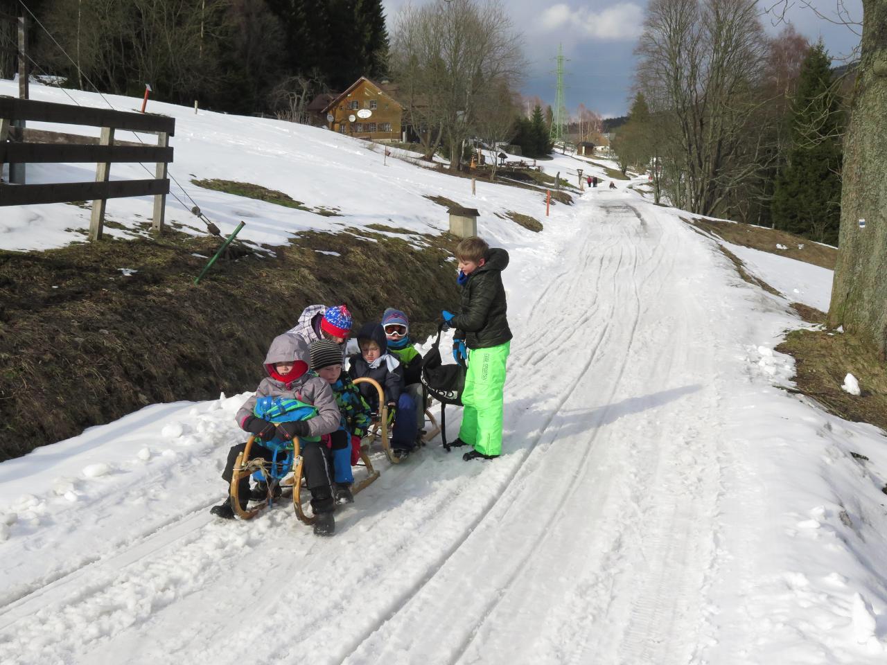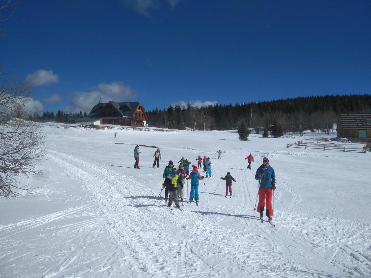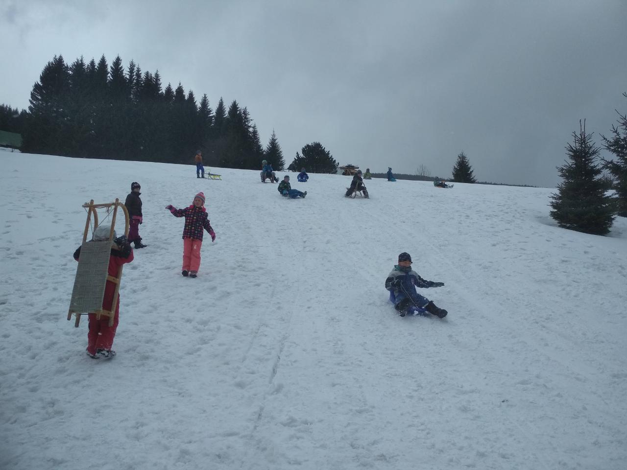 Polovina března mravenčí škole přinesla týden v zimních Krkonoších. Vypravili jsme se na chatu FTVS v Horní Malé Úpě. Zažili jsme spoustu radostí na sněhu u chaty, v jejím blízkém i vzdáleném okolí. Společně jsme si vařili i jsme hráli hry v jídelně vytopené krbem. Během pěti dnů si školáci mohli vyzkoušet různorodé zimní sporty - běžky, sjezdovky, snowboard, sáňky nebo jízdu tobogánem. Využívali jsme nejbližší okolí chaty k rannímu proběhnutí a pozdravení sněhu a slunce. Dále k prvním obloukům na snowboardu, rychlým tobogáno jízdám nebo ke skluzu na běžkách. Přes les jsme pak stoupali k malé pomičce, kterou jsme využívali na sjezdové lyžování. Rozmanitý terén nabízel možnosti i těm, kteří si tento sport zkusili poprvé, i již zdatným sjezdařům.