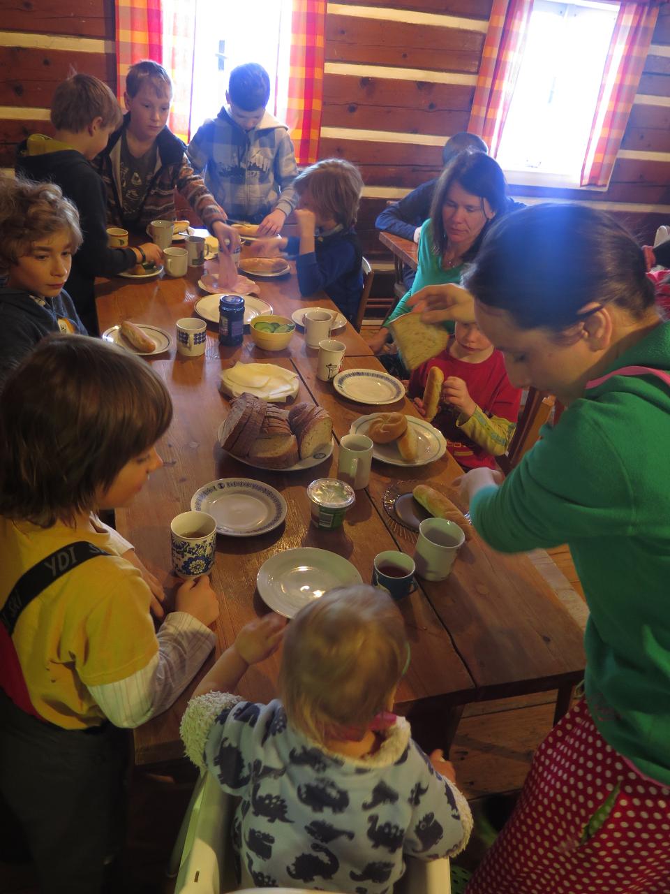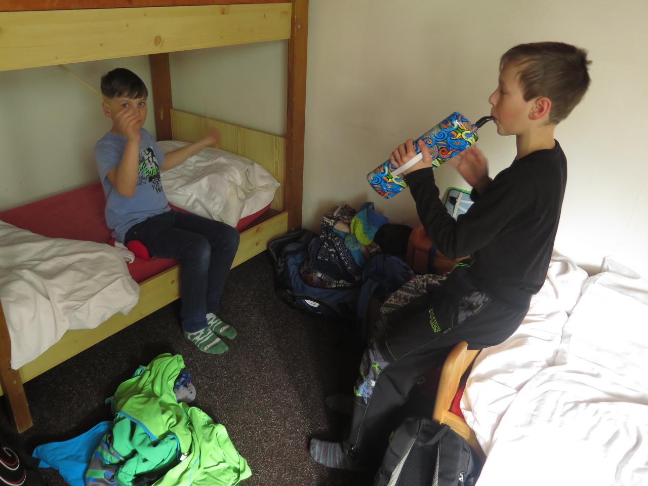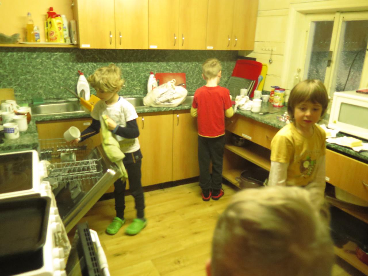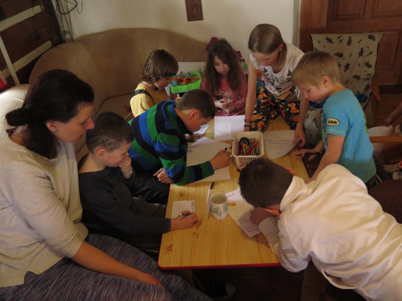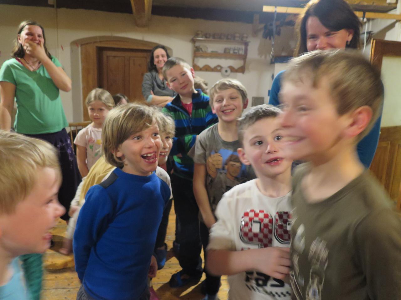 Navštívil nás také Olda z Horské služby, dozvěděli jsme se mnoho ze života záchranáře, viděli i zkusili jsme si vybavení, které využívá, když pomáhá lidem, například nafukovací dlahu. Kromě fotek a mnoha slov o skútrech, lavinách nebo vybavení jsme si i v terénu zkusili, jaké je to hledat předmět zasypaný sněhem pomocí lavinového pípáku! Během celodenního výletu na Pomezky a k maloúpskému kostelíku jsme se podívali i přímo na stanici horské služby! Večer jsme pak zažili poučné dobrodružství Hanče a Vrbaty prostřednictvím filmu Synové hor. Na závěrečné odpoledne a večer přijeli i rodiče, zažili jsme s nimi různé hry venku i vevnitř.