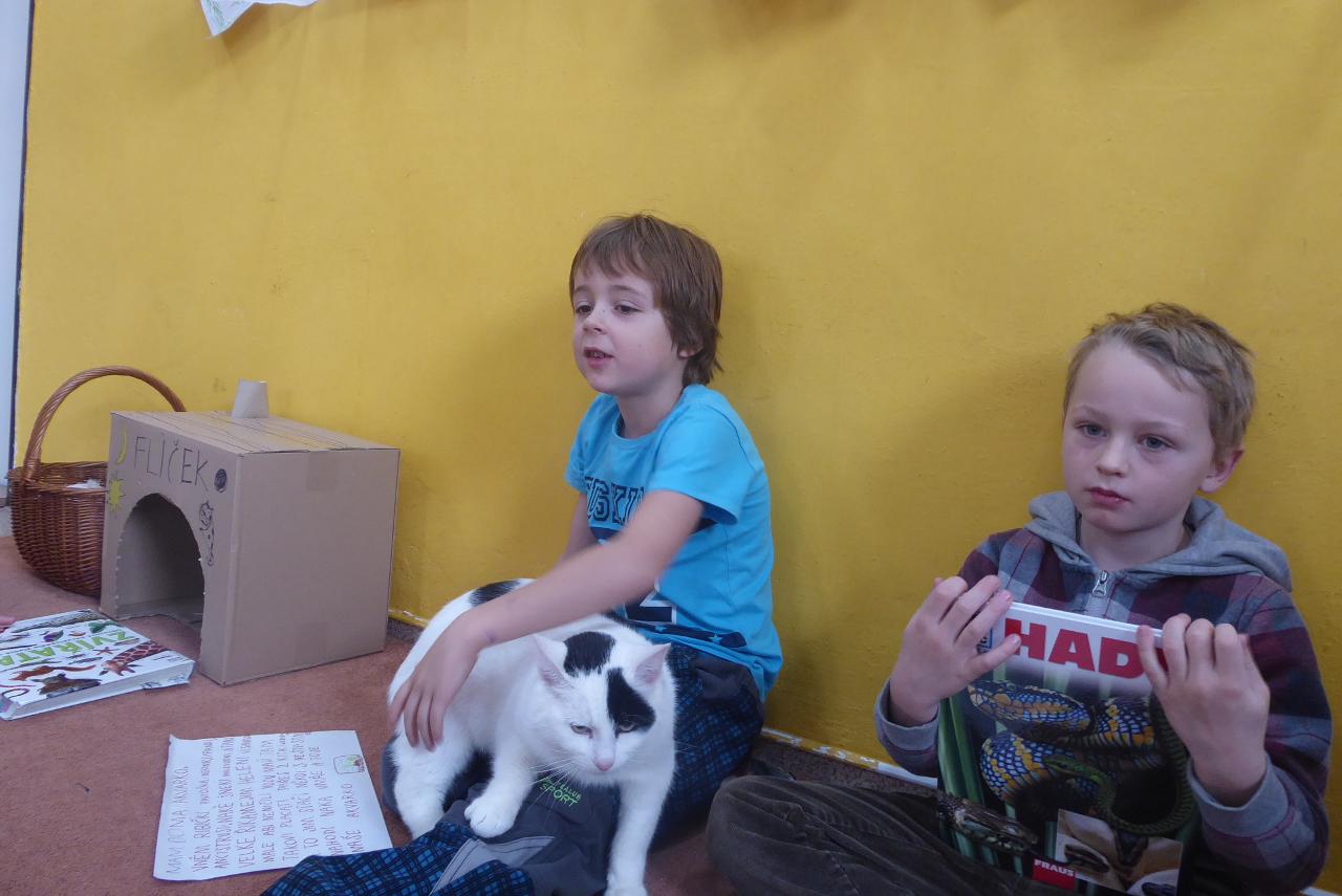 Zvířátkový týden si v nápadníčku přáli mladší školáci, tak jsme si ho dopřáli :) Hned v pondělí jsme objevovali, jaká zvířata jsou teď v tomto chladném období kolem nás - v lese, na poli, u vody či ve vzduchu. Také jsme naplnili krmítko před školou slunečnicovými semínky pro ptáčky, kteří si na nich v zimě pochutnávají. Těšíme se, až je budeme pozorovat. Zvířátka nám nechyběla ani při výuce matematiky nebo třeba v českém jazyce při vyprávění a hraní pohádky o koblížkovi. Také děti v průběhu týdne nosily rozmanité knihy o zvířatech a celé téma jsme završili pátečními prezentacemi o domácích mazlíčcích. Někteří byli s námi ve třídě i naživo, takže jsme se mohli pomazlit s kočičkami, křečkem i králíčkem. Na zvířátka se přišli podívat i školkáčci. Během celého týdne jsme se naučili mnoho o tom, jak různá zvířata žijí a jak o ně můžeme pečovat.