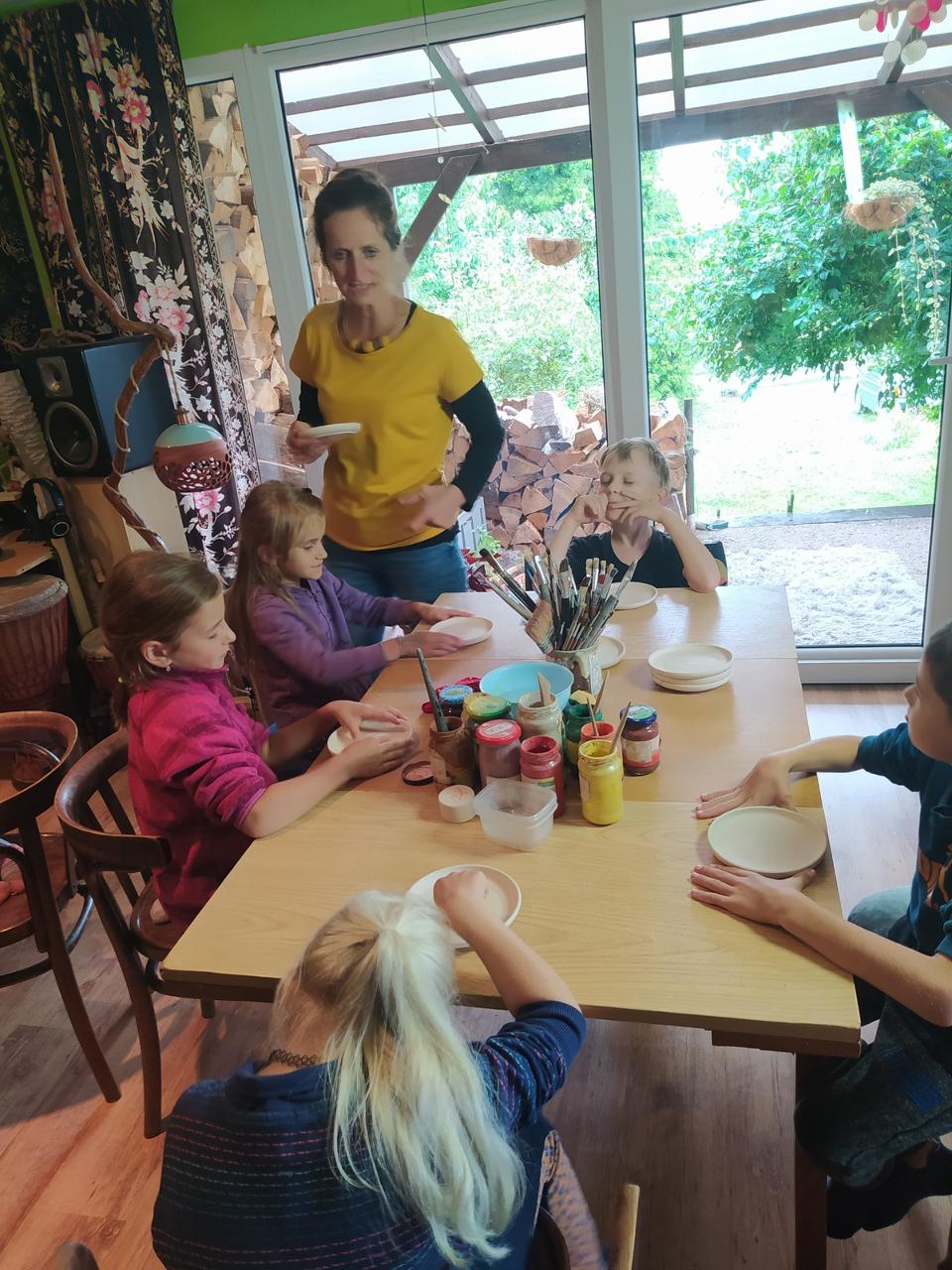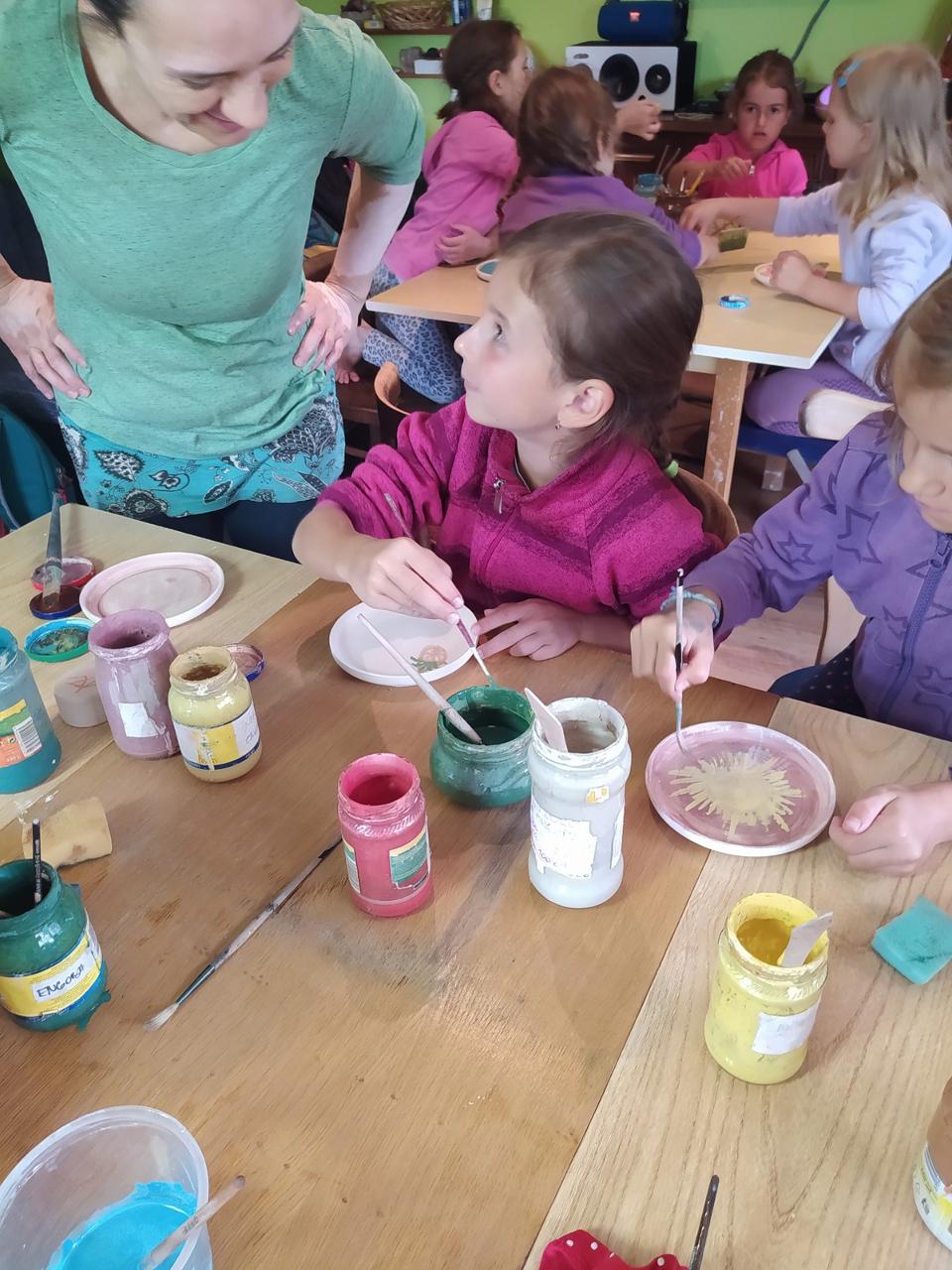 Kliky byly jednou ze součástí našich veselých ranních rozcviček. Kliku jsme měli, když jsme úspěšně kličkovali mezi slunečným a deštivým počasím, třeba při cestě do keramické dílny Takafajna keramika v Markoušovicích, abychom si tam namalovali každý svůj talířek.