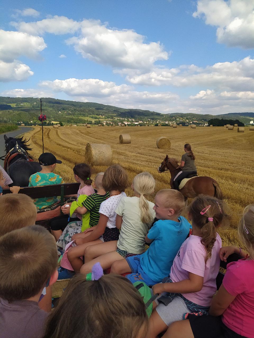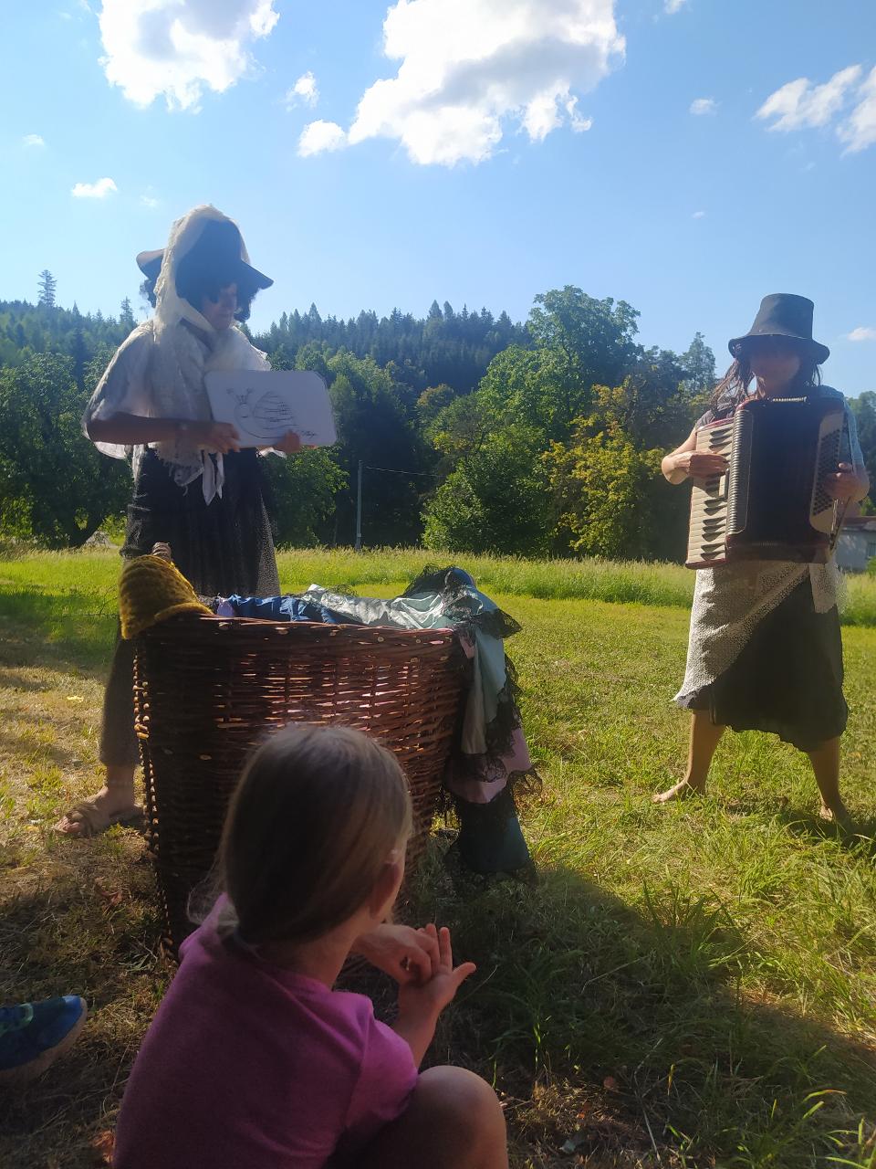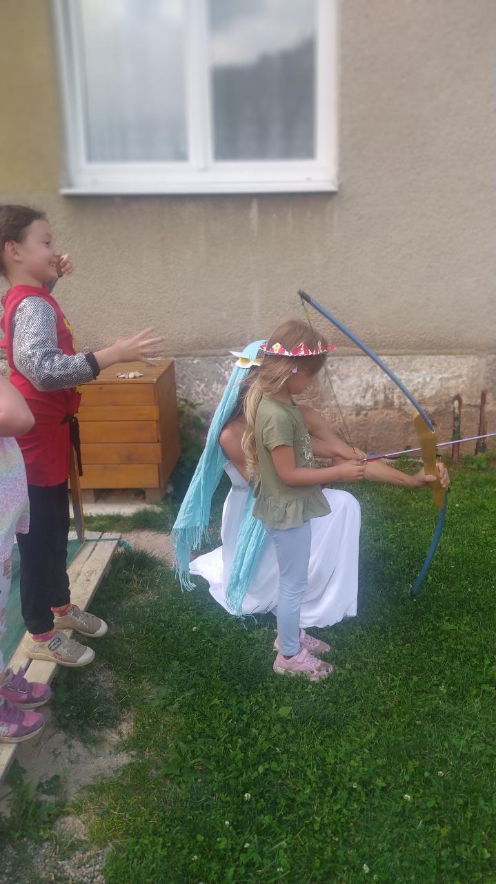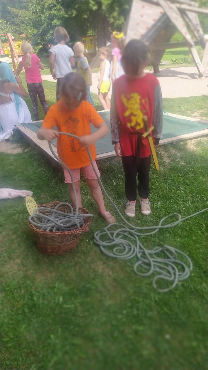 Zpívalo, hrálo a hodovalo se…pohádkami se plynulo… Dvanáct měsíčků u ohně sedělo a trochu se pomnělo, bylinková babička nápoj zdraví prozradila a mezi nás se posadila, hadrnice na harmoniku hrály a pak jsme zdobili tašky u paní Kláry, vodou ze studánky jsme Matičku lípu zalili, a když jsme se vrátili…hijééé koňské spřežení odvezlo nás přes lesy do loutkového hemžení… Kdeže pohádko kdeže jsi? V loutkovém divadle v Úpici. No a pak jsme hráli pohádku v ulici - Jak dědeček měnil až vyměnil, rytířské klání nás čekalo ani krmení draka nás nelekalo, páteční jarmark za to stál, nebyl nikdo, kdo nic nedostal. Co nás ještě potkalo? to se napsat nedá, každý z vás tam musí jít a s kamarády pohádkový tábor navštívít.