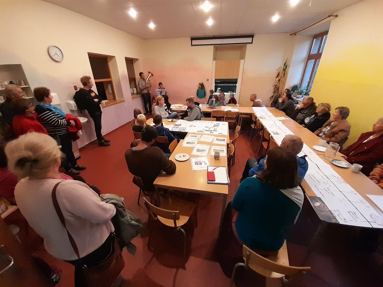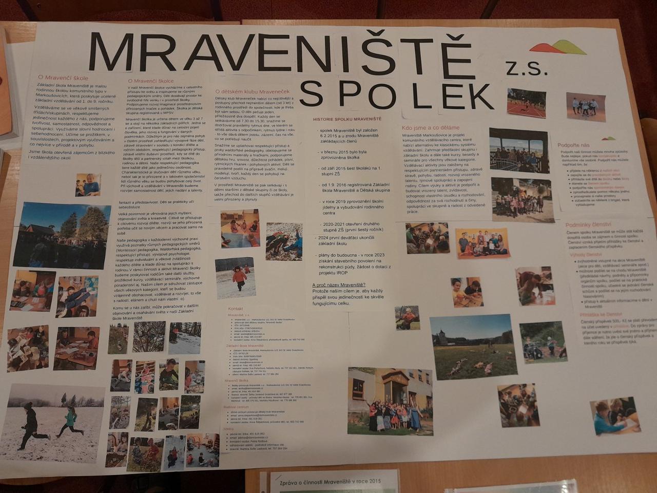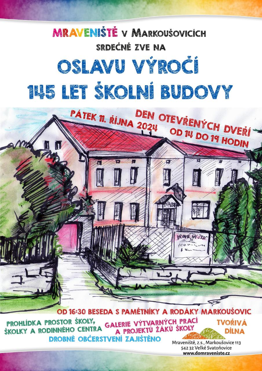 Páteční odpoledne 11. 10.2024 jsme žili Oslavou výročí 145 let budovy a dnem otevřených dveří v Mraveništi. Otevřeli jsme všechny komůrky. Bylo možné navštívit školku i rodinné centrum, a tam si pohrát nebo si vytvořit panáčka ze šišek. Ve škole na návštěvníky čekali dětští průvodci, kroniky, fotoalba a videa z minulých let, ukázky výtvarných děl, projektů i týdenních plánů. Hosty jsme pozvali i na připravené občerstvení a malé tvoření s dárečky od školáků. V jídelně jsme pak strávili společné chvíle u besedy a vzpomínání s pamětníky a rodáky Markoušovic.