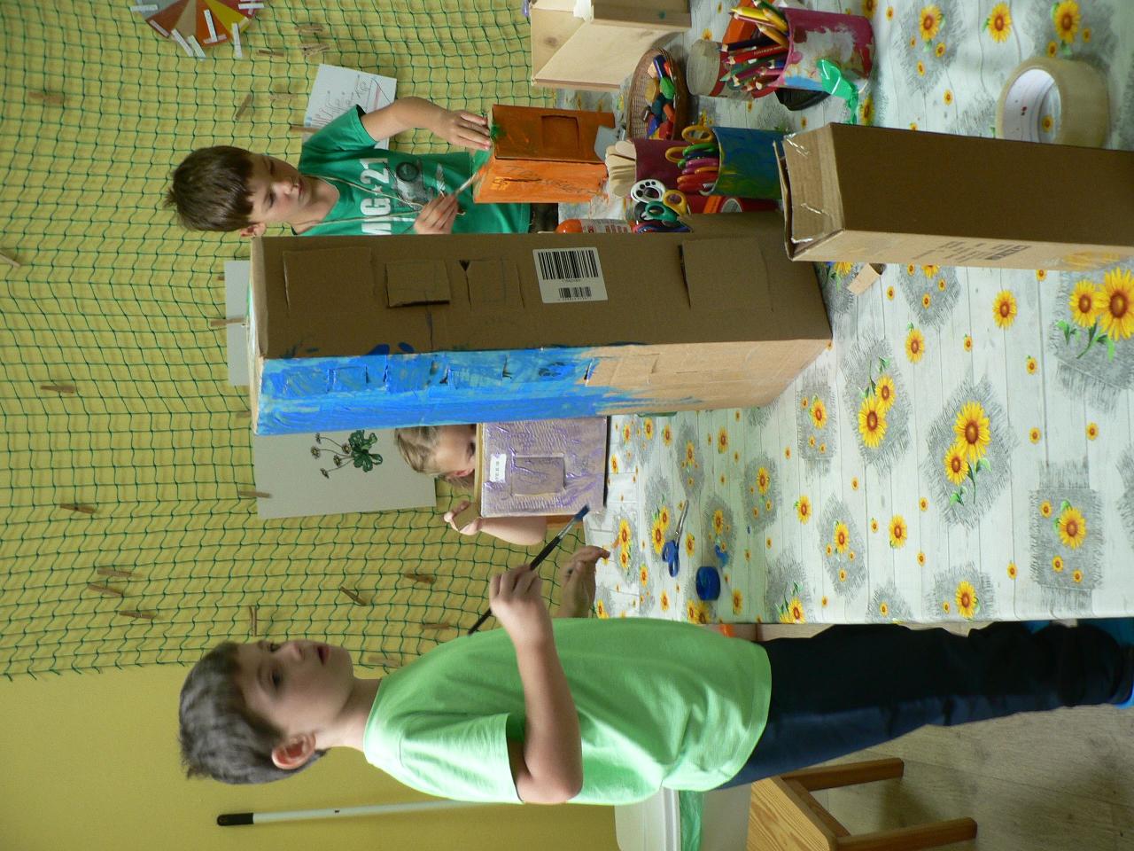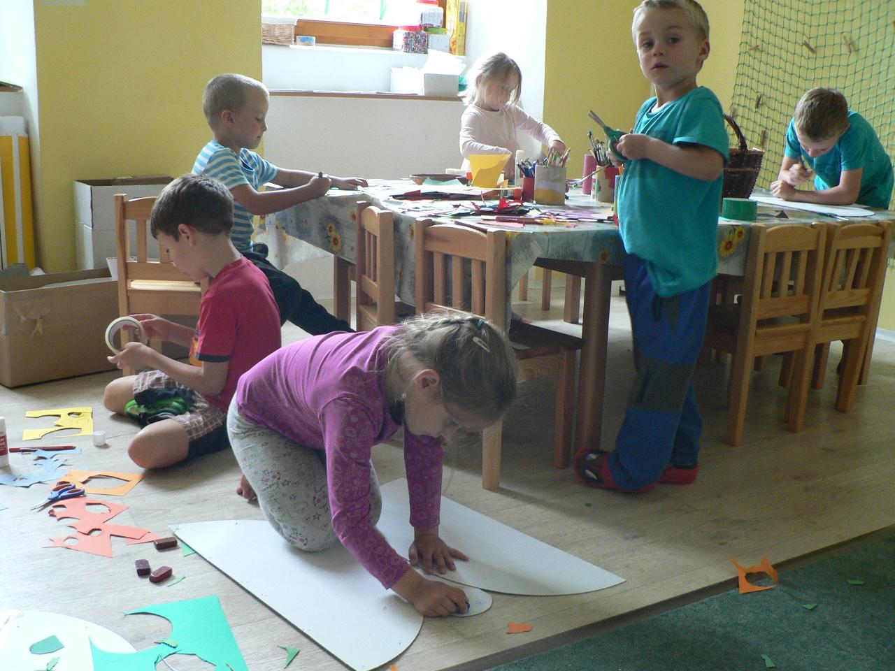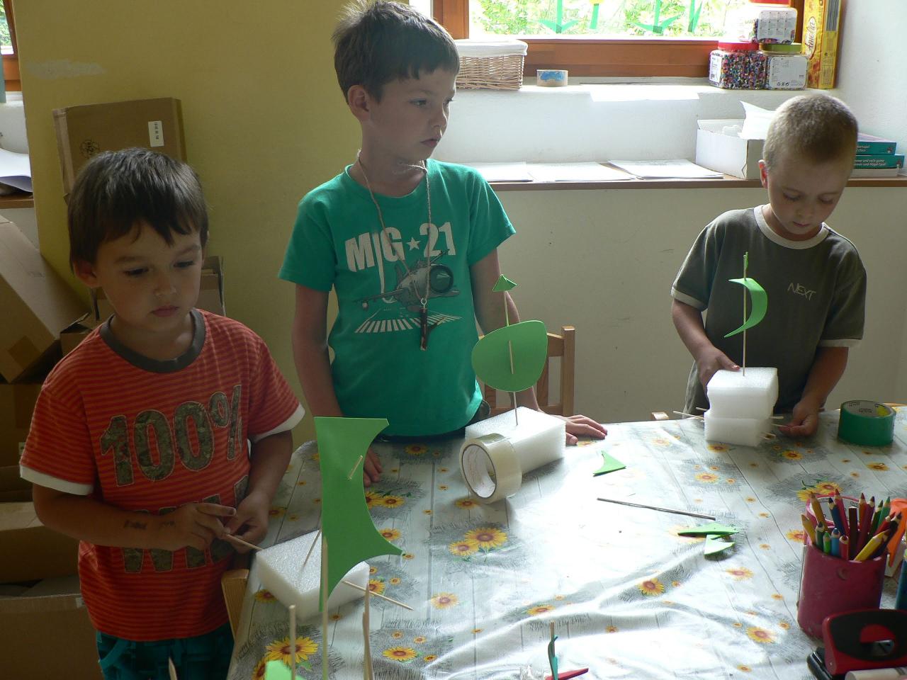 Tvořivý týden byl pro děti od 4 do 7 let. První dva dny byly hlavně seznamovací, neboť děti pocházely z různých míst v okolí Markoušovic. Každý den se něco tvořilo (deníčky, lodičky a další různé věci, které děti napadaly). Používali jsme různé materiály - papíry, kartony i dřevo. A protože to byl tábor na vesnici, chodili jsme hodně ven. Na hřišti i v lese jsme hráli spoustu her. Ani nám nevadilo, že byl pátek 13. :) Tábor se vydařil a děti si našly nové kamarády.