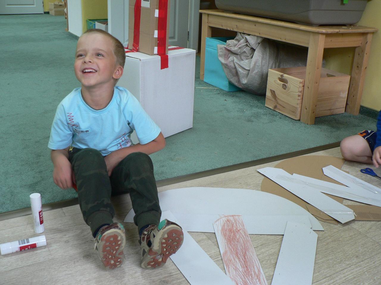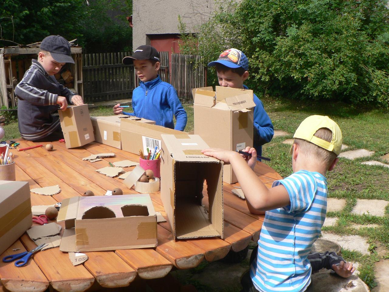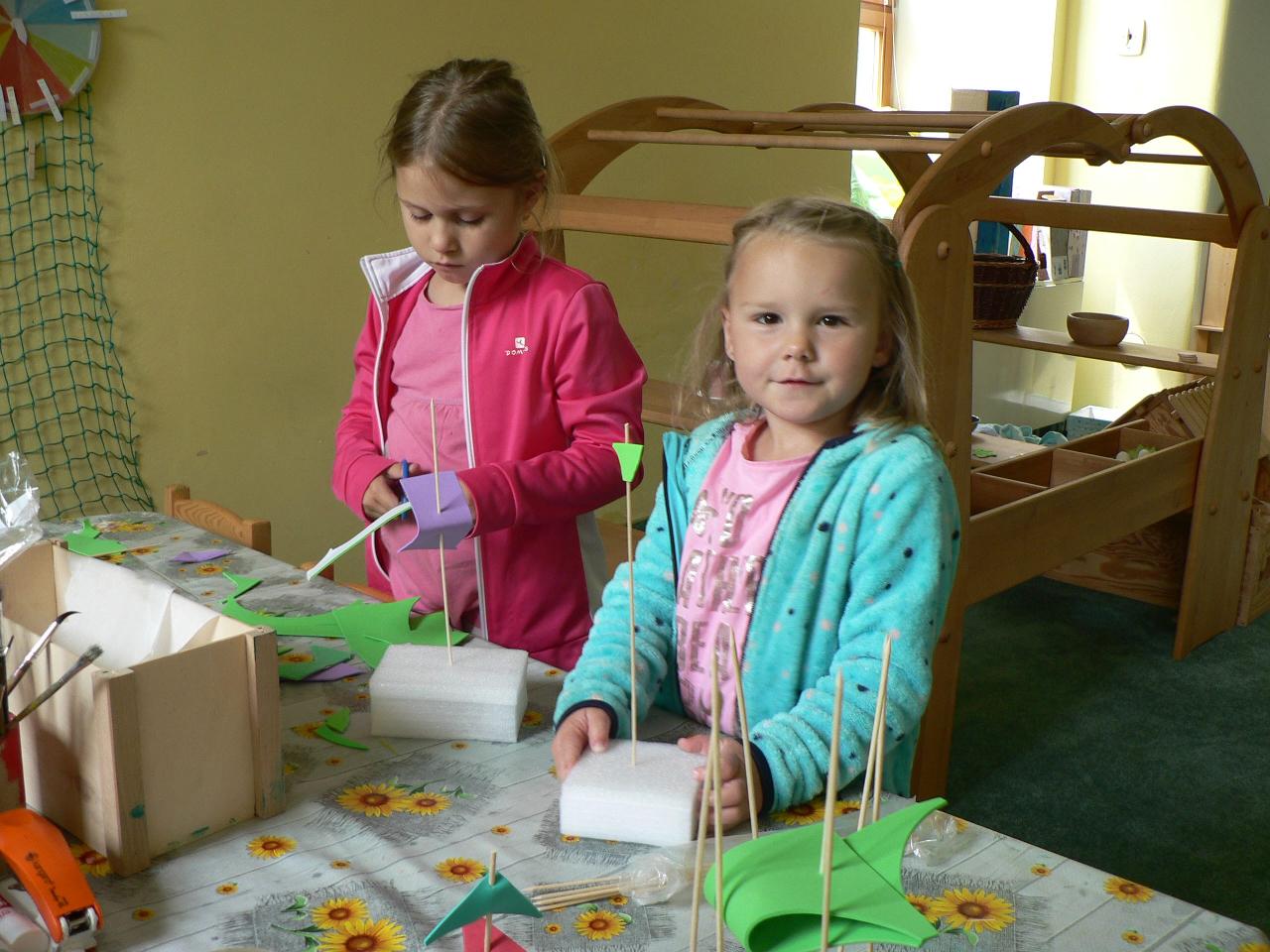 Tvořivý týden byl pro děti od 4 do 7 let. První dva dny byly hlavně seznamovací, neboť děti pocházely z různých míst v okolí Markoušovic. Každý den se něco tvořilo (deníčky, lodičky a další různé věci, které děti napadaly). Používali jsme různé materiály - papíry, kartony i dřevo. A protože to byl tábor na vesnici, chodili jsme hodně ven. Na hřišti i v lese jsme hráli spoustu her. Ani nám nevadilo, že byl pátek 13. :) Tábor se vydařil a děti si našly nové kamarády.