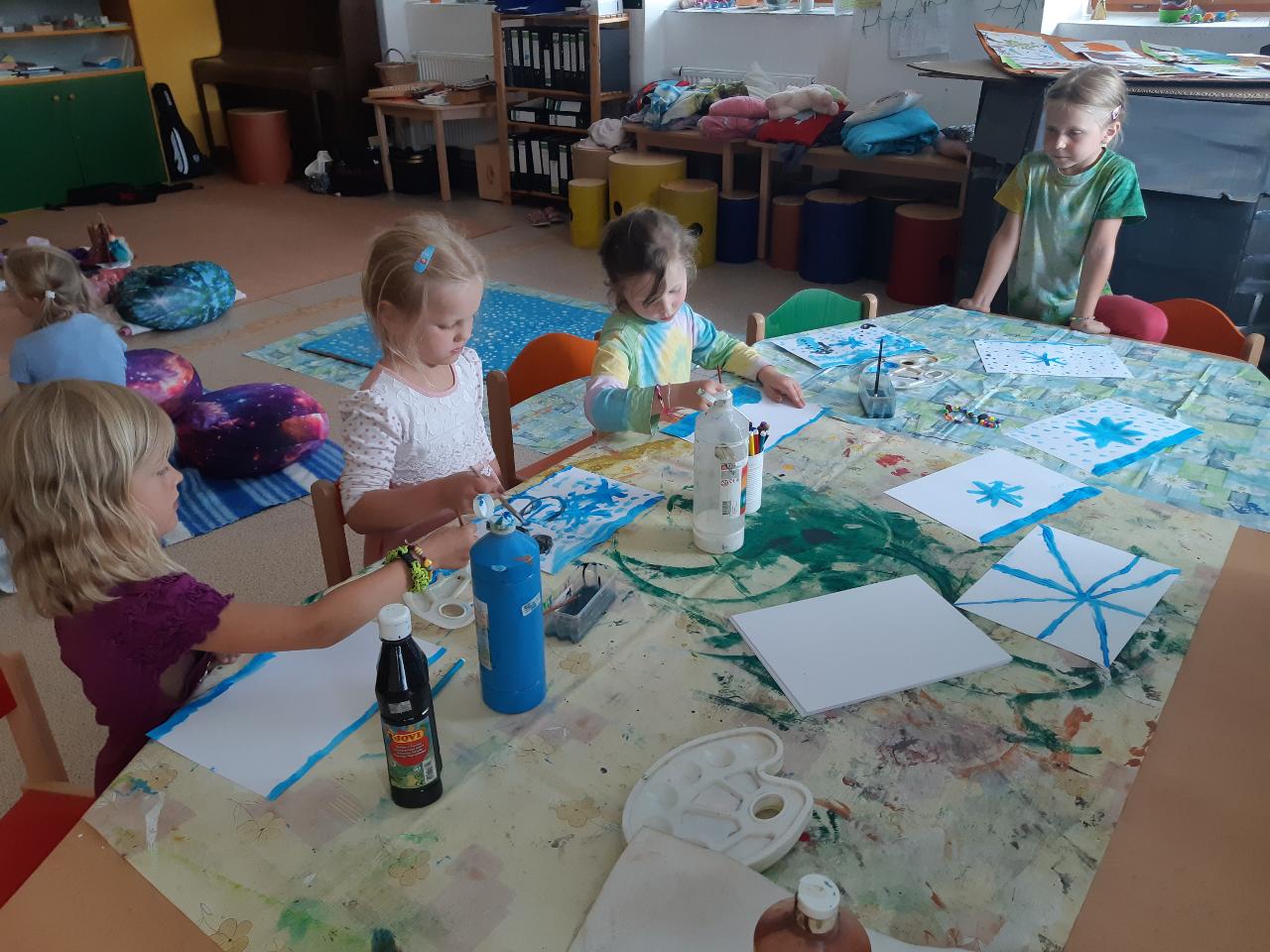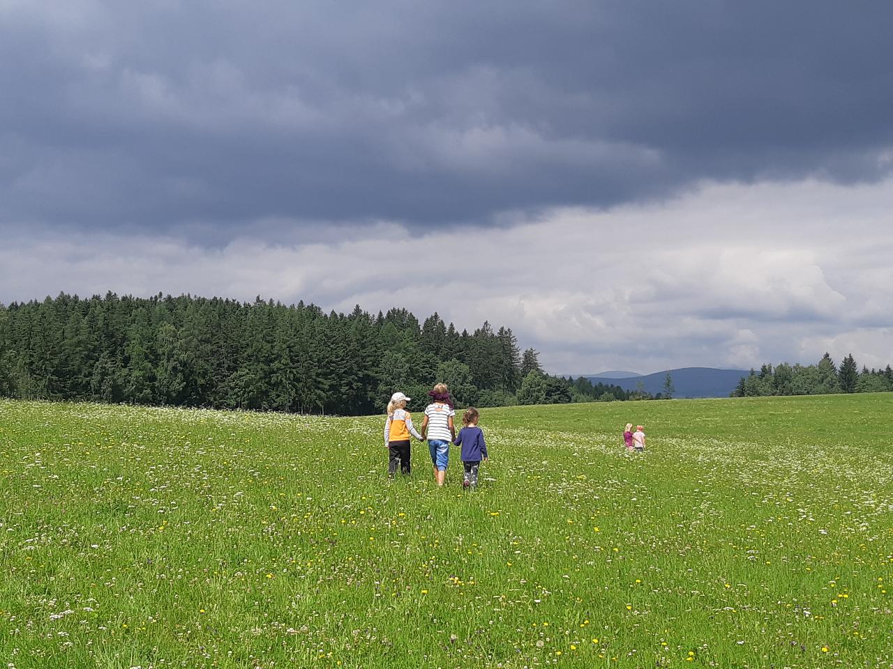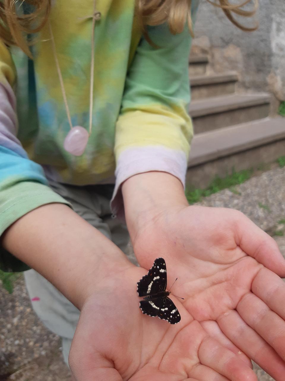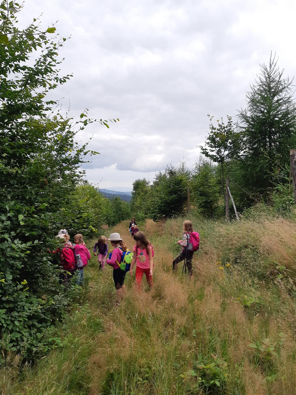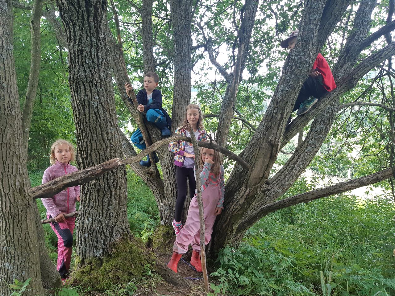 Na tomto týdnu se sešlo 11 dívek ve věku 5-10 let. Užili jsme si spoustu tvoření, malování, vyrábění, výletů i her. Tvořili jsme náramky z korálků, andílky (pardon, vlastně víly) z ovčí vlny, vyráběli jsme lapače snů, malovali roční období a jejich symboly. Svá těla jsme protáhli při jógových cvičeních a zjišťovali, zda se nám lépe a snáz cvičí samostatně nebo ve dvojici. Bubnovali jsme a tančili, zkoumali, jak to máme se strachem a důvěrou. Zkoušeli jsme vyjádřit naše pocity a emoce nejenom slovy, ale třeba právě hraním na různé hudební nástroje. Hodně času jsme také trávili venku a užívali si společných her na loukách a v lesích v okolí Mraveniště. Při společných aktivitách jsme objevovali, jak je důležitá komunikace a spolupráce a že když udělám radost někomu druhému, o to větší může být i moje vlastní. A stejně jako loni nám na výletech a vycházkách dělala společnost zkušená psí průvodkyně Fidorka, která si to s námi určitě moc užila.