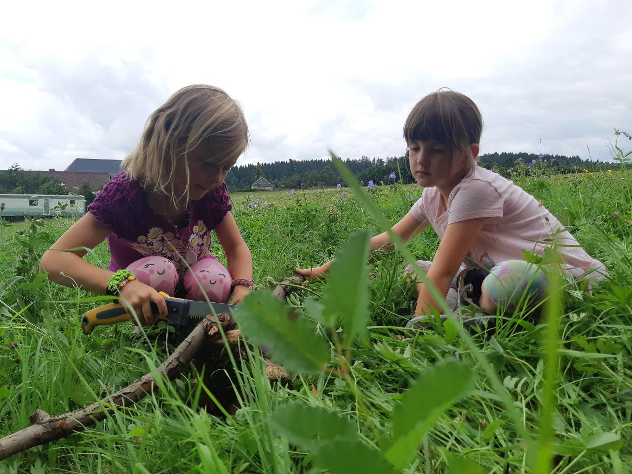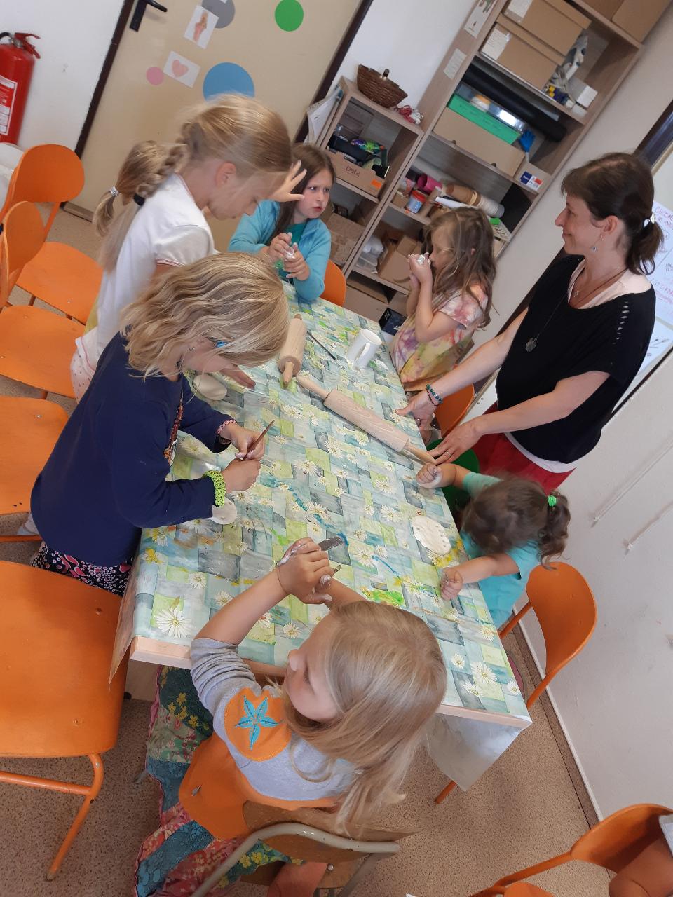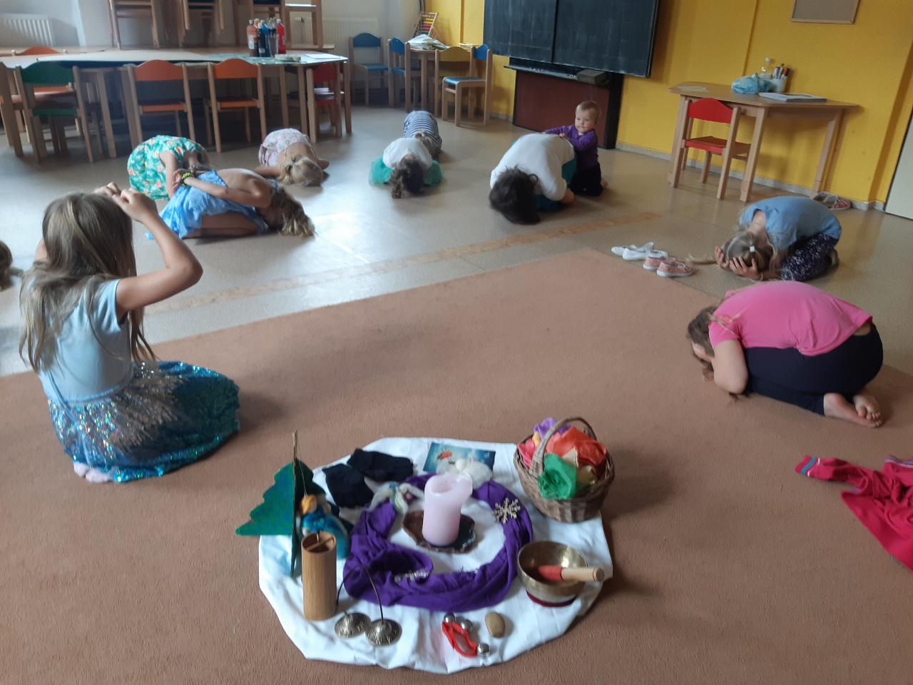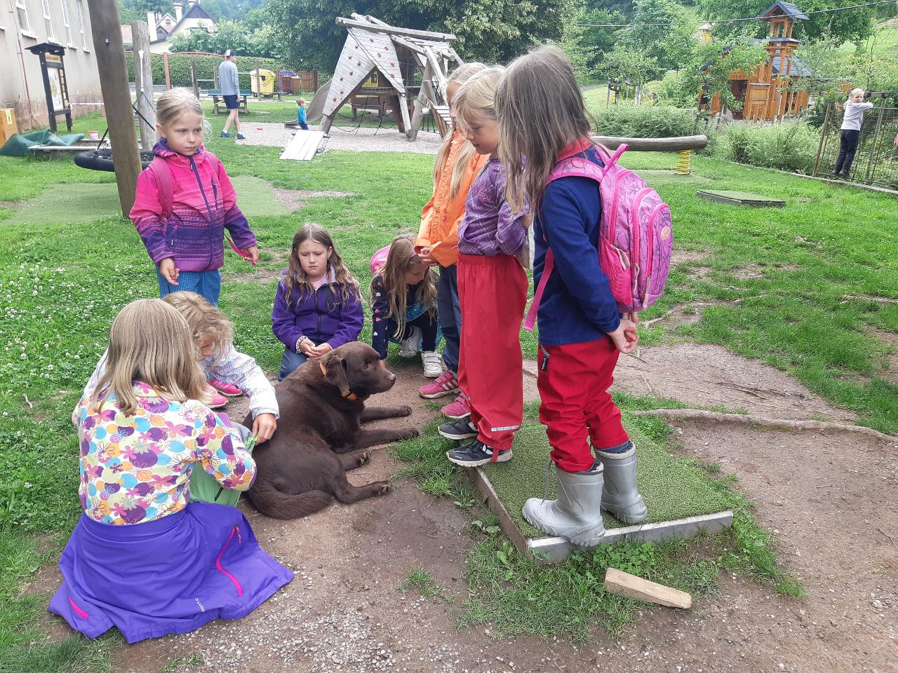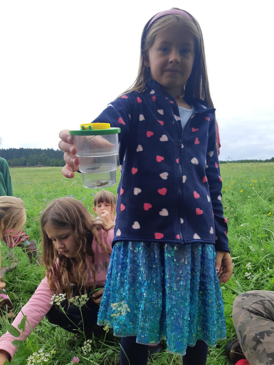 Na tomto týdnu se sešlo 11 dívek ve věku 5-10 let. Užili jsme si spoustu tvoření, malování, vyrábění, výletů i her. Tvořili jsme náramky z korálků, andílky (pardon, vlastně víly) z ovčí vlny, vyráběli jsme lapače snů, malovali roční období a jejich symboly. Svá těla jsme protáhli při jógových cvičeních a zjišťovali, zda se nám lépe a snáz cvičí samostatně nebo ve dvojici. Bubnovali jsme a tančili, zkoumali, jak to máme se strachem a důvěrou. Zkoušeli jsme vyjádřit naše pocity a emoce nejenom slovy, ale třeba právě hraním na různé hudební nástroje. Hodně času jsme také trávili venku a užívali si společných her na loukách a v lesích v okolí Mraveniště. Při společných aktivitách jsme objevovali, jak je důležitá komunikace a spolupráce a že když udělám radost někomu druhému, o to větší může být i moje vlastní. A stejně jako loni nám na výletech a vycházkách dělala společnost zkušená psí průvodkyně Fidorka, která si to s námi určitě moc užila.