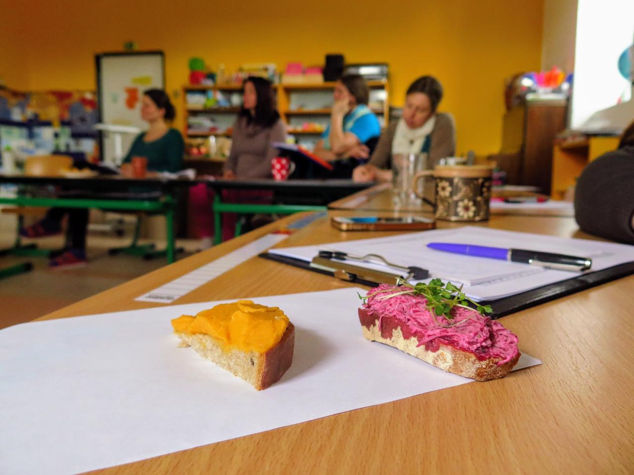 V rámci projektu Skutečně zdravá škola se uskutečnilo v Mraveništi inspirativní setkání s paní Zdeňkou Trummovou, která rodičům, pedagogům a pracovníkům školní jidelny představila různé přístupy a možnosti zdravého stravování s důrazem na pestrou stravu z lokálních zdrojů. Program byl doprovázený ochutnávkou pomazánek z červené řepy a čočky a protkaný diskuzí nad probíraným tématem. Až budeme zase s dětmi ve škole, těšíme se, že něco zajímavého podle receptů vyzkoušíme :-)