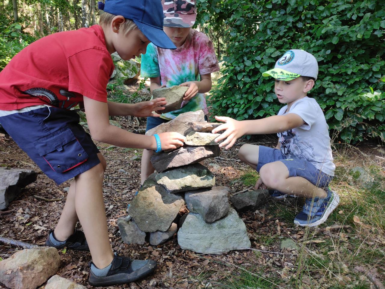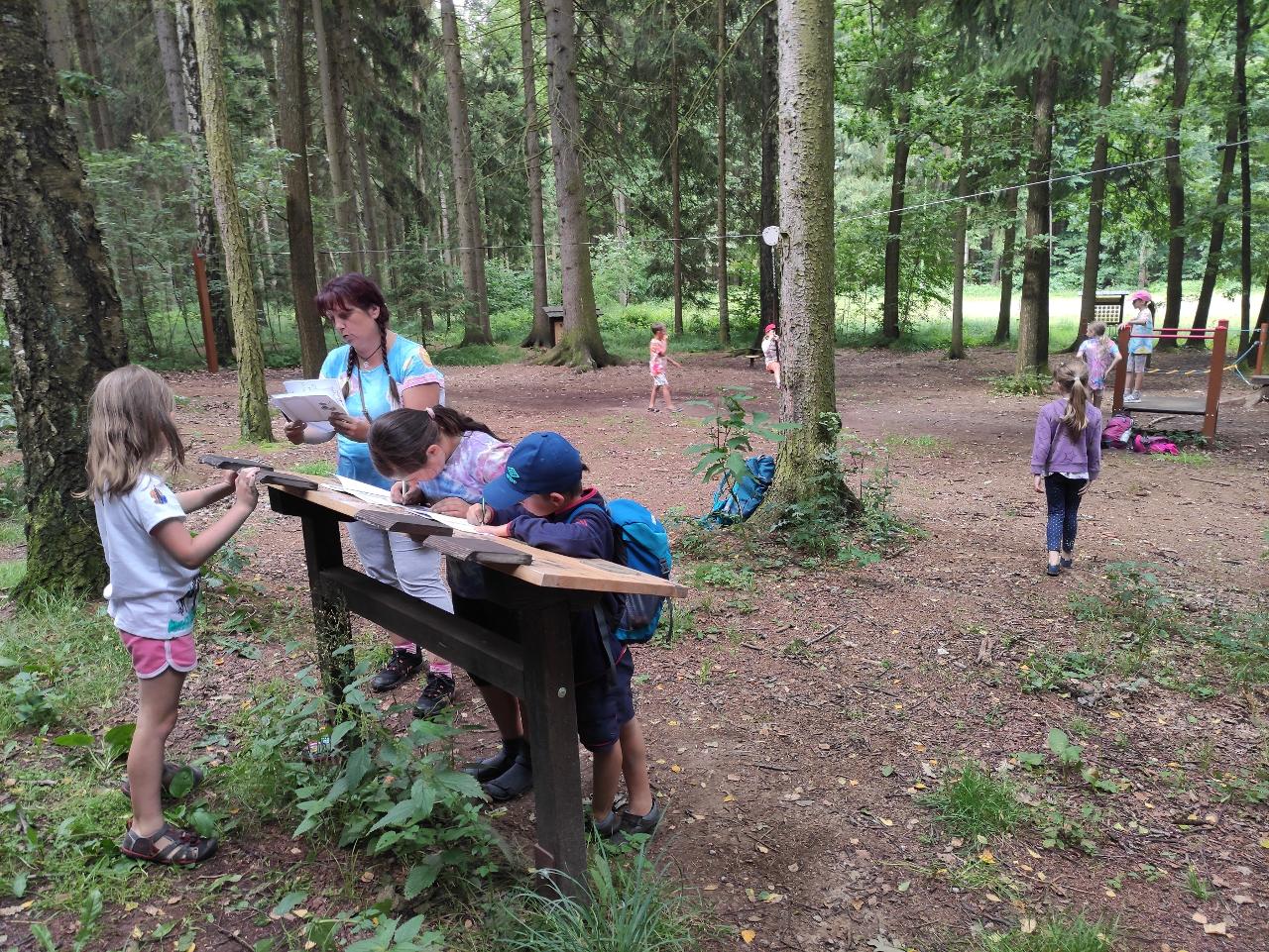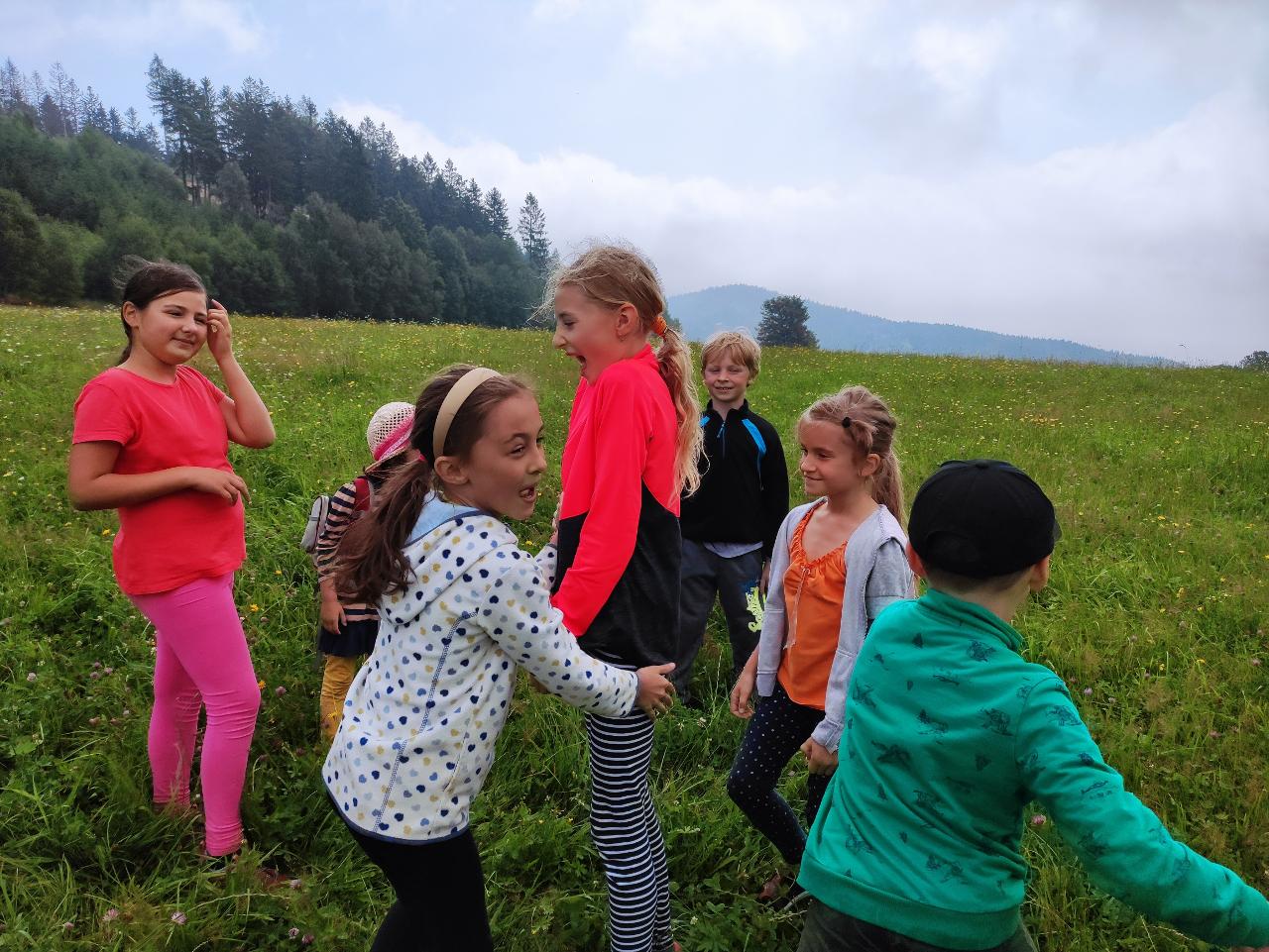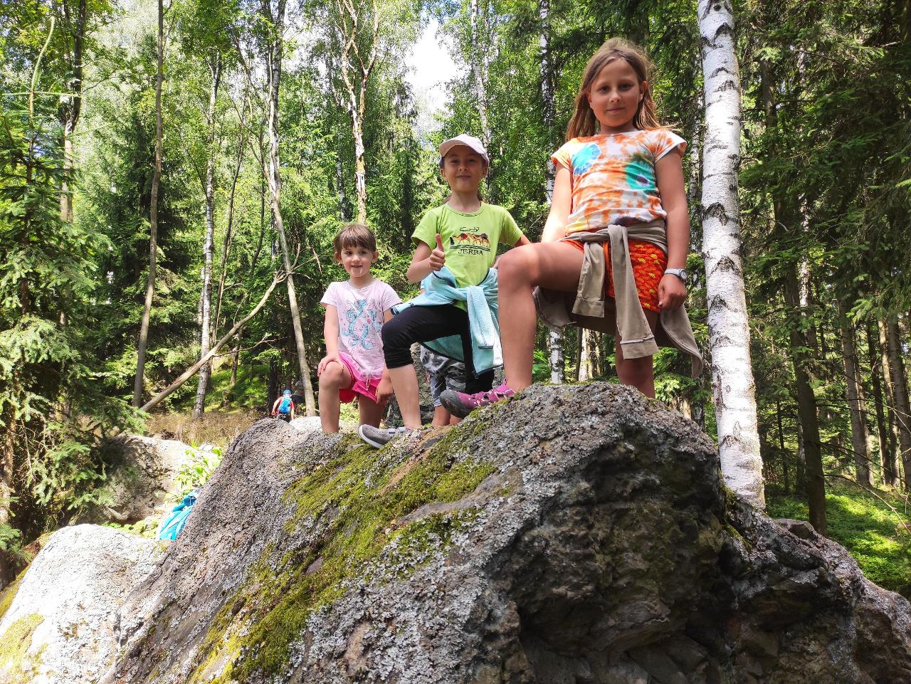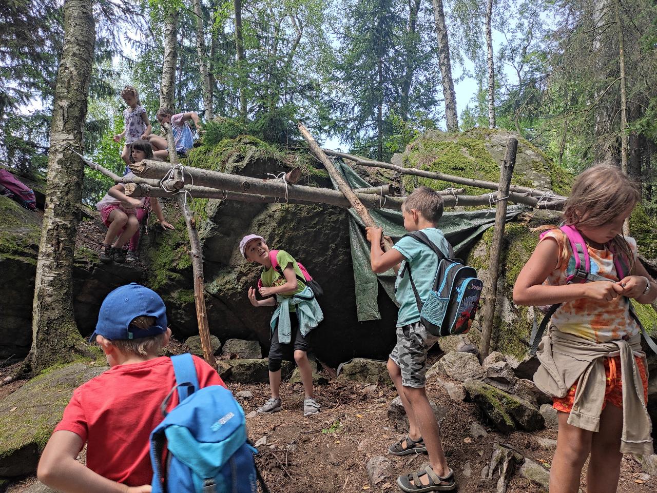 “Vzhůru za dobrodružstvím” bylo téma, které nás doprovázelo celým týdnem. Sešla se bezvadná parta menších i větších človíčků. První den jsme se vydali k bříze. Některým dětem, se zdála cesta málo dobrodružná. Tak jsme to zkusili se zavázanýma očima. Každý si dobrodružství představuje jinak, v naší partě to bylo lezení po skalách, překonávání překážek nebo strachu, či hledání pokladu. Druhý den jsme si vyrobili vlajky a vydali jsme se k hadímu kopečku, kde se strhla velká bitva o vlajku. Šišky létaly vzduchem, vymýšlely se různé strategie a životy v podobě čárek na ruce postupně mizely. Ve středu nás pohltilo barvení a malování triček. Radost z nich byla obrovská.Sluníčko nám přálo tak jsme se po obědě vrhli do nedalekého bazénu. Ve čtvrtek nás přivítal Brodský rybník. Tam se dá zažít takových dobrodružství. Proběhnout co nejrychleji opičí dráhu, která vedla většinou vzduchem, nebo namalovat obrázek, který je daleko či hry s vodou i ve vodě. Nesnadné bylo sundat a přidělat kolíček z pavoučí sítě. Odměnou byl sladký nanuk a výborný řízek s chlebem. Děkujeme Liduško. A v pátek to konečně přišlo….u Mraveniště nás čekal vzkaz, že můžeme najít poklad, který je ze všech nejcennější. (V té chvíli jsme nevěděli, že už ho vlastně máme). Bylo nutné splnit devět mnohdy těžkých úkolů. Za každý úkol jsme získali jedno písmenko k pokladu a místo, kde se nachází další úkol. Z písmenek nám pak vzešlo slovo PŘÁTELSTVÍ. Nejprve nás zaskočilo co je to za poklad, ale pak jsme na to přišli. Vždyť největším pokladem je, mít KAMARÁDY. Děkujeme vám za krásný týden naši malí kamarádi. Přátelství s vámi je opravdové a krásné. Připomenou nám to náramky přátelství, které nosíme na ruce. Já ho stále mám a jsem ráda, protože mi vás připomíná. Miri a Market