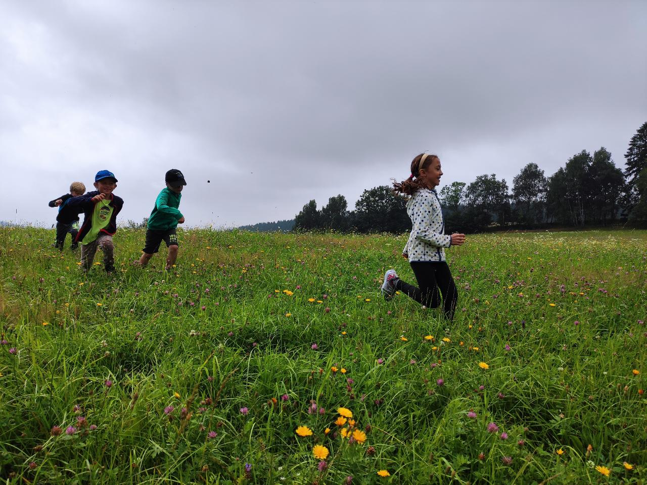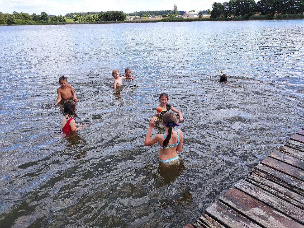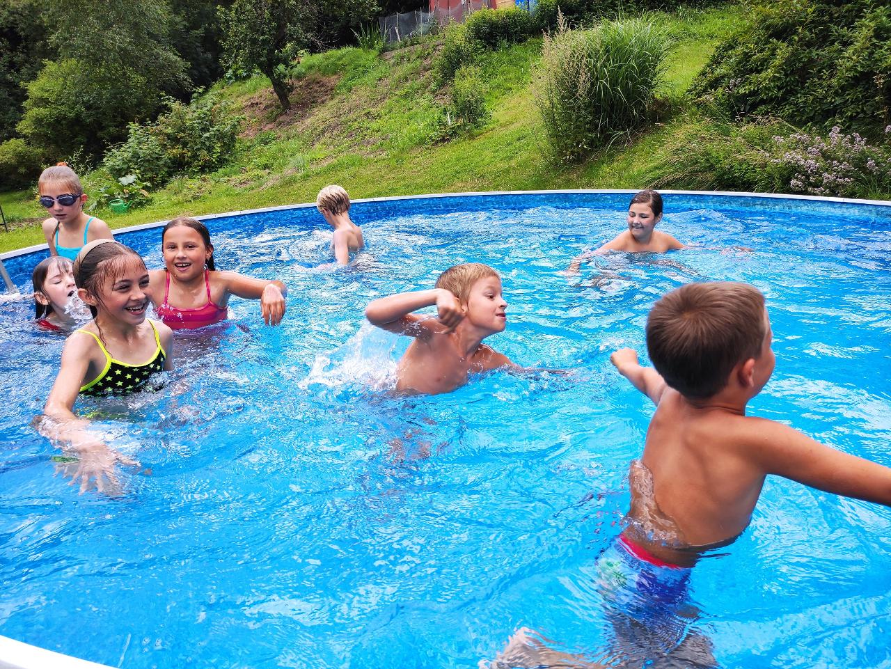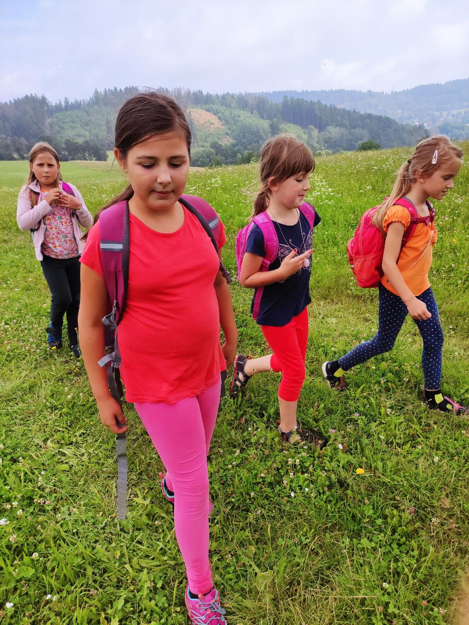 “Vzhůru za dobrodružstvím” bylo téma, které nás doprovázelo celým týdnem. Sešla se bezvadná parta menších i větších človíčků. První den jsme se vydali k bříze. Některým dětem, se zdála cesta málo dobrodružná. Tak jsme to zkusili se zavázanýma očima. Každý si dobrodružství představuje jinak, v naší partě to bylo lezení po skalách, překonávání překážek nebo strachu, či hledání pokladu. Druhý den jsme si vyrobili vlajky a vydali jsme se k hadímu kopečku, kde se strhla velká bitva o vlajku. Šišky létaly vzduchem, vymýšlely se různé strategie a životy v podobě čárek na ruce postupně mizely. Ve středu nás pohltilo barvení a malování triček. Radost z nich byla obrovská.Sluníčko nám přálo tak jsme se po obědě vrhli do nedalekého bazénu. Ve čtvrtek nás přivítal Brodský rybník. Tam se dá zažít takových dobrodružství. Proběhnout co nejrychleji opičí dráhu, která vedla většinou vzduchem, nebo namalovat obrázek, který je daleko či hry s vodou i ve vodě. Nesnadné bylo sundat a přidělat kolíček z pavoučí sítě. Odměnou byl sladký nanuk a výborný řízek s chlebem. Děkujeme Liduško. A v pátek to konečně přišlo….u Mraveniště nás čekal vzkaz, že můžeme najít poklad, který je ze všech nejcennější. (V té chvíli jsme nevěděli, že už ho vlastně máme). Bylo nutné splnit devět mnohdy těžkých úkolů. Za každý úkol jsme získali jedno písmenko k pokladu a místo, kde se nachází další úkol. Z písmenek nám pak vzešlo slovo PŘÁTELSTVÍ. Nejprve nás zaskočilo co je to za poklad, ale pak jsme na to přišli. Vždyť největším pokladem je, mít KAMARÁDY. Děkujeme vám za krásný týden naši malí kamarádi. Přátelství s vámi je opravdové a krásné. Připomenou nám to náramky přátelství, které nosíme na ruce. Já ho stále mám a jsem ráda, protože mi vás připomíná. Miri a Market