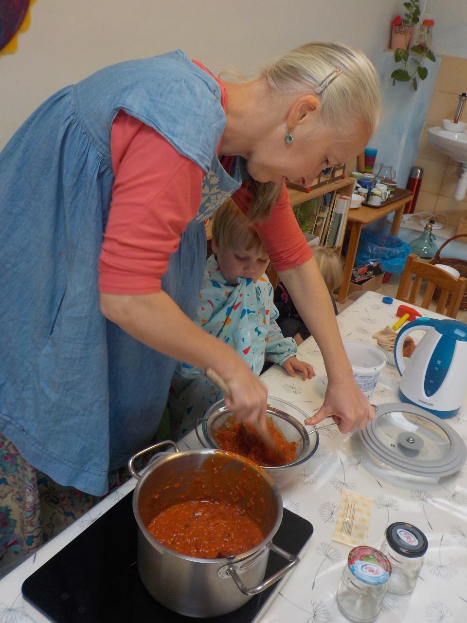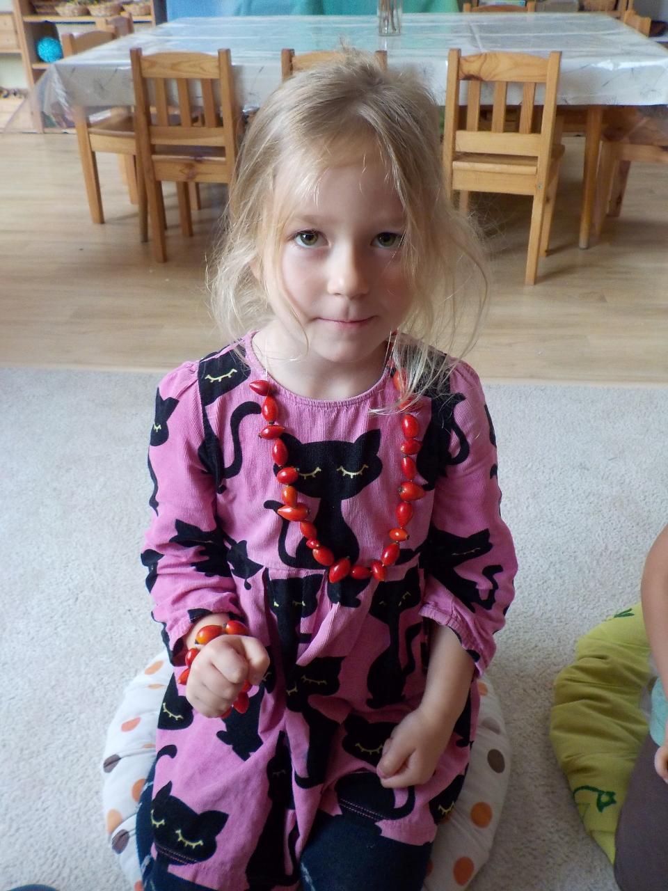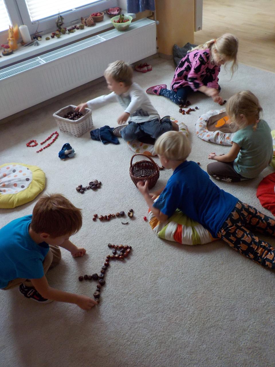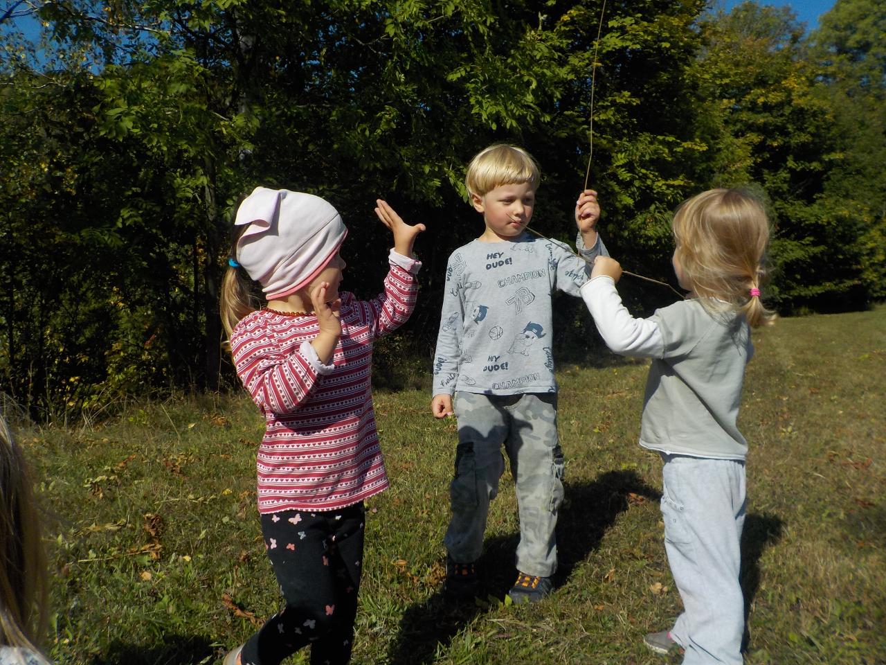 Přestože léto je to tam, všude okolo nás se to červená a kulatí - šípky (z nich pak mohou vznikat takové dobroty jako je šípková marmeláda a čaj, a pro krásu a ozdobu i šípkové korále a náramky), jeřabinky (ty jsme letos vůbec nikde nenašli, alespoň pohádku jsme si o nich pověděli), kaštánky (první z nich už začínají padat na zem, krásně se vyloupnou z pichlavého obalu a uvnitř jsou tak hlaďounké - vyrobili jsme si z nich ježečky a trochu si s nimi pohráli), makovice (o nich známe pěknou písničku a taneček, vyzkoušeli jsme, jaká malá a dobrá zrnka uvnitř skrývají. Užíváme si poslední teplé dny, kdy se můžeme rozběhnout po louce jen tak v triku.