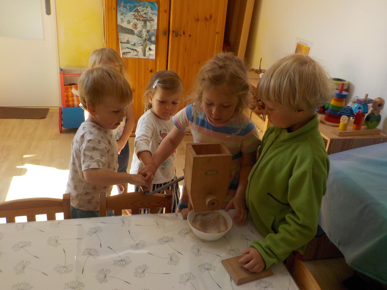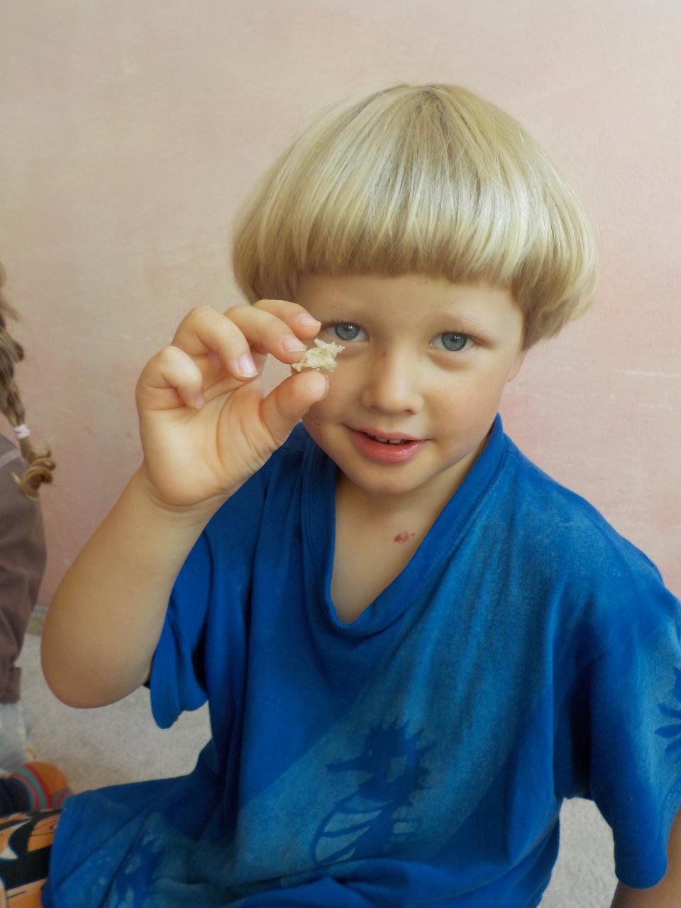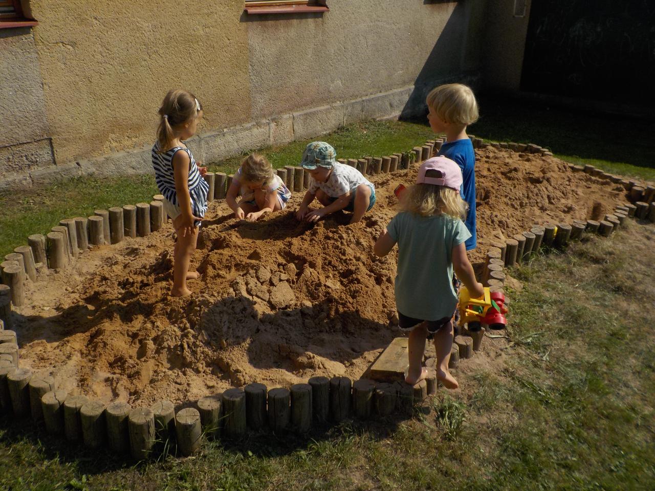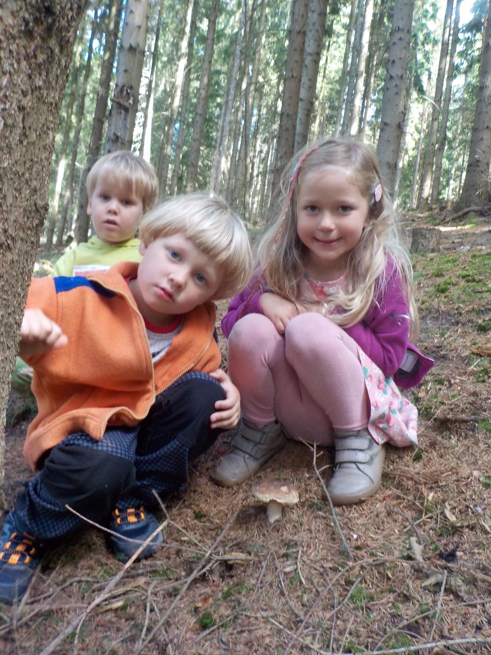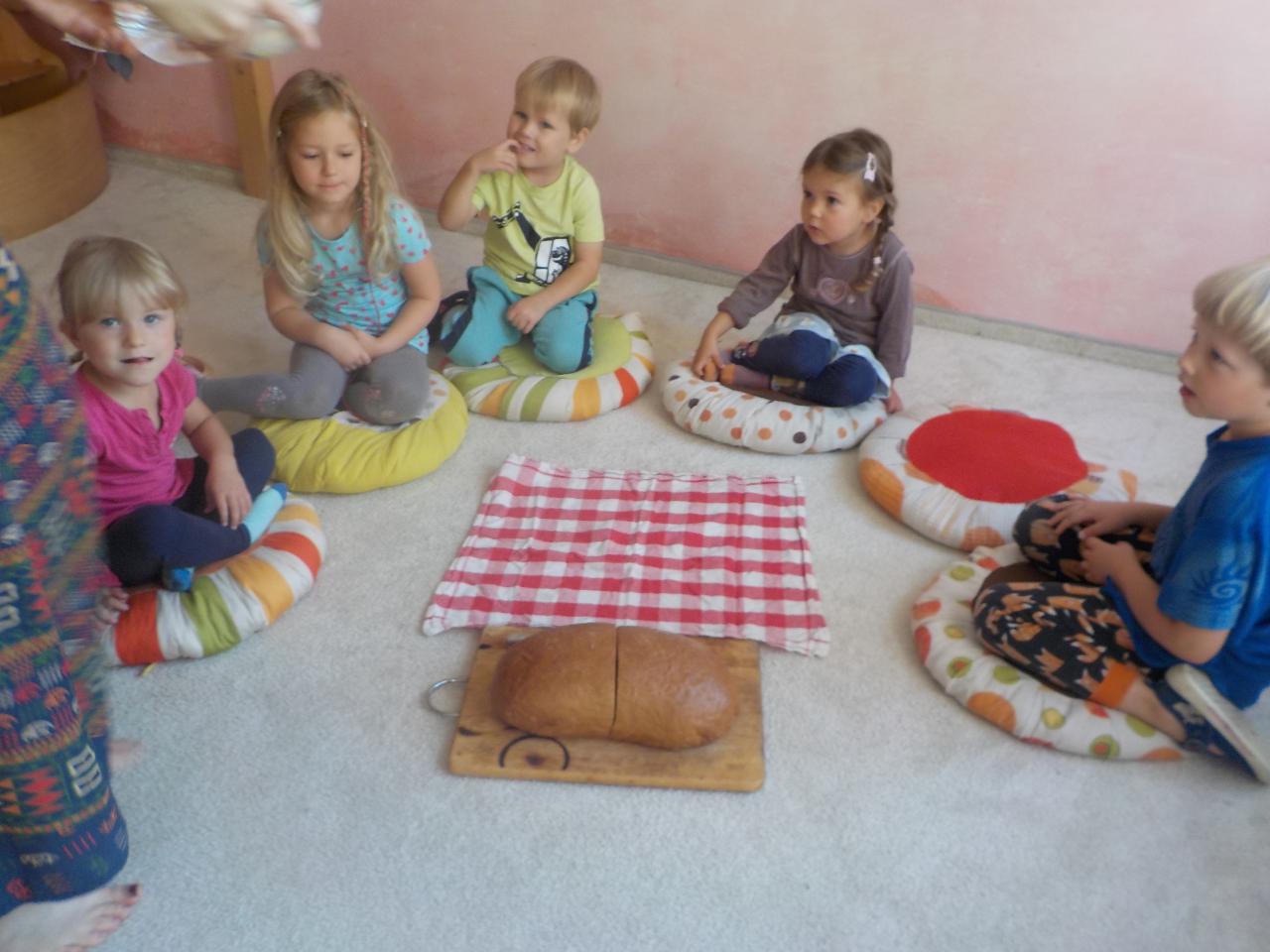 Víte-li pak, jak sedláček pracuje, aby se ze zrníčka stal chlebíček? My už to víme. Vše jsme si na vlastní kůži a jazyk vyzkoušeli. Péťa nám k tomu přišla zahrát chlebíčkové divadýlko - jak jinak pak chutná boží dar - chléb! Kuba v pohádce s ním pohradal, ale nakonec zjistil to samé, že je to moc velká dobrota. Poprvé jsme vyzkoušeli novou modelínu a vznikala zrníčka v mističkce, kuřátka, letadla, duhy. Malovali jsme, zpívali a tančili, stříhali, stavěli stavby pro auta obrázky s magnetky. Užívali si plné pískoviště - jako na pláži, procházeli se lesem a nacházeli houby. Byl to krásný slunečný týden!