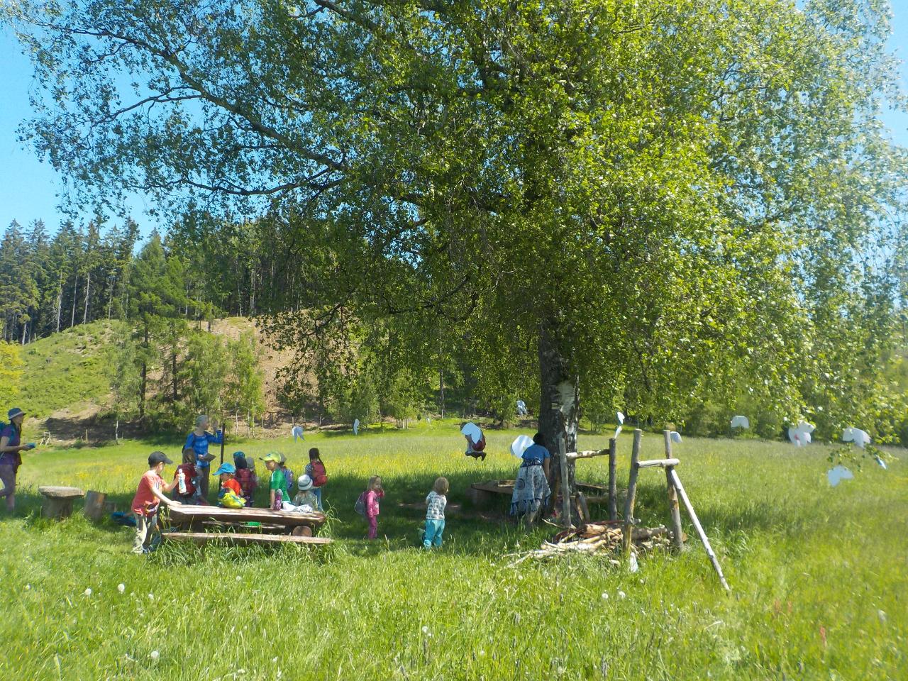 Znovu nastal ten krásný barevný, už téměř letní čas. S dětmi vyrážíme do luk a lesů, kocháme se tou krásnou, většinou neodoláme a natrháme si den co den lespoň pár krásných barevných květinek. Lákají nejen hmyz, ale i nás. Zkoušíme je pojemnovat a jejich barevnost využíváme k pokochání těla i duše. Na hlavě věnečky, na rukách náramky, na stole miska s plovoucími květy, ve váze květiny. Vítě, že s květinami se dá i malovat? Součástí tohoto týdne byl i tajný výlet k oslavě Dne dětí. Vedla nás mapa a nápověda od "motýlí maminky", plnily jsme úkoly a pomáhali motýlí mamince vychovat nové motýly. Jako překvapení nás přivítal "motýlí strom", u kterého jsme si opěkli na ohni oběd a pohoupali se na houpačce.
