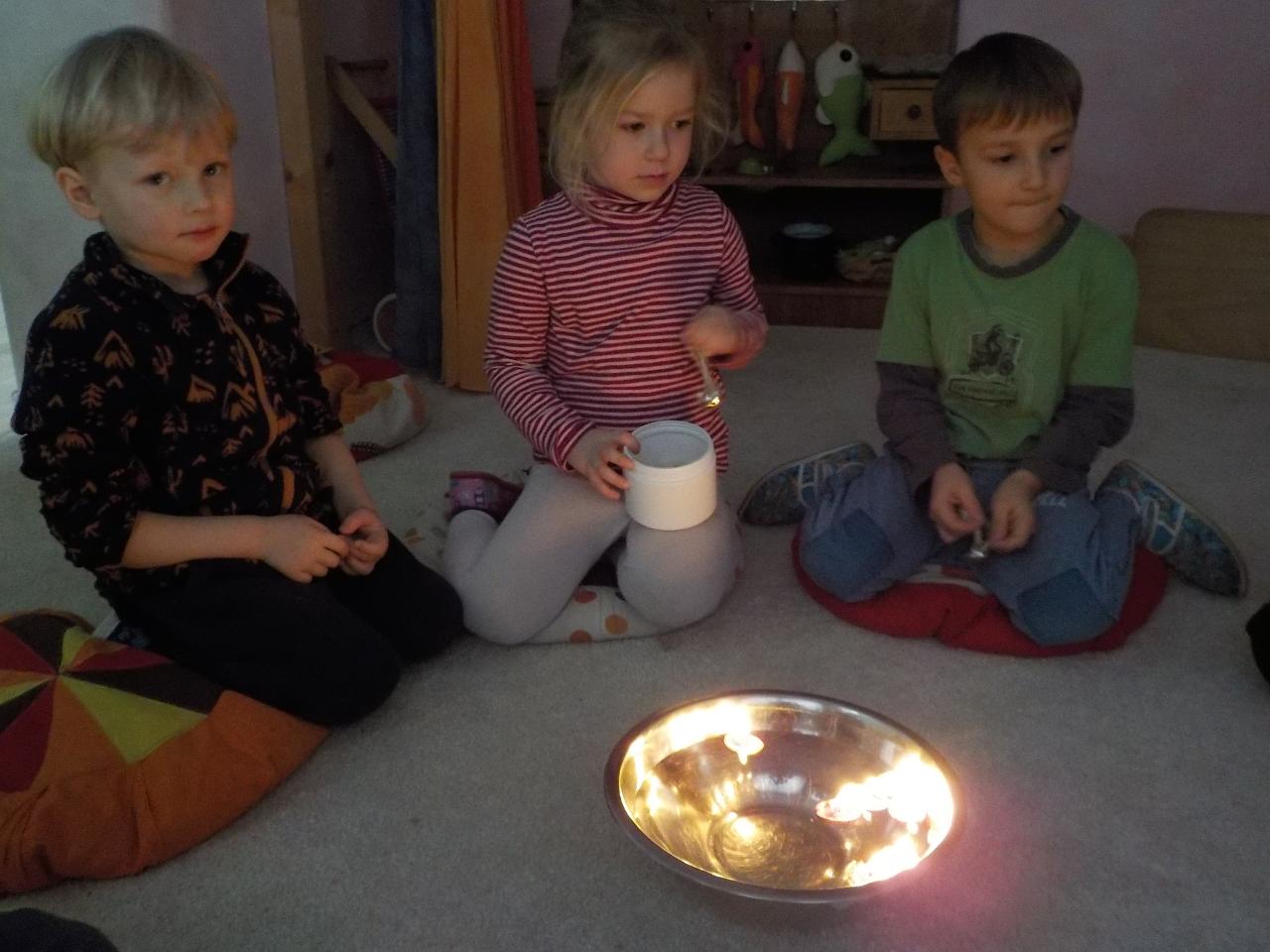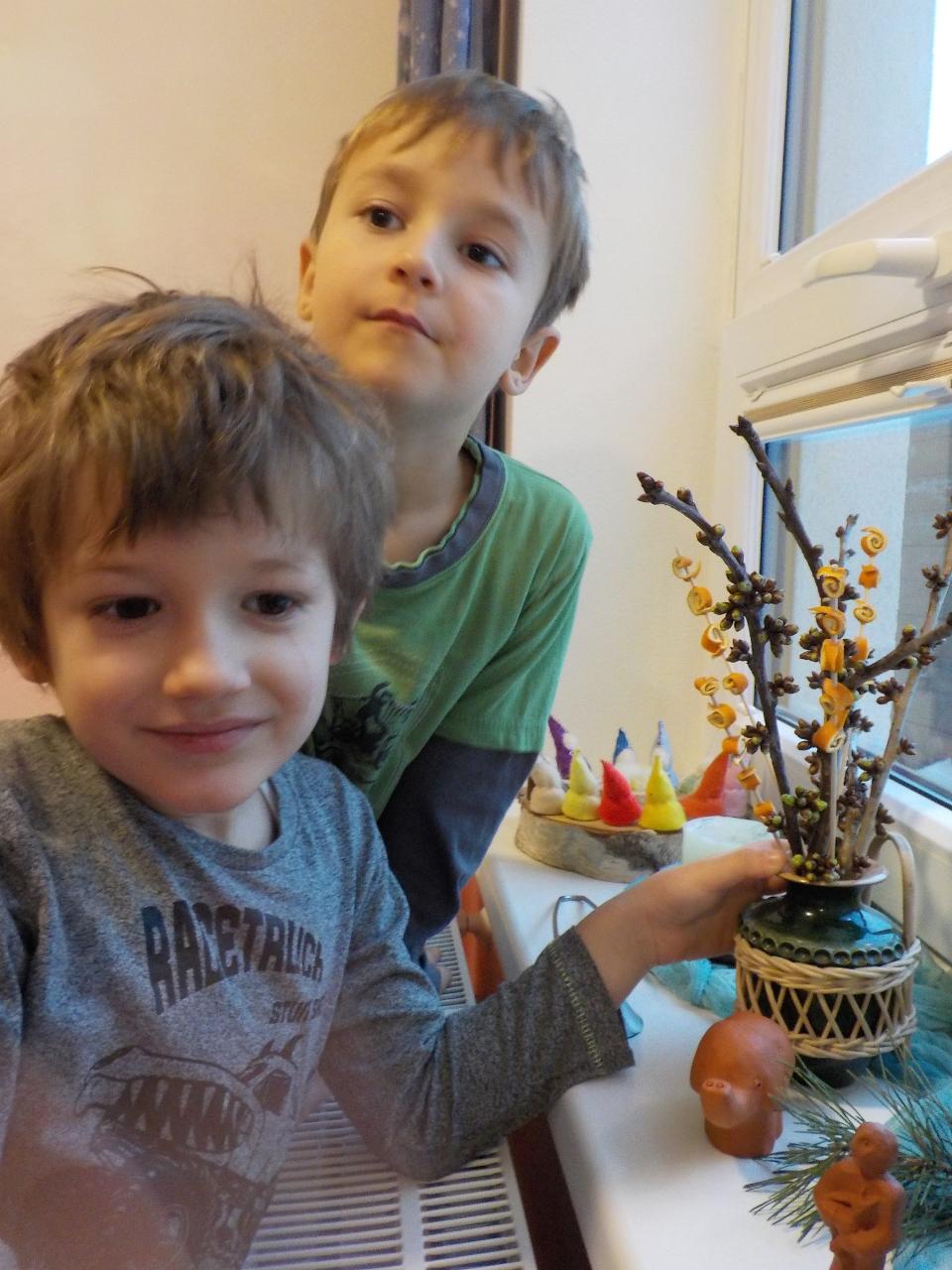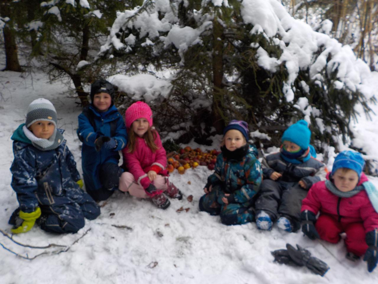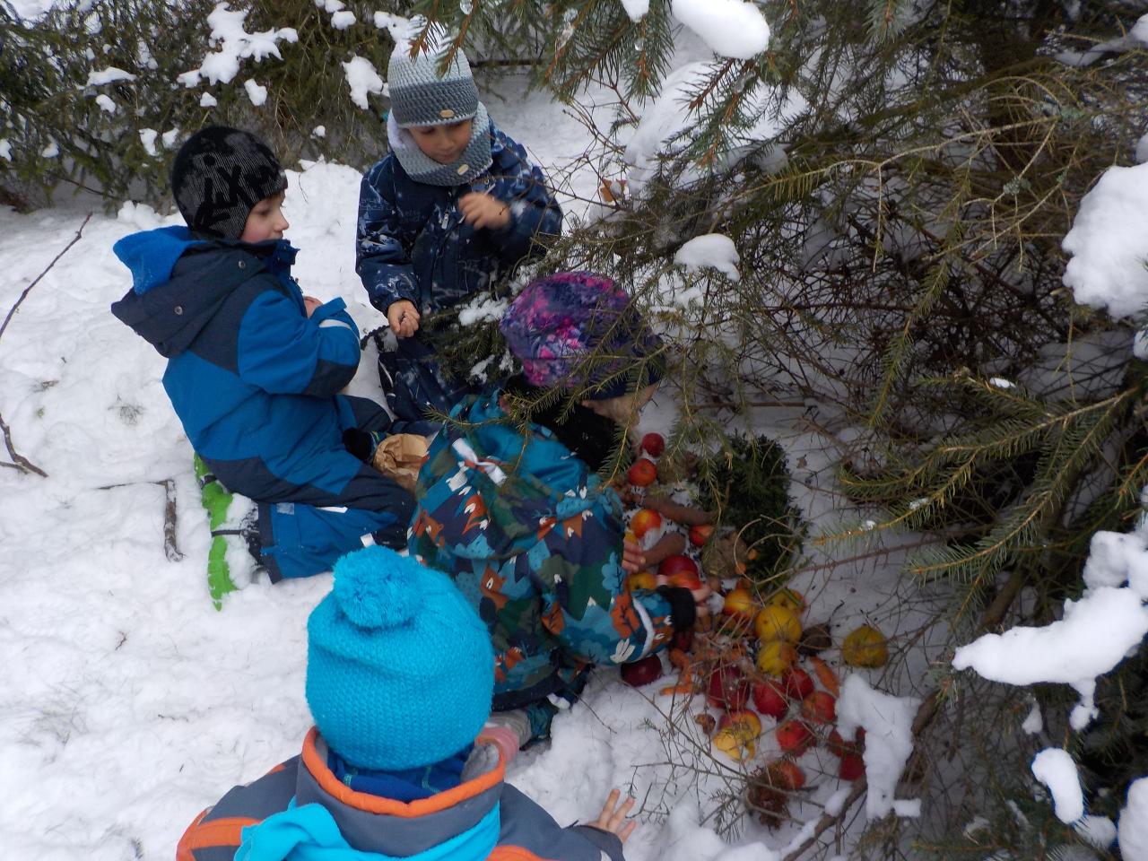Advent se chýlí ke konci a s ním vrcholí příprava a očekávání doby vánočních svátků. Do betléma jsme s dětmi každý den přidávali postupně postavičky a teď už jen svatá rodina. Její příběh jsme si každý den vyprávěli a zpívali koledy, hráli na hudební nástroje. Vyzkoušeli jsem si pár starých zvyků - jako je krání jablíčka, či pouštění lodiček. Zvířátkům do lesa jsme donesli velkou nadílku a i jim zazpívali. Ve školce jsme si domalovali naše vánoční stromky a upekli vánočku. V kostellíčku nám školáci krásně zazpívali a zahráli příběh o narození Ježíška. S malým divadýlkem přišla opět i naše Péťa. A aby toho všeho nebylo málo, ještě jsme stihli oslavit jedny krásné narozeniny.