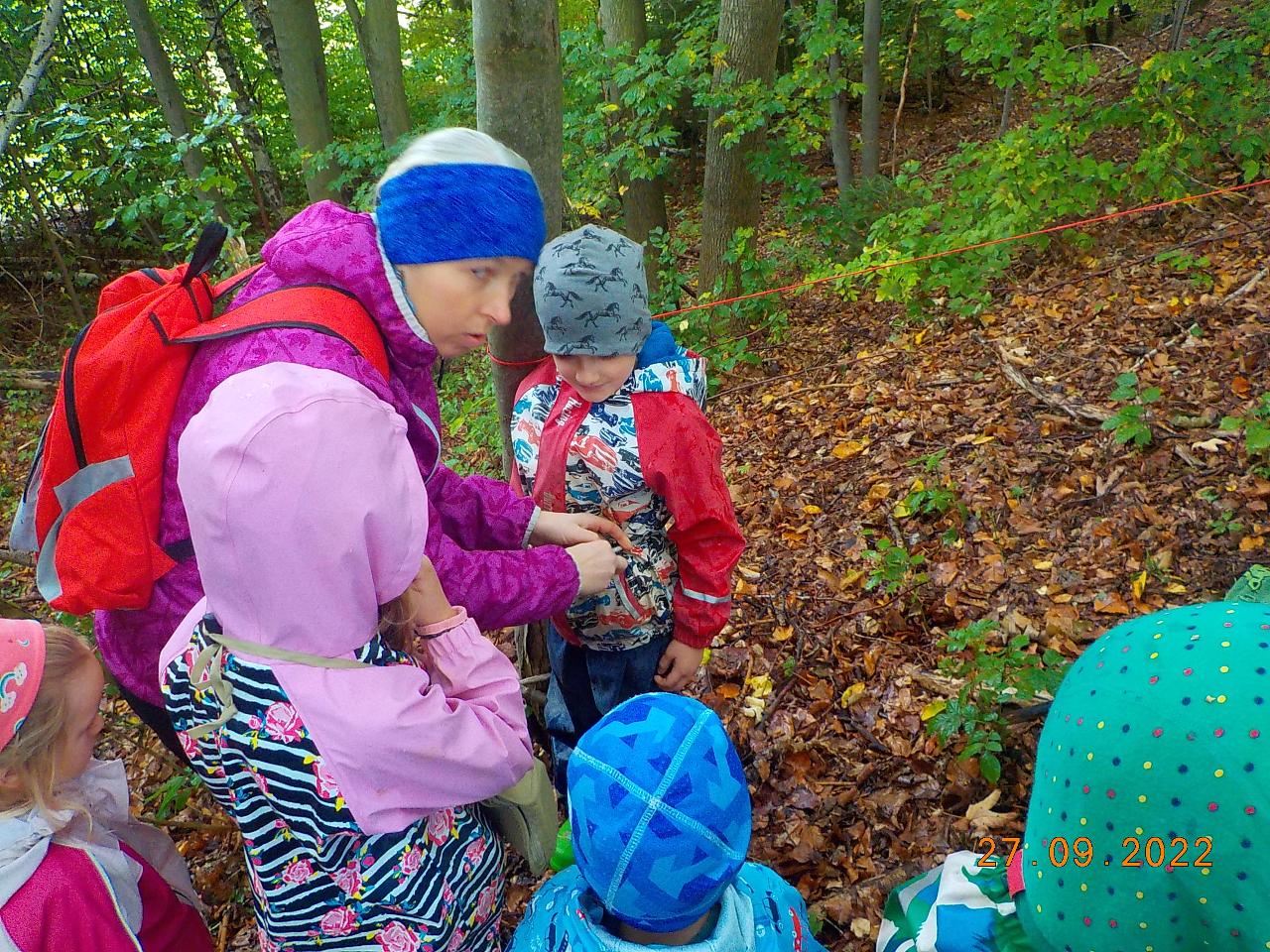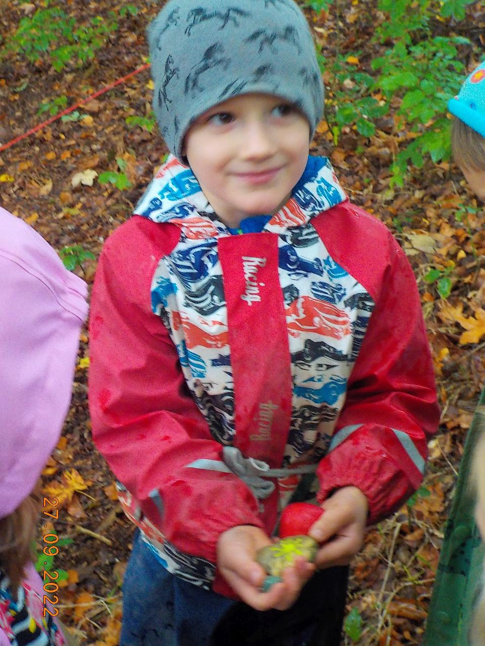 Přestože byl tento týden o jeden den kratší v našem mravenečkové pobývání, nálada svatého Michaela se plynule prolínala všemi dny. Zkoušeli jsme svoji odvahu, svou víru v sebe a v pomoc těch, kteří mohou. Pro někoho bylo zpočátku jen těžké projít branou z rukou se strachem, že bude chycen. Představili jsem si, že jsme silní a odvážní. Také jsme si představili, jak se asi cítí ten, kdo nás vidí v naší síle. Lehli jsem si jak ten drak, který jindy nepřemožitelný, dnes poklekl a klesl. A všechny tyto zkušenosti se nám velmi hodili při naší opravdické cestě za drakem. Okousané kosti měly být výstrahou, ale my toho nedbali, šli jsme dál. A každý, kdo přemohl svůj strach si z dutiny obřího stromu hrdě odnášel dračí šupinu, kterou si může zavěsit hrdě na krk a nosit jí, aby mu připomínala jeho sílu. A s tímto zážitkem jsem se po zbytek týdne mohli také v poklidu vyrovnávat, vstřebávat a tvořivě zpracovávat.