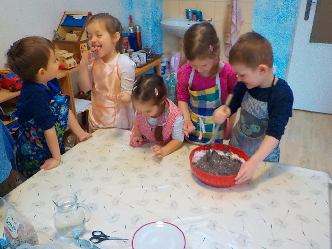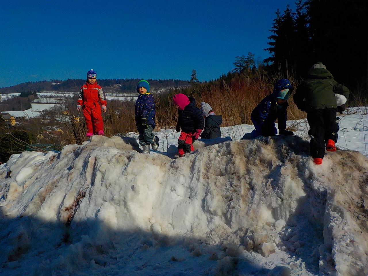 Tento týden jsme se od ptáčků a krmítka dostali i k ostatním zvířatům. Co dělají v zimě, spí? Bdí? Musí si hledat potravu? Můžeme jim pomoci? Jsou v bezpečí domova u lidí? Jak se které zvířátko jmenuje, jeho členové rodiny, podle jakého zvuku ho poznáme, kde žije? A mnoho dalších otázek proběhlo v našem kruhu. Venku jsme pozorovali místa, kam zvířátka chodí, sledovali stopy na posledním sněhu. Hráli jsme si na medvědy, kočky, vrabce...